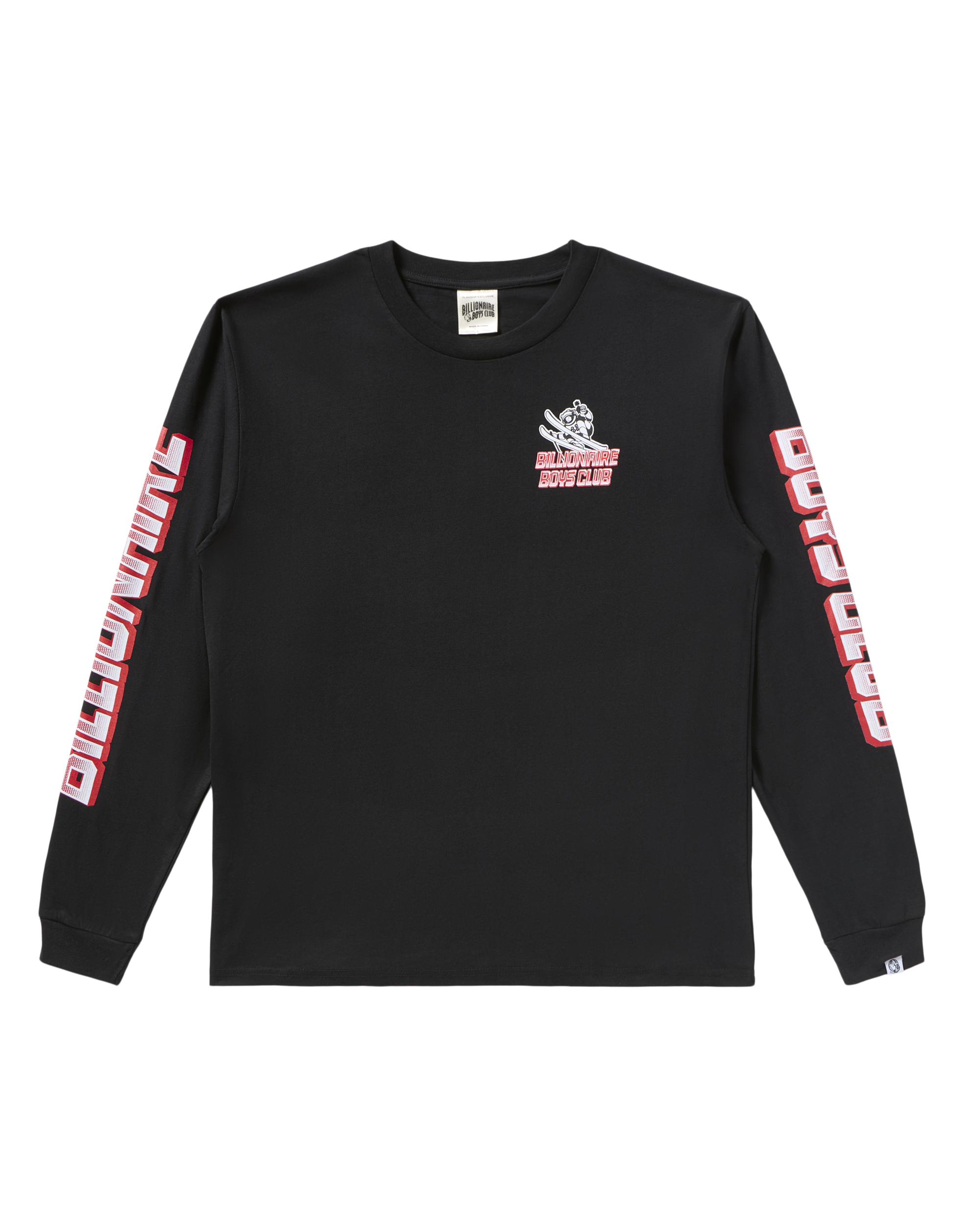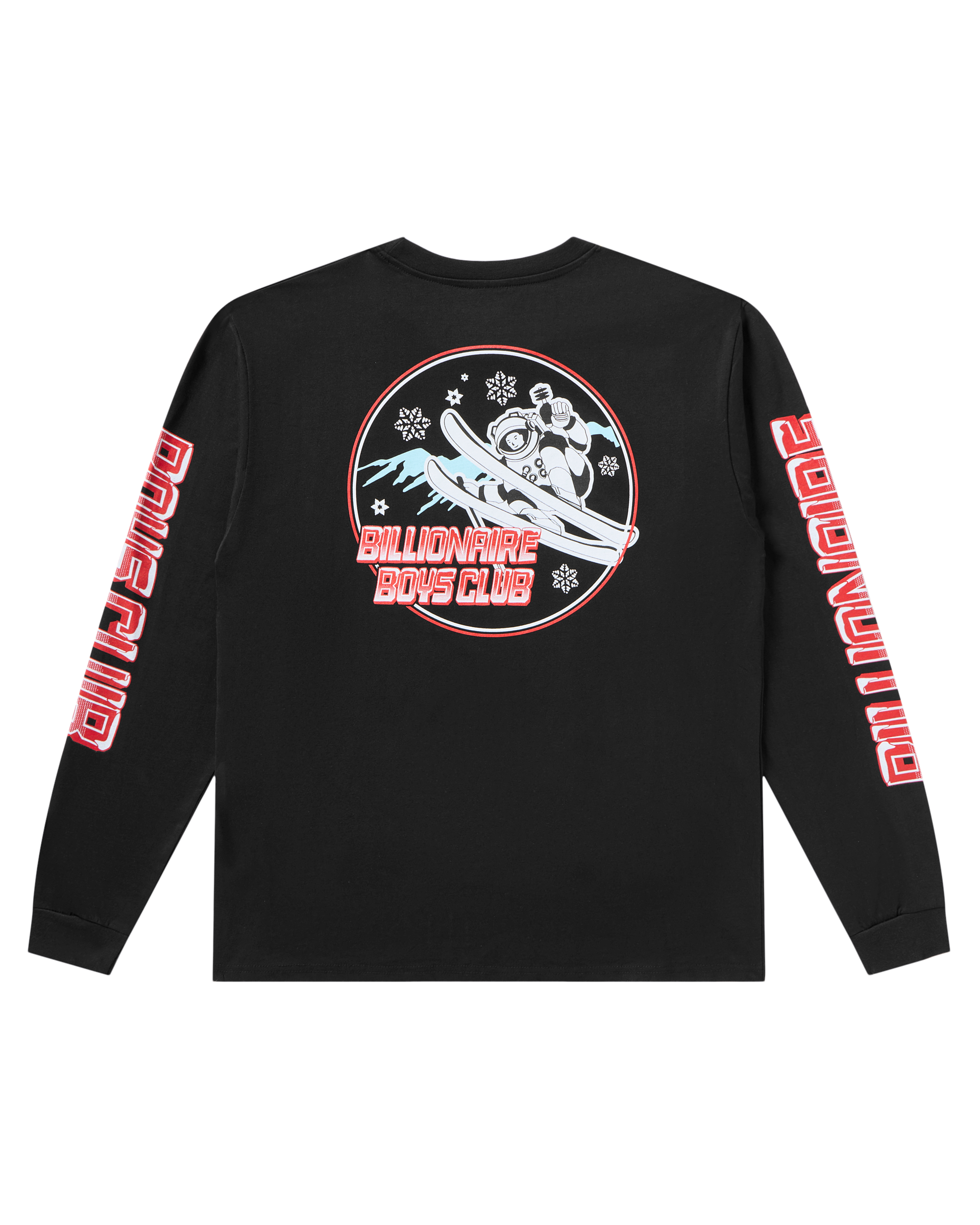 Astro Skier Longsleeve Tee features an astronaut skier under a full moon with the BBC logo on the front and back. along with Billionaire Boys Club printed on the sleeves.