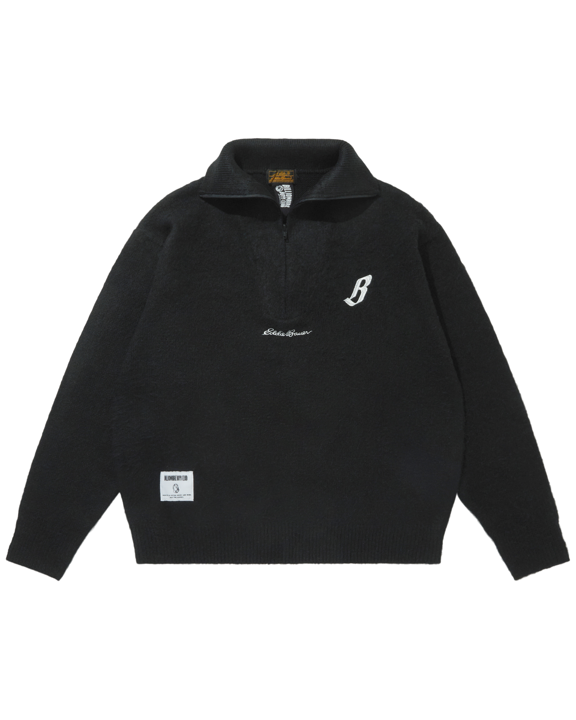 The Billionaire Boys Club x Eddie Bauer Half Zip Up Knit features a half zip and the original BILLIONAIRE BOYS CLUB embroidery and Eddie Bauer embroidery on the front.