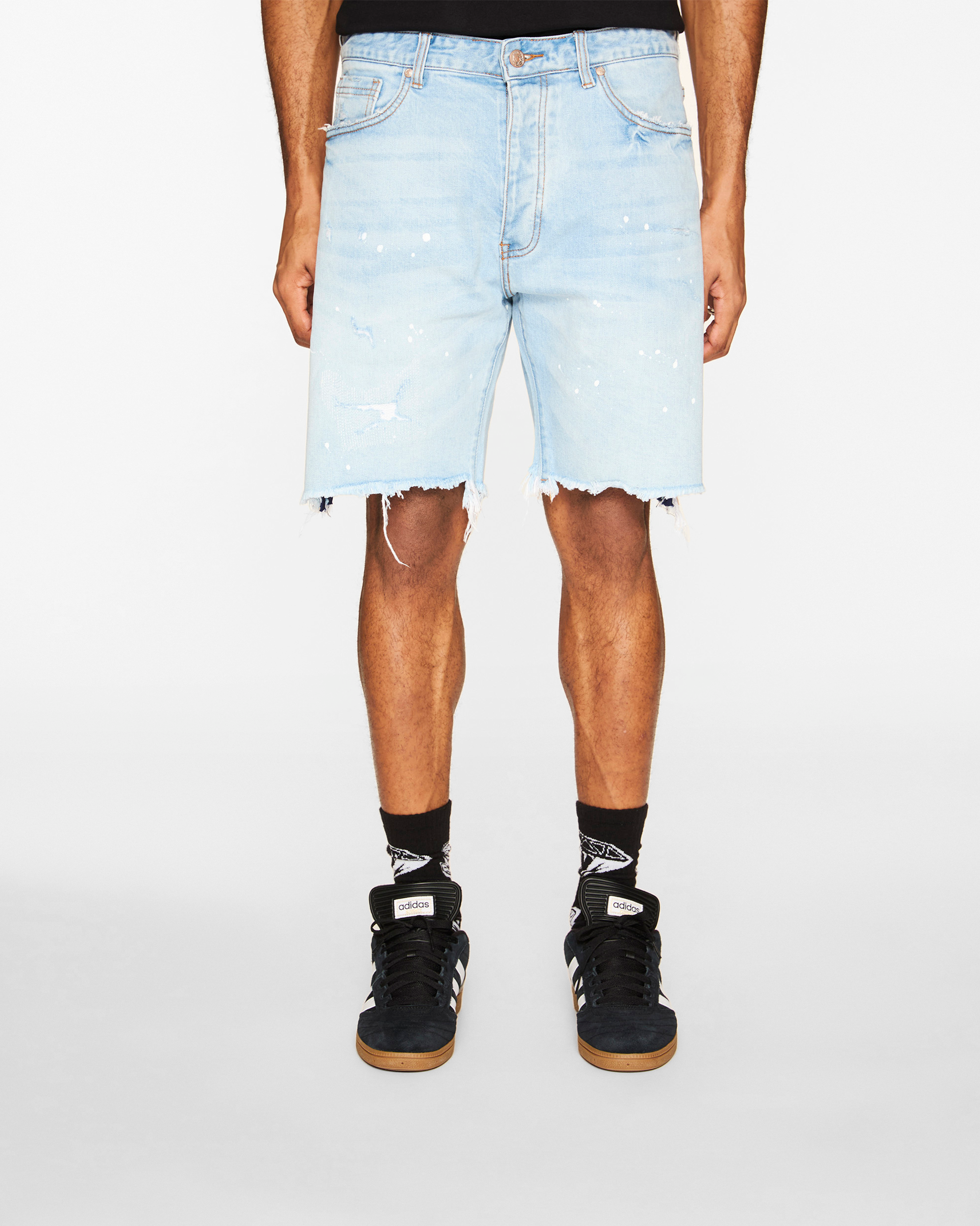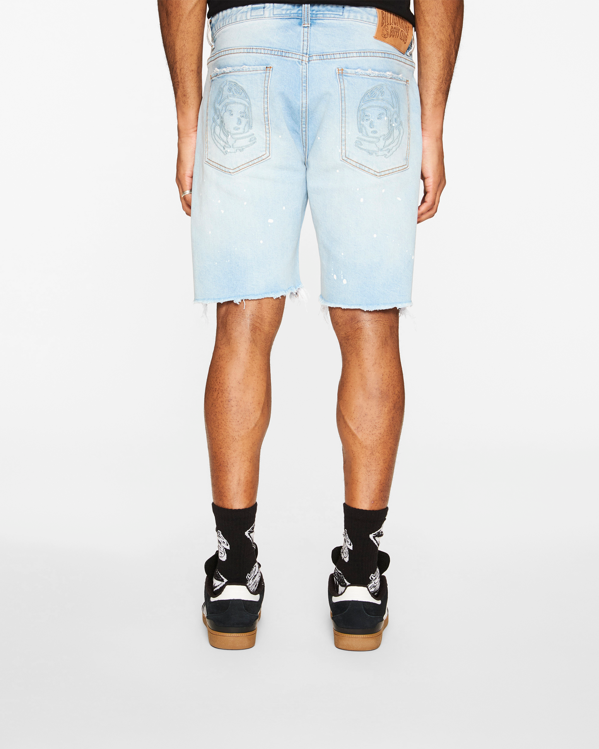 These Cadet Jean Shorts feature paint splatter designs and an embroidered Helmet logo on the back.