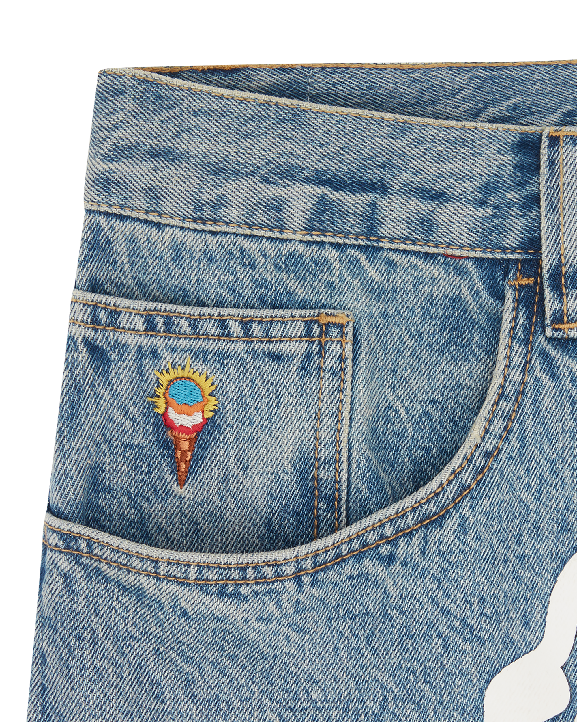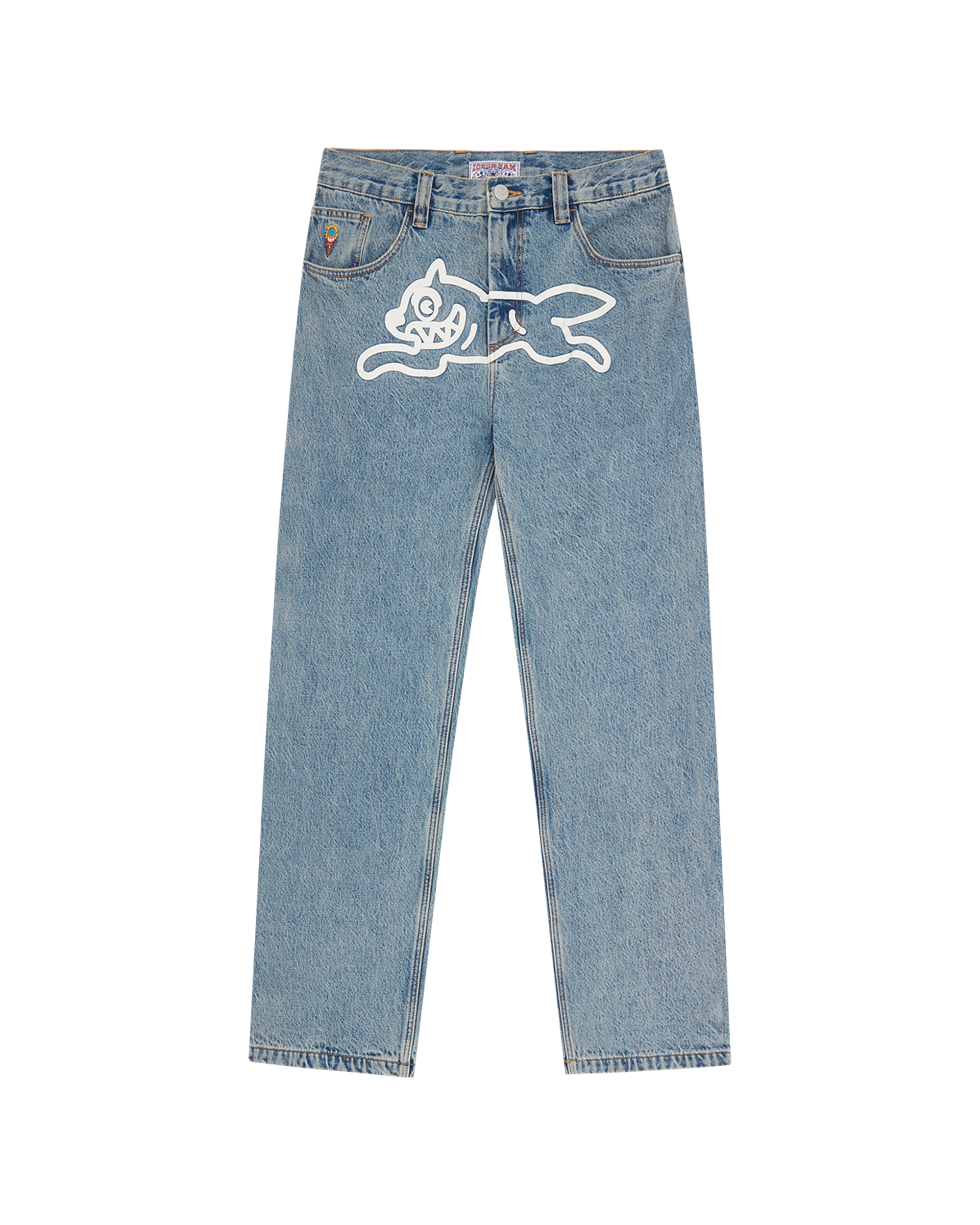 Check Lined Denim Pant features the iconic screen printed Running Dog graphic on the front. embroidered IC logo.