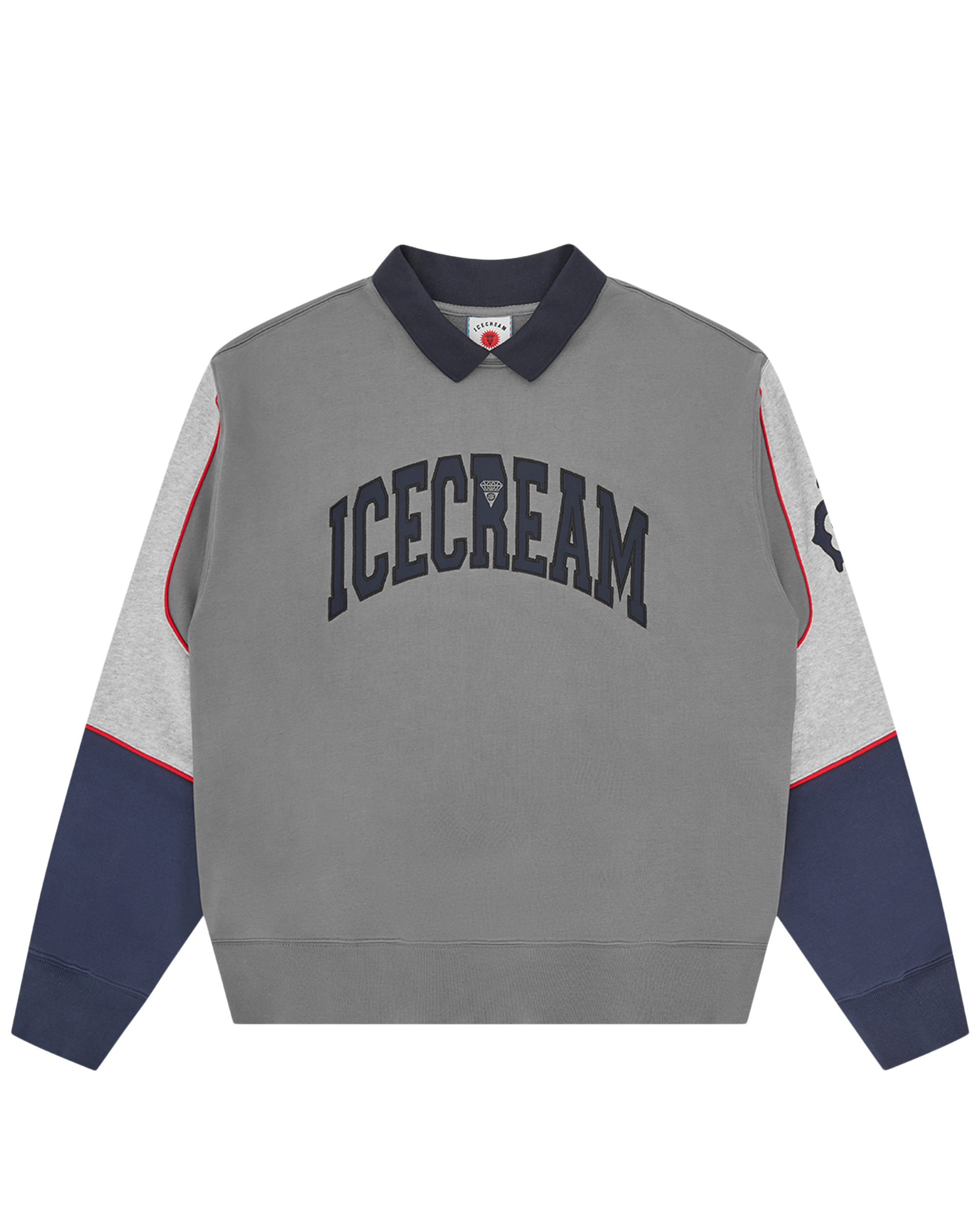 This Collared Warm-Up Sweatshirt presents a collar and the ICECREAM twill appliqué on the chest.