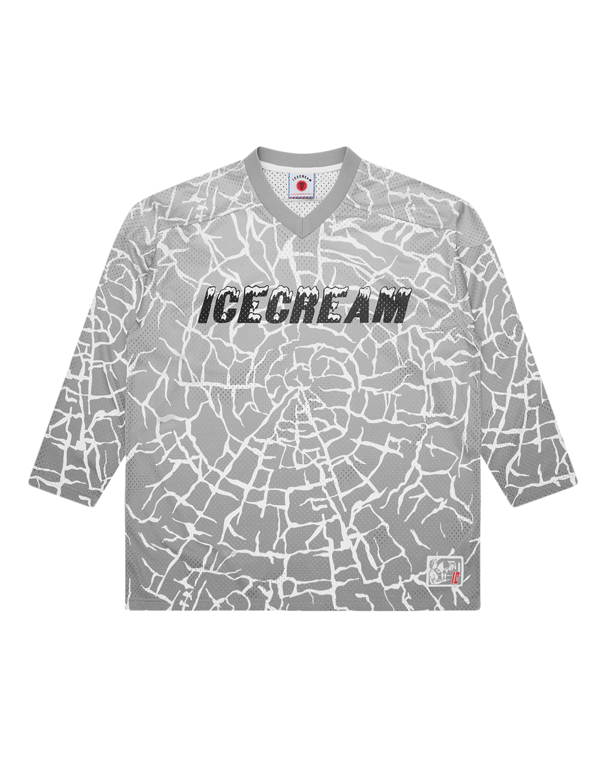 Cracked Ice Hockey Shirt featuring an allover cracked-ice graphic. The front is stamped with the Icecream logo. while the back is finished with oversized IC graphics.