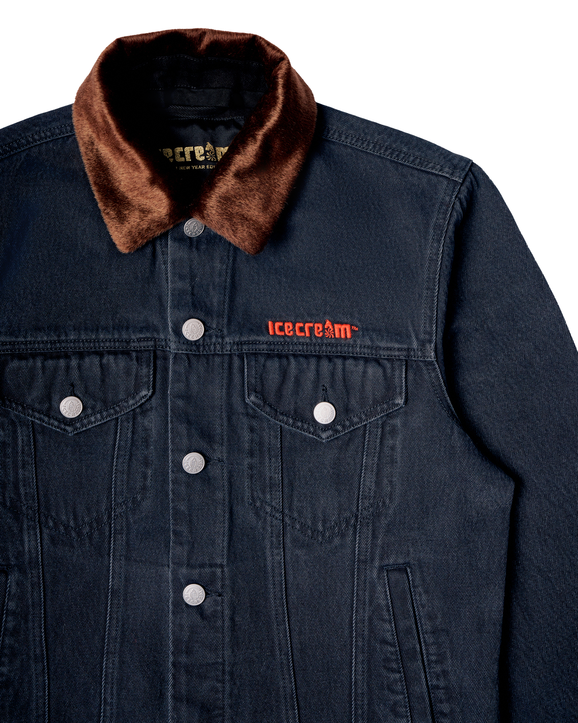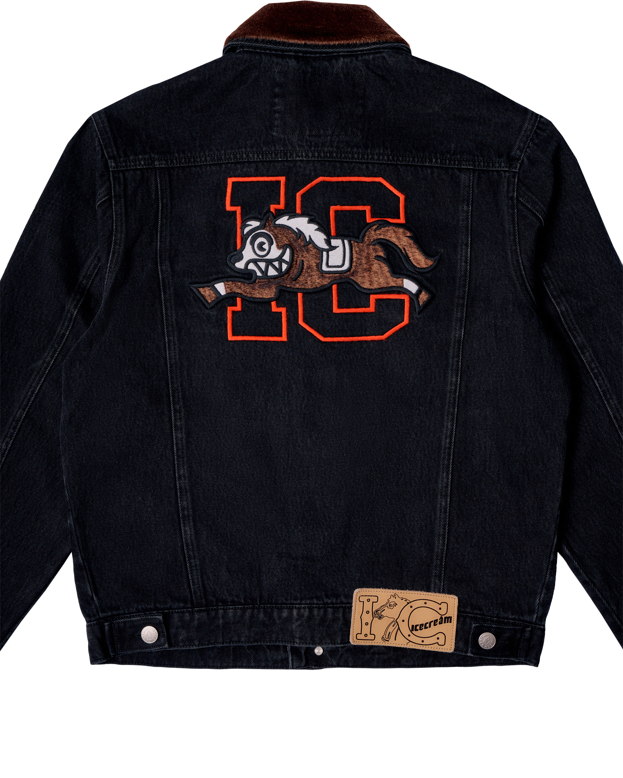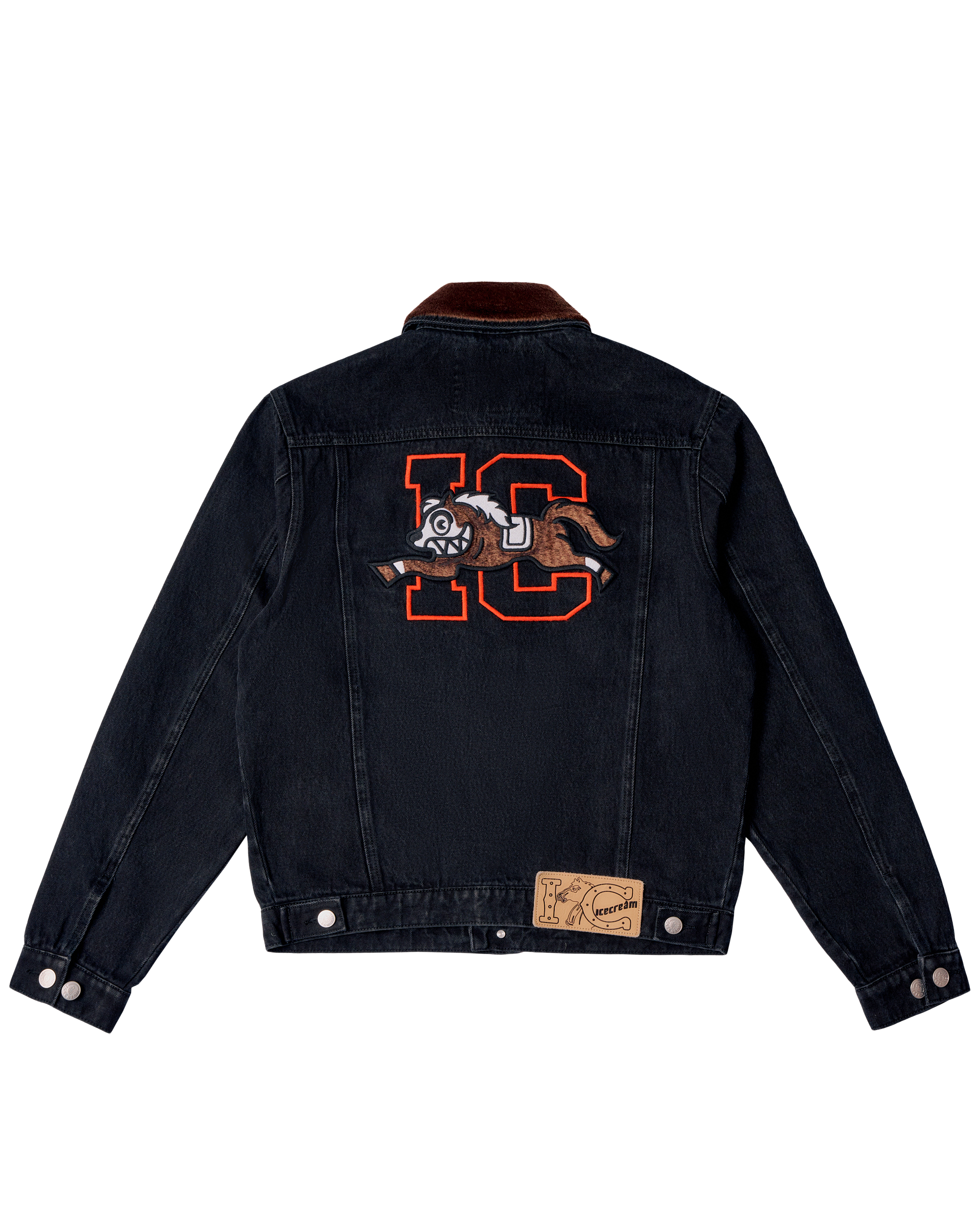 The Stablehand Denim Jacket is a statement piece from the BBC Icecream Chinese New Year Collection. This jacket features a removable faux fur collar and Icecream embroidery on the front and back.