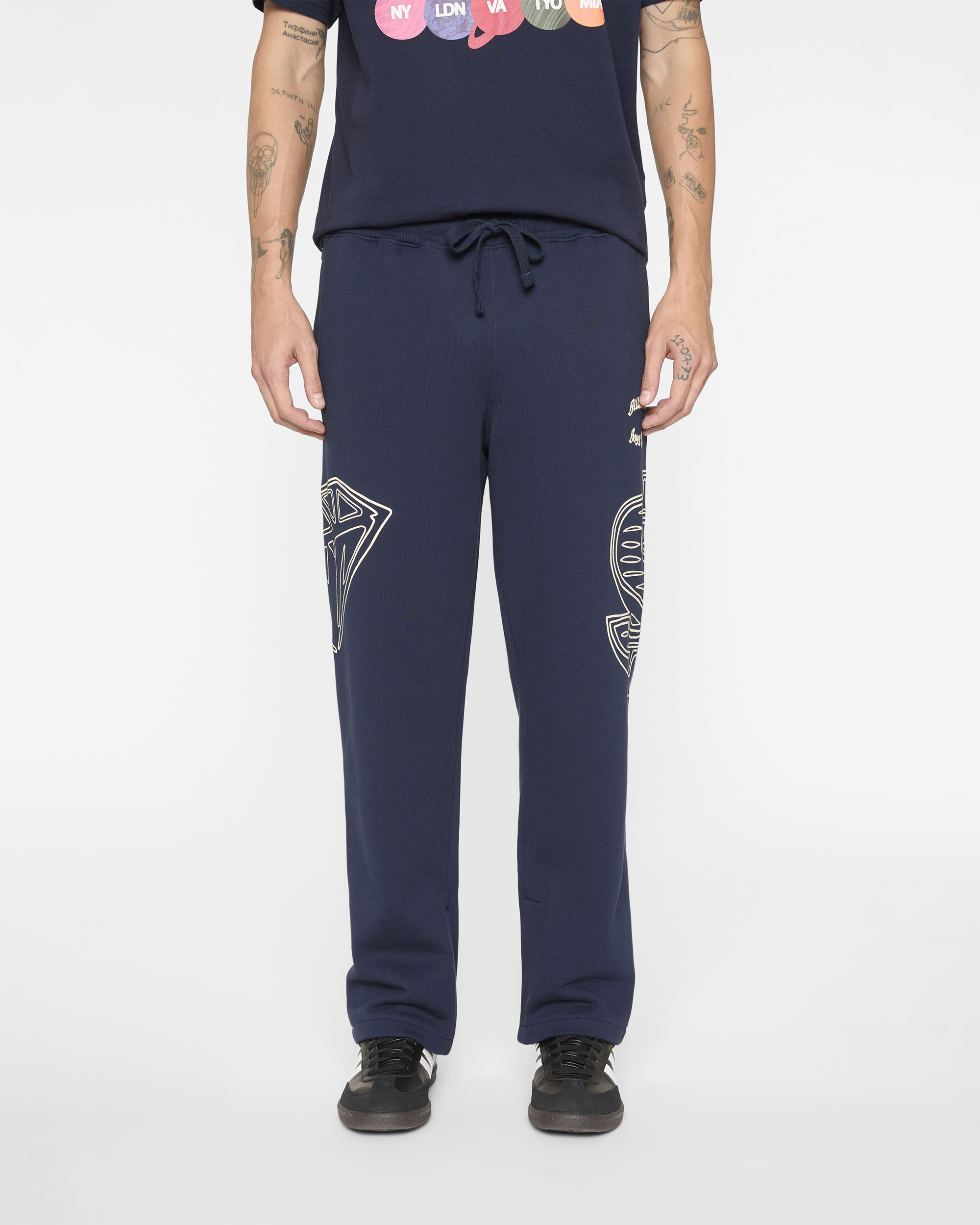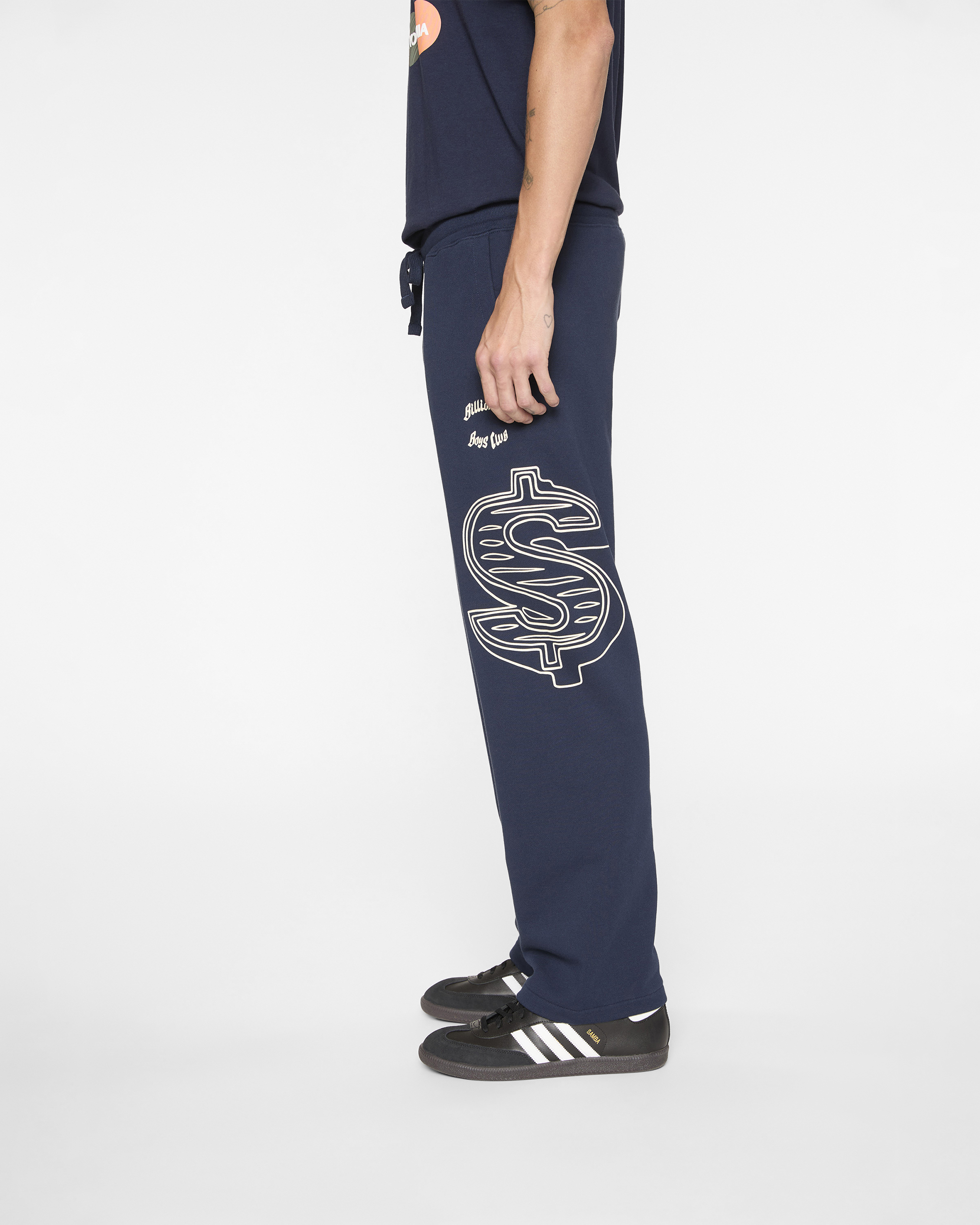 The Dual Sweatpants feature an adjustable waistband. a Billionaire Boys Club graphic on the left pocket. and the iconic Diamond & Dollar logo along the pant leg on both sides.