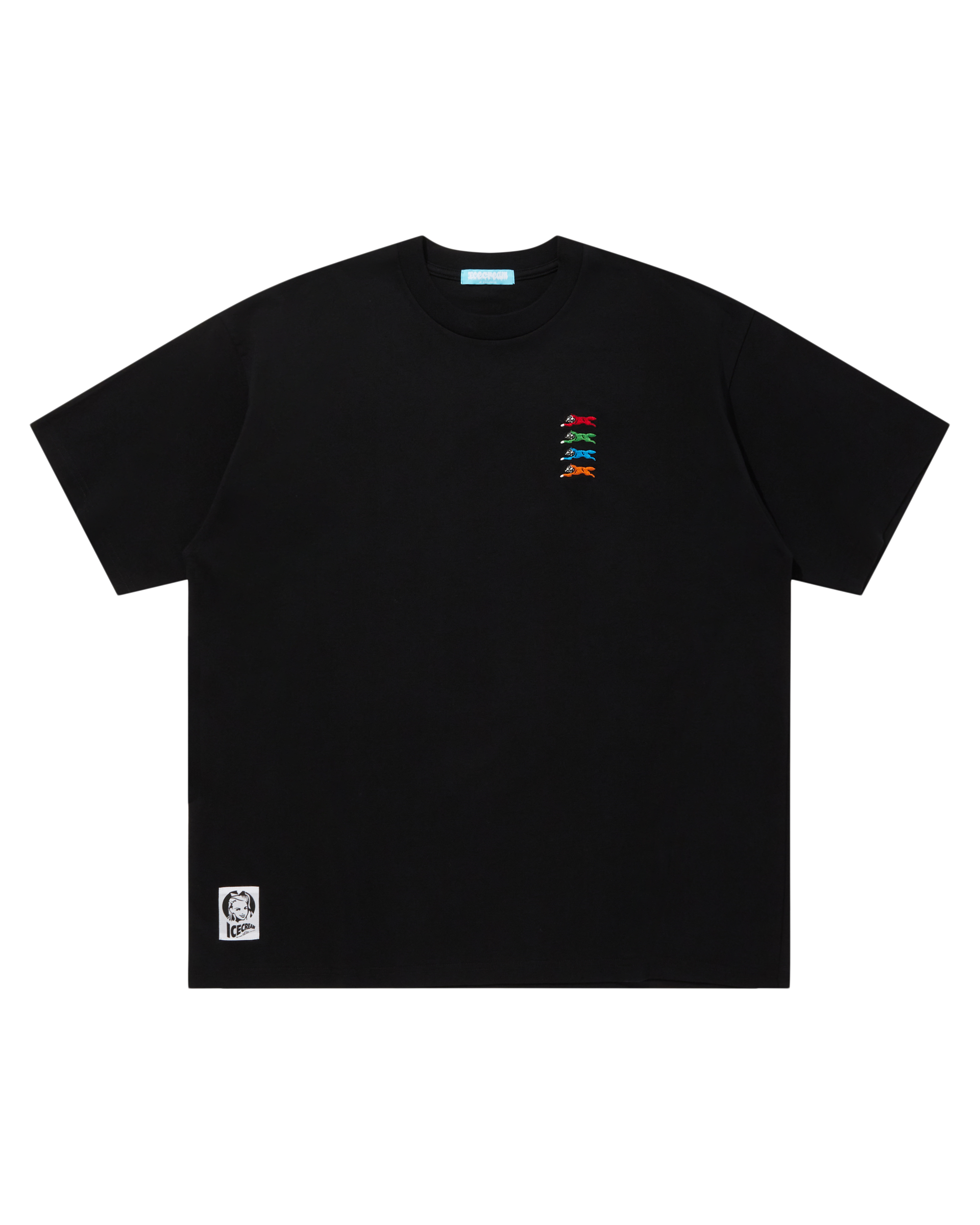 This cotton T-shirt showcases ICECREAM’s iconic Running Dog graphic embroidered in five vibrant colors across the chest.