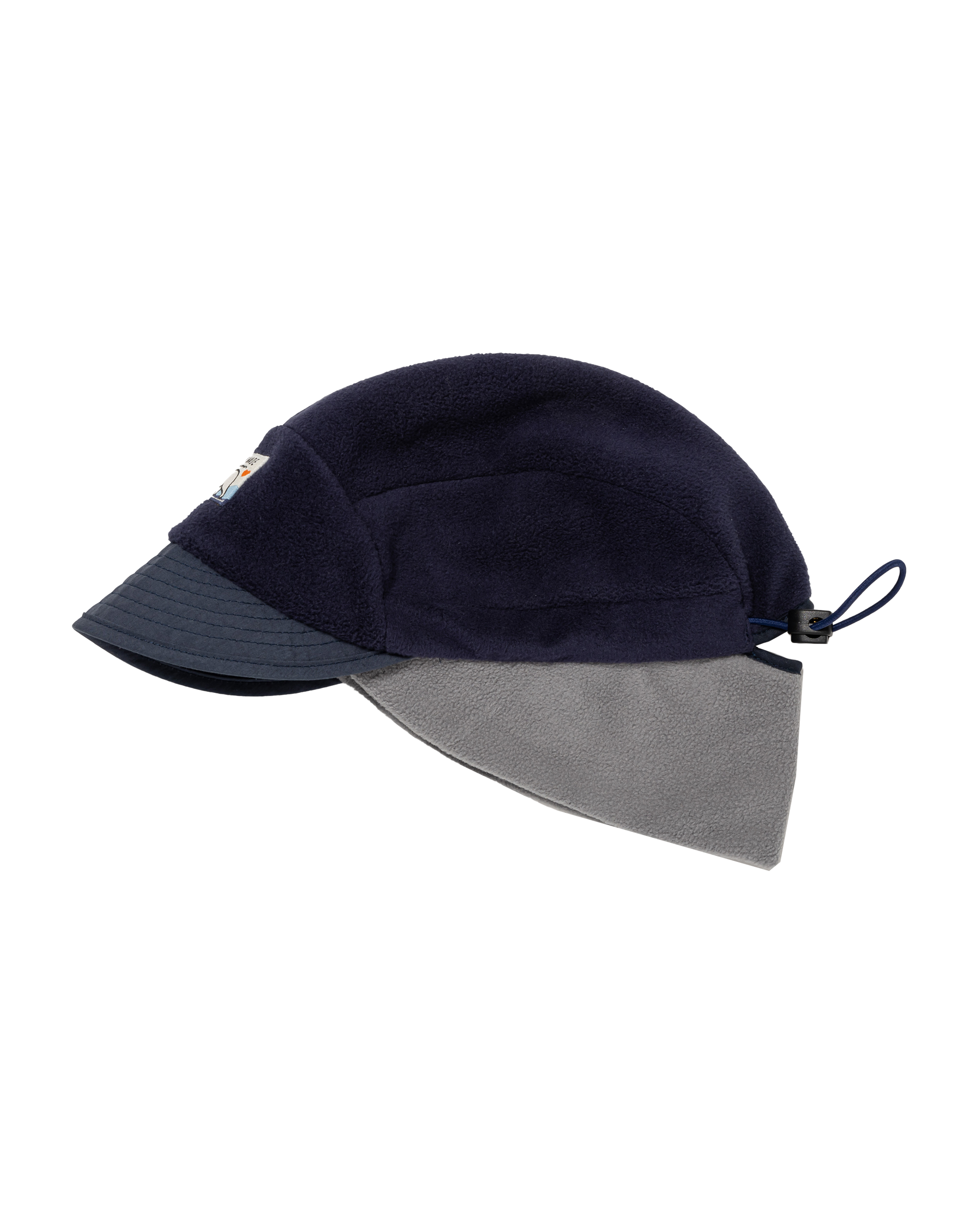 A fleece cap that is great for daily use as well as outdoor activities. It has earmuffs and a drawstring at the back for size adjustment.