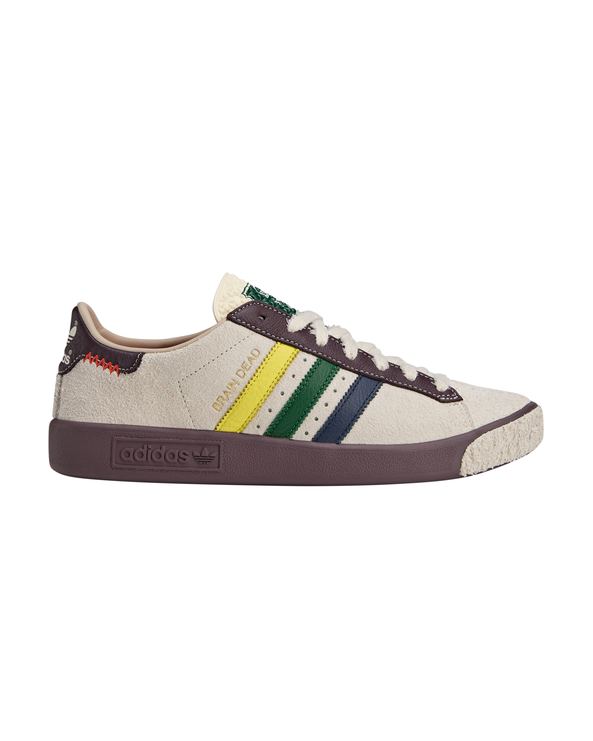 Brain Dead and adidas teamed up to revive the Forest Hills trainer. inspired by its 1976 debut at a major tennis tournament in Queens. NY. The low-profile shoe boasts a hairy suede upper and Ecotex tongue. and is finished with visible stitching and the iconic 3-Stripes.
