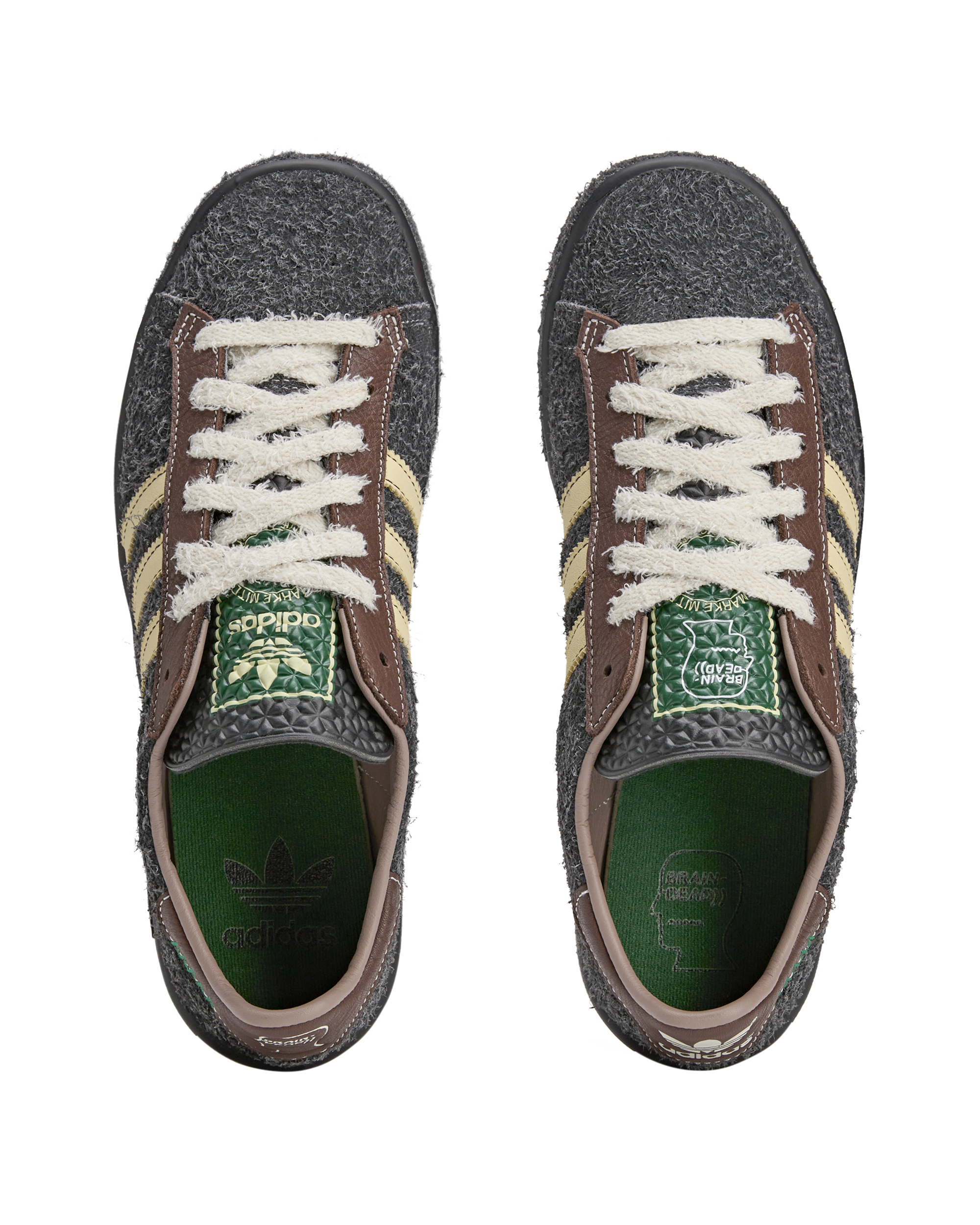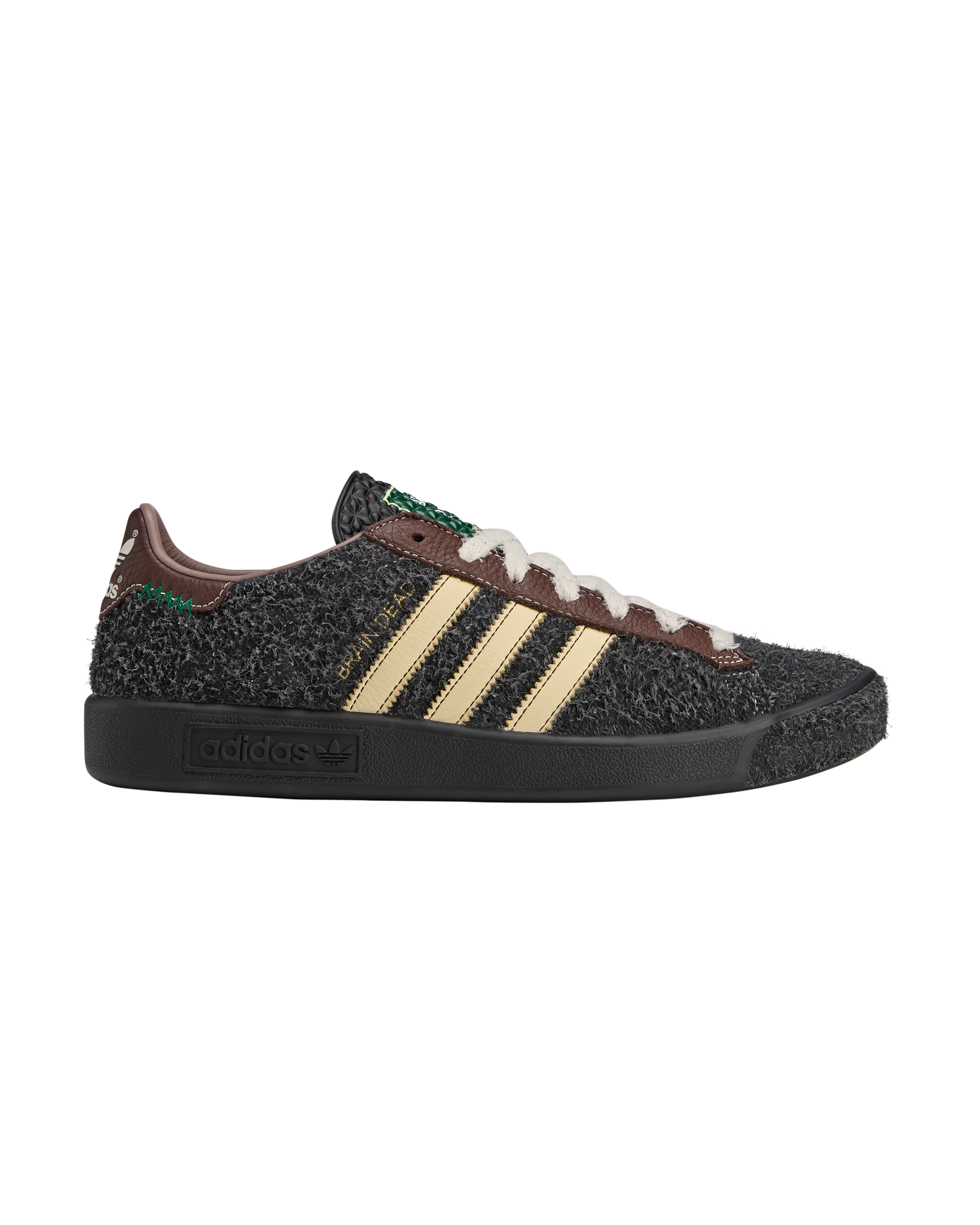 The adidas Forrest Hills trainer was first released in 1976. In collaboration with Brain Dead. we bring back the silhouette that first debuted at one of the biggest tennis tournaments in the Queens. New York neighbourhood the shoes get their name from. Still a low-profile silhouette. they have a hairy suede upper that features 3-Stripes. visible stitching at the heel tab and an Ecotex tongue.