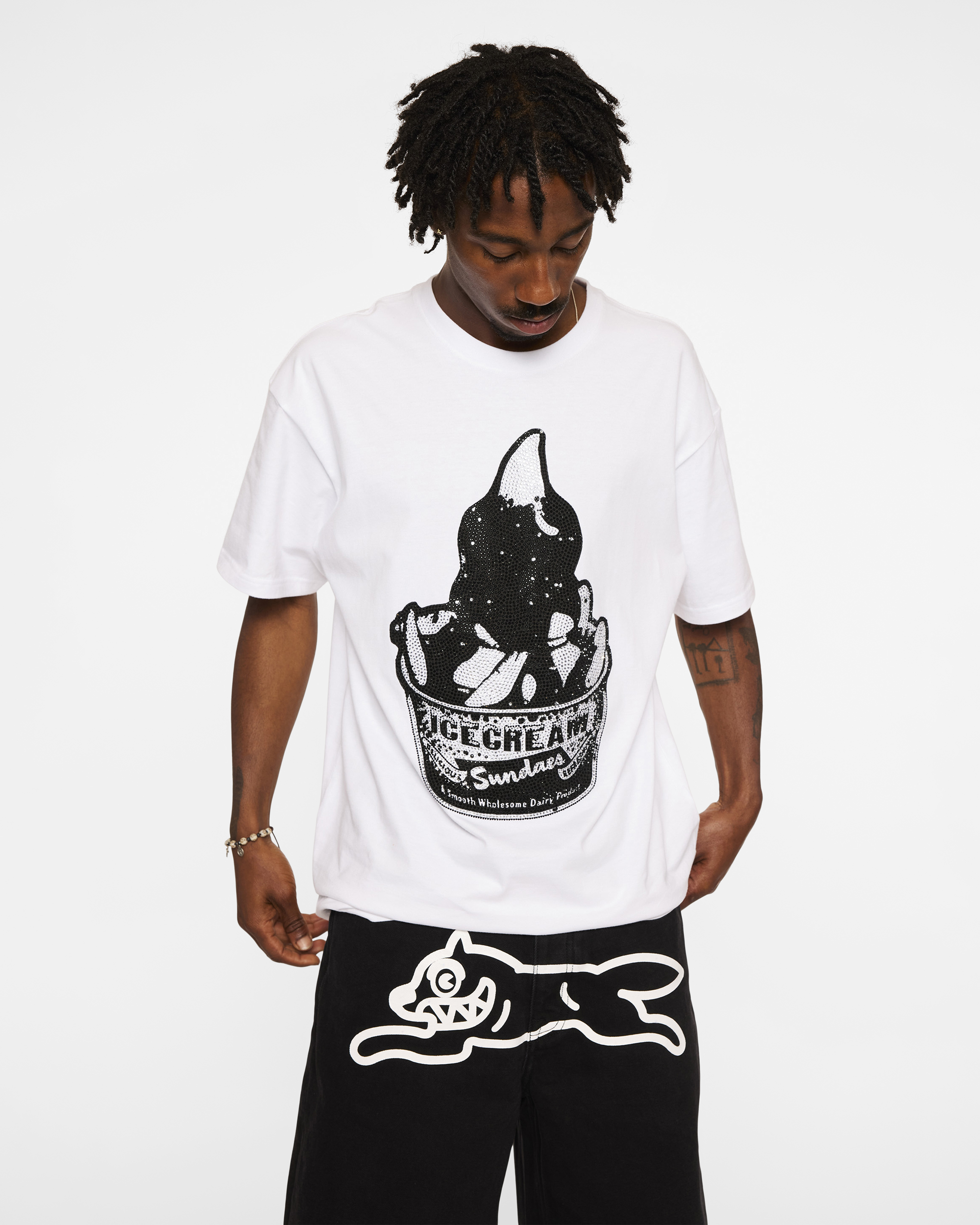 This tee showcases a front graphic of an ice cream sundae adorned with crystals. complemented by the IC signet printed at the back neckline.
