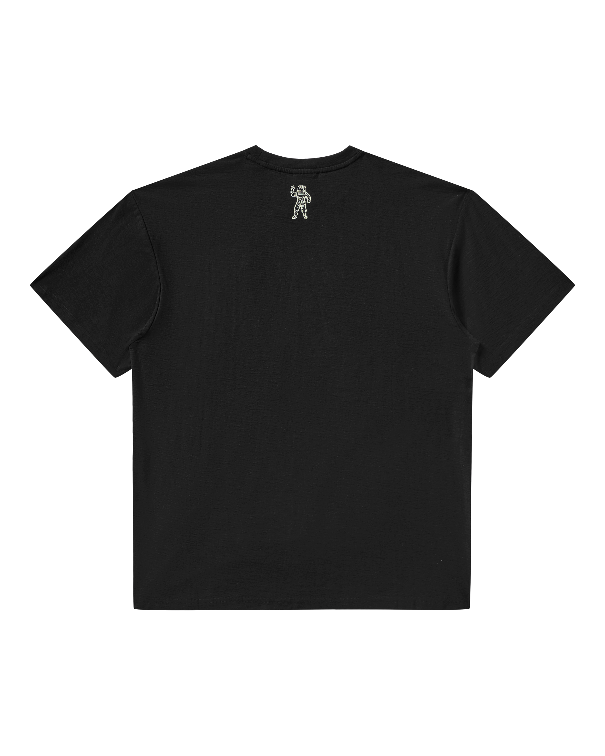 The Global Tee features a retro rocket graphic alongside the cities Tokyo. Hong Kong. London. VA Beach. New York. and Miami. and the Standing Astronaut logo on the back neck.