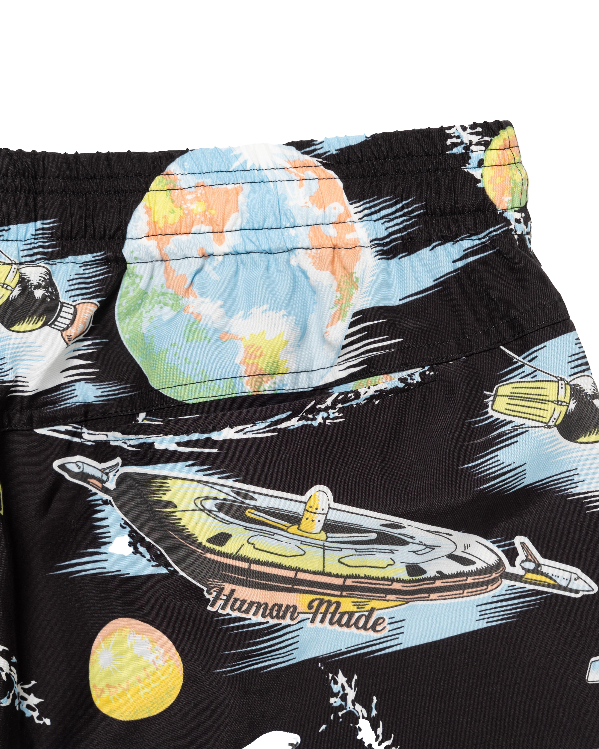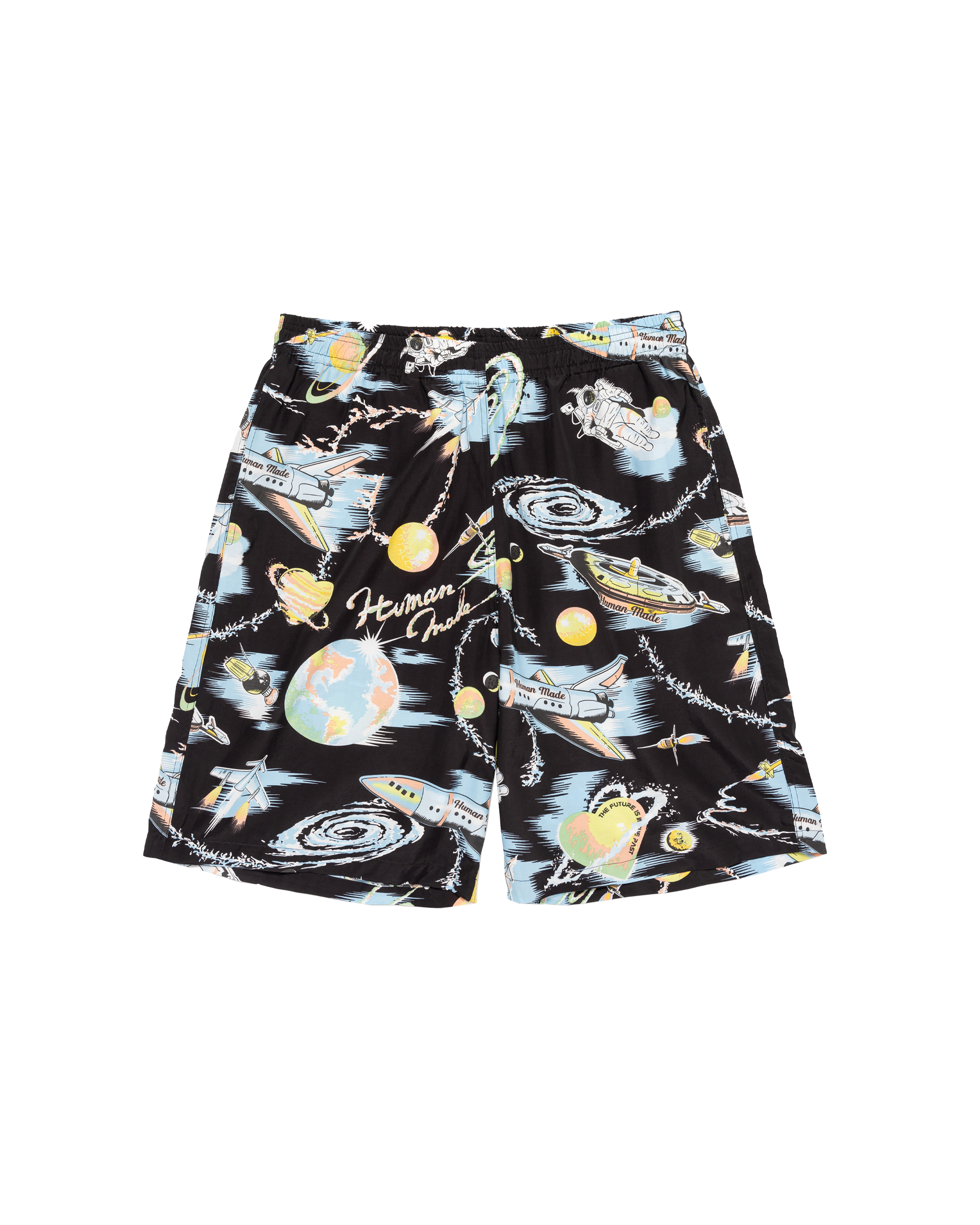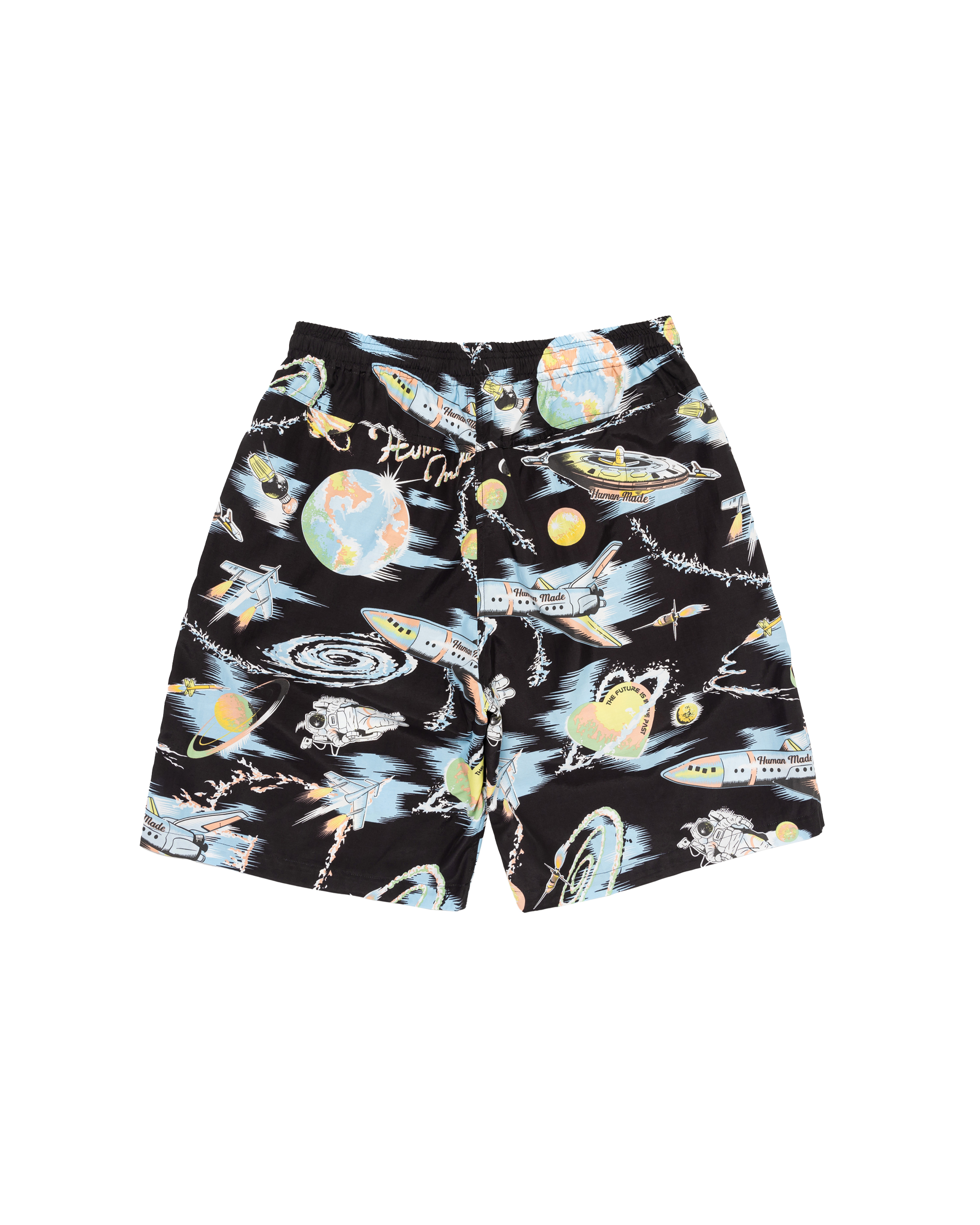 These shorts feature eye-catching space graphics.