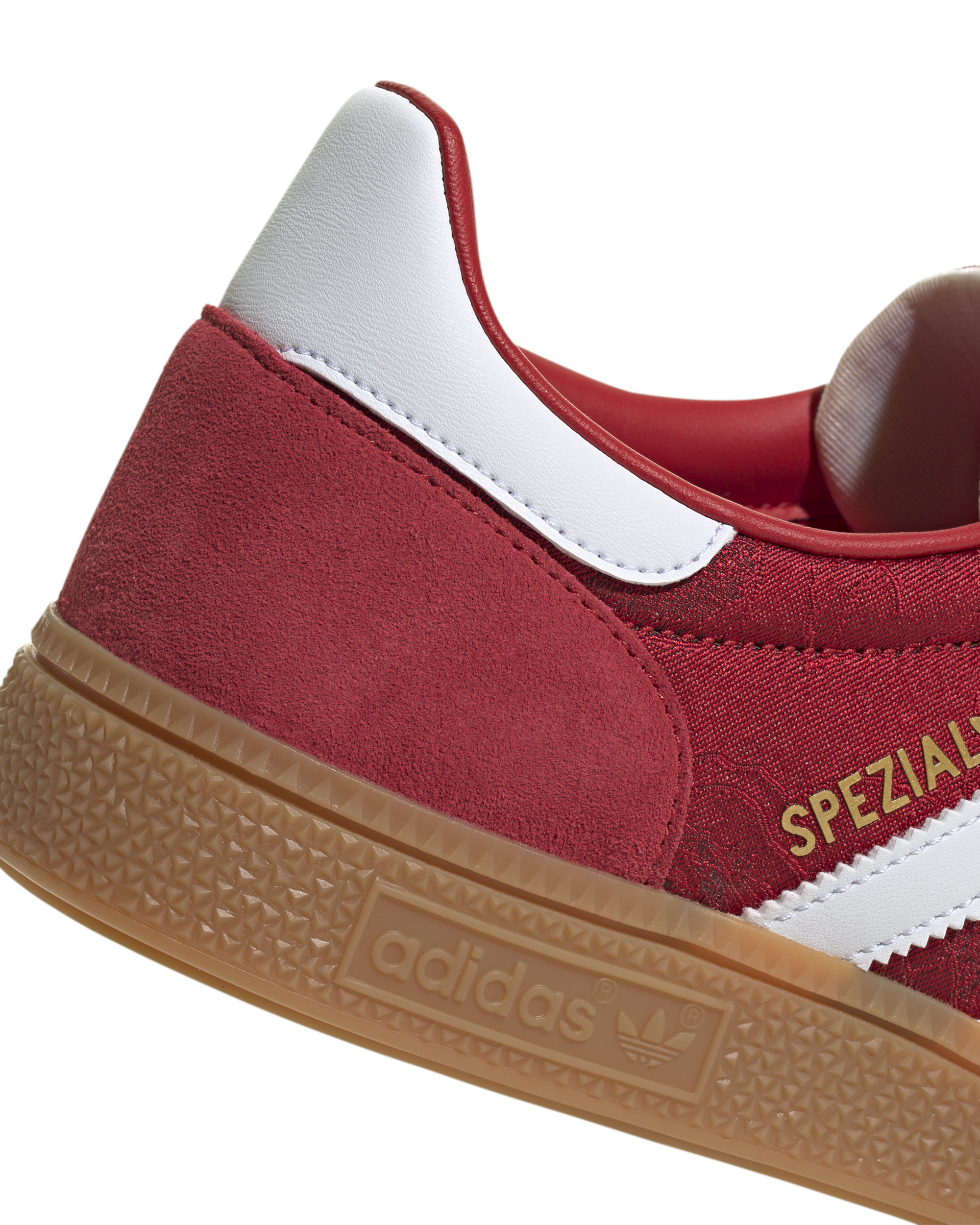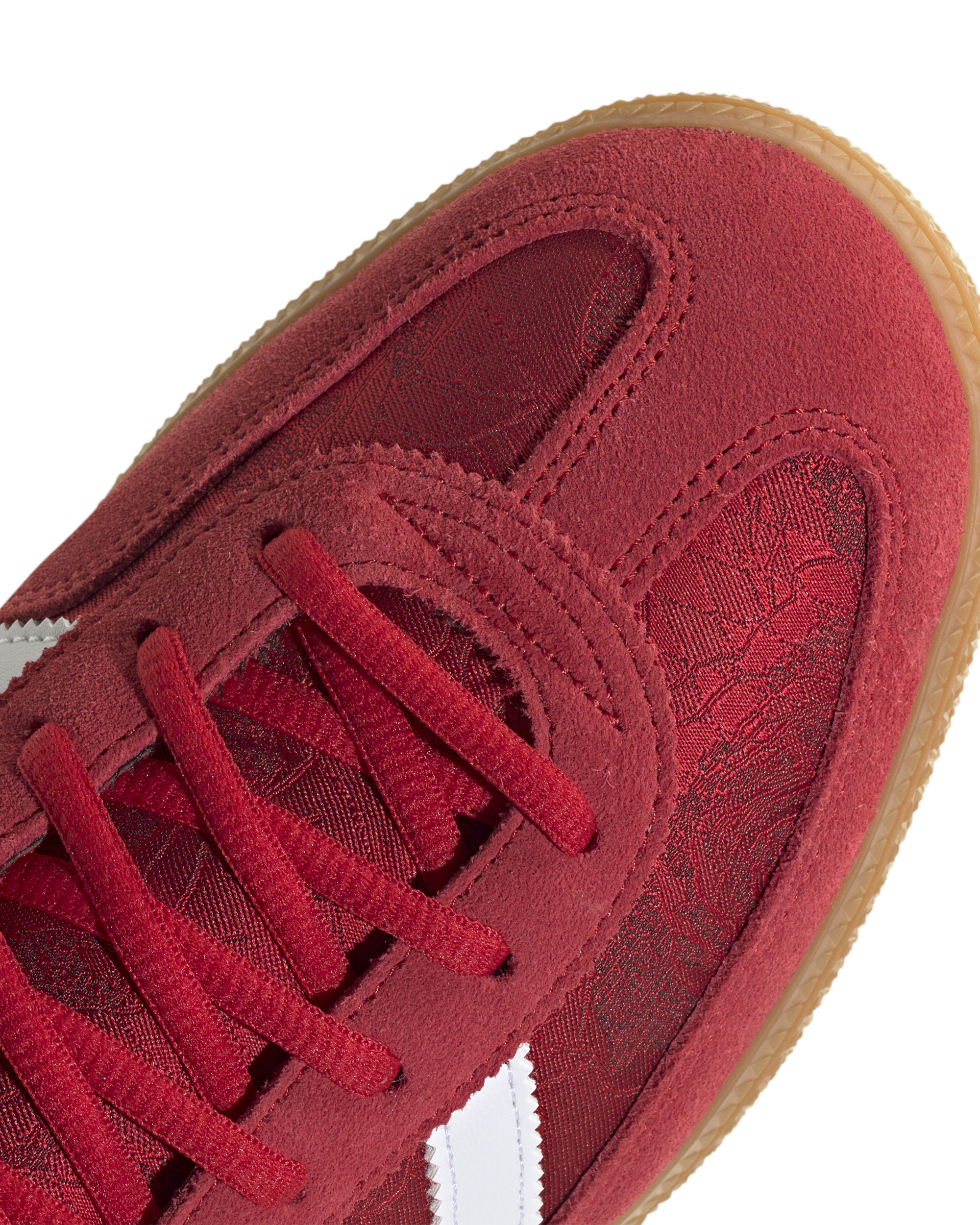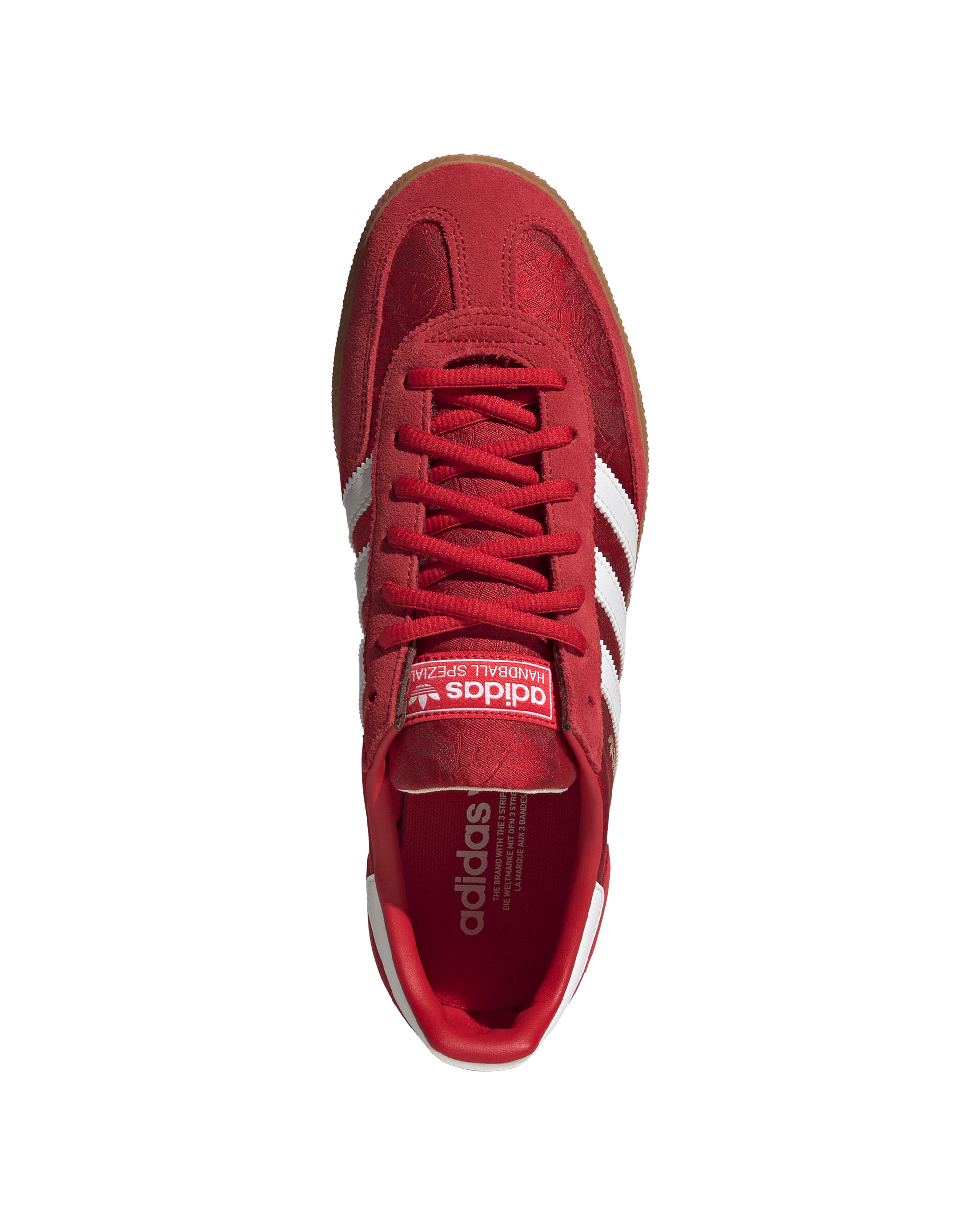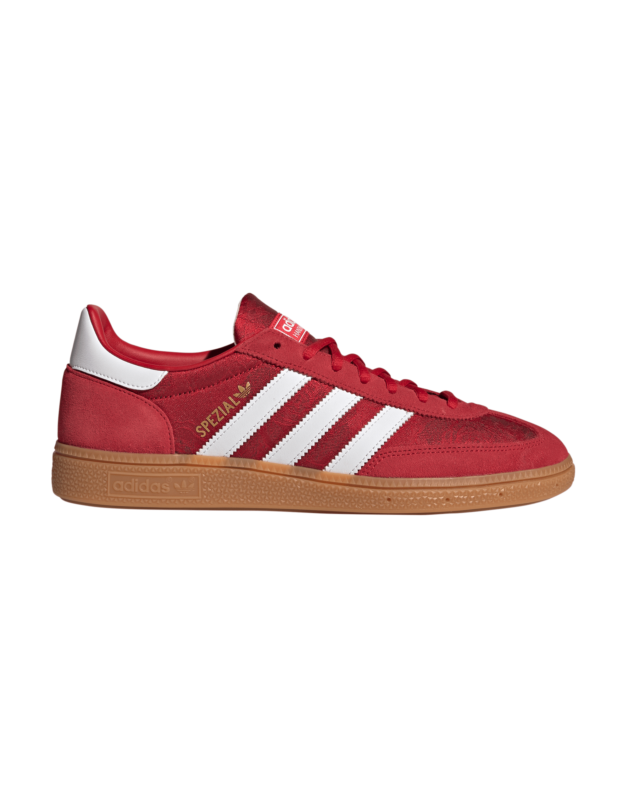 Classic handball shoes with roots dating back to 1979. Featuring a soft outsole for comfort and grip. these kicks blend vintage appeal with modern style. The woven textile upper showcases a bold rose graphic. while suede accents on the toe. eyestay. and heelcap add refined detail. Secure lace closure and the iconic adidas 3-Stripes complete the look.