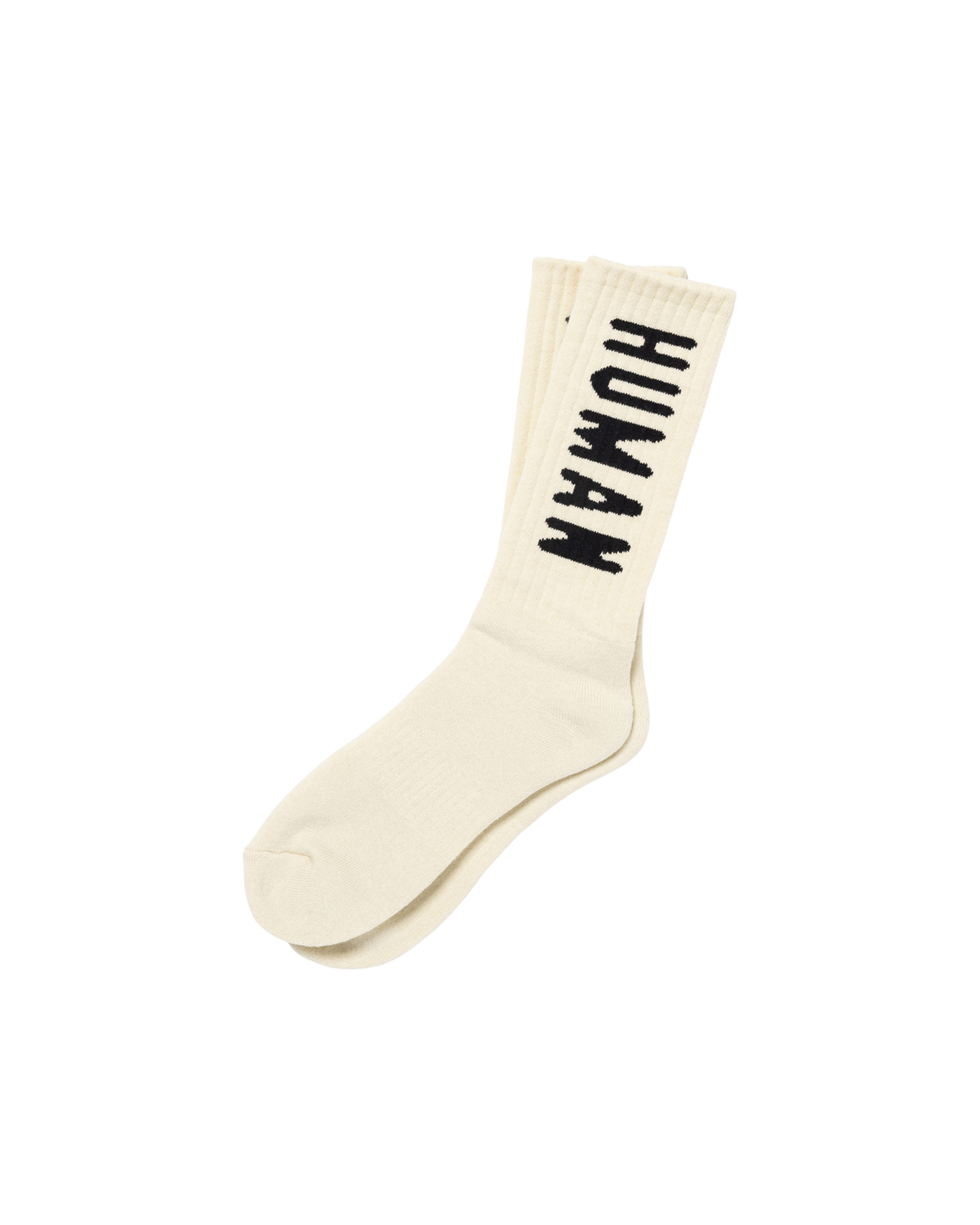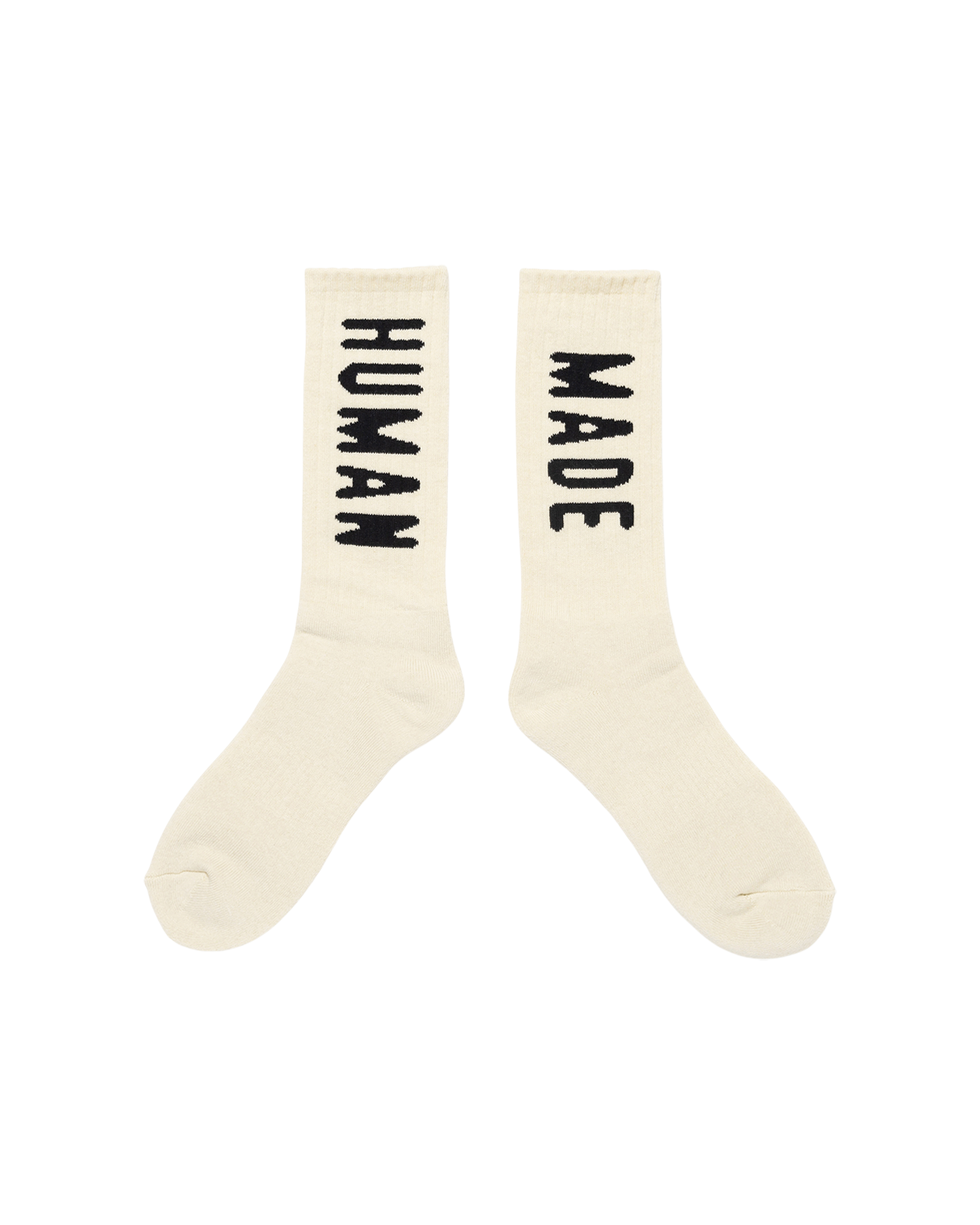 Mid-length pile knit socks feature the HUMAN MADE logo.