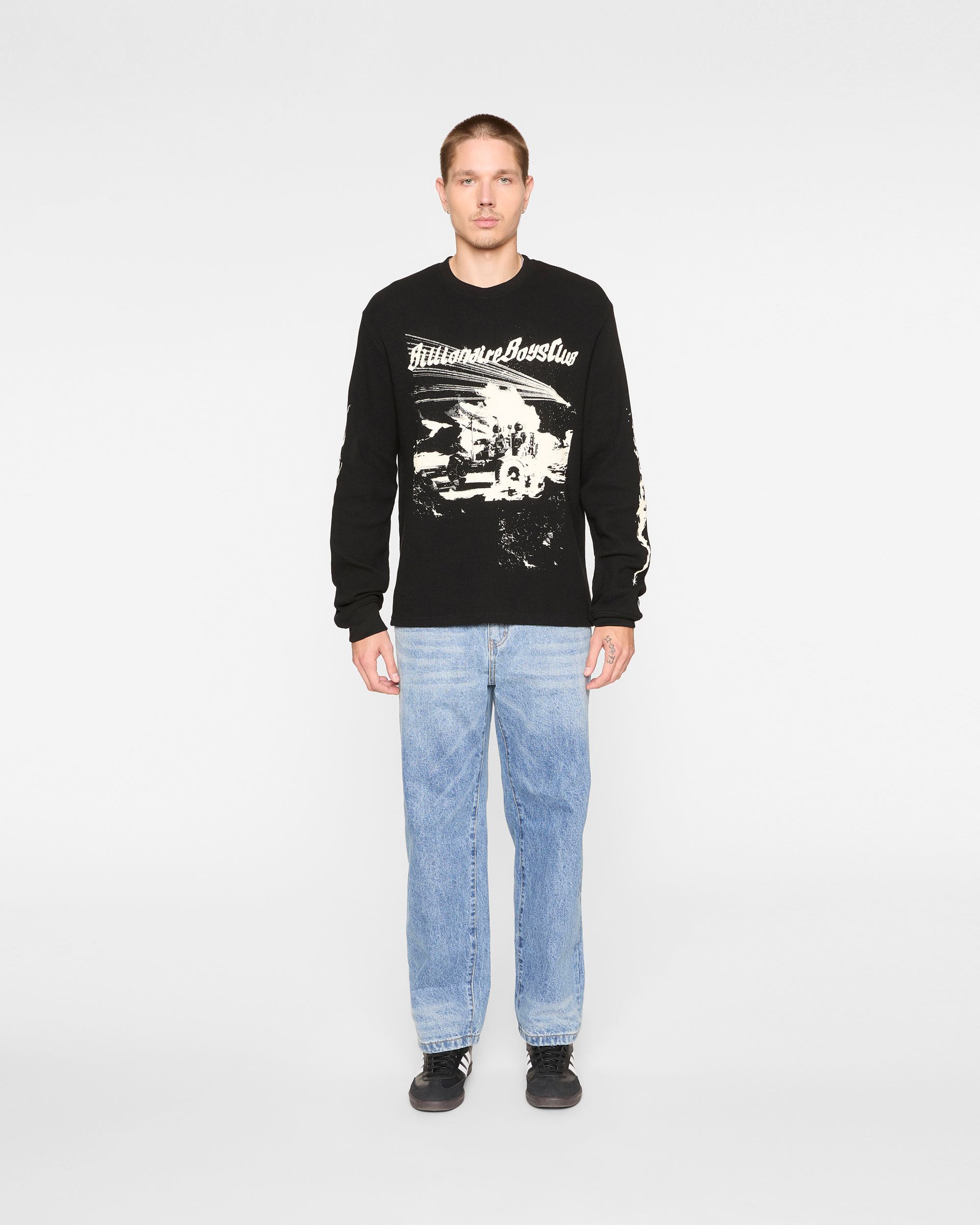 The I Need Space LS Knit features a vintage astronaut-inspired graphic and the Billionaire Boys Club logo on the front. while the back showcases the standout I NEED SPACE artwork. along with Screen-printed sleeve details.
