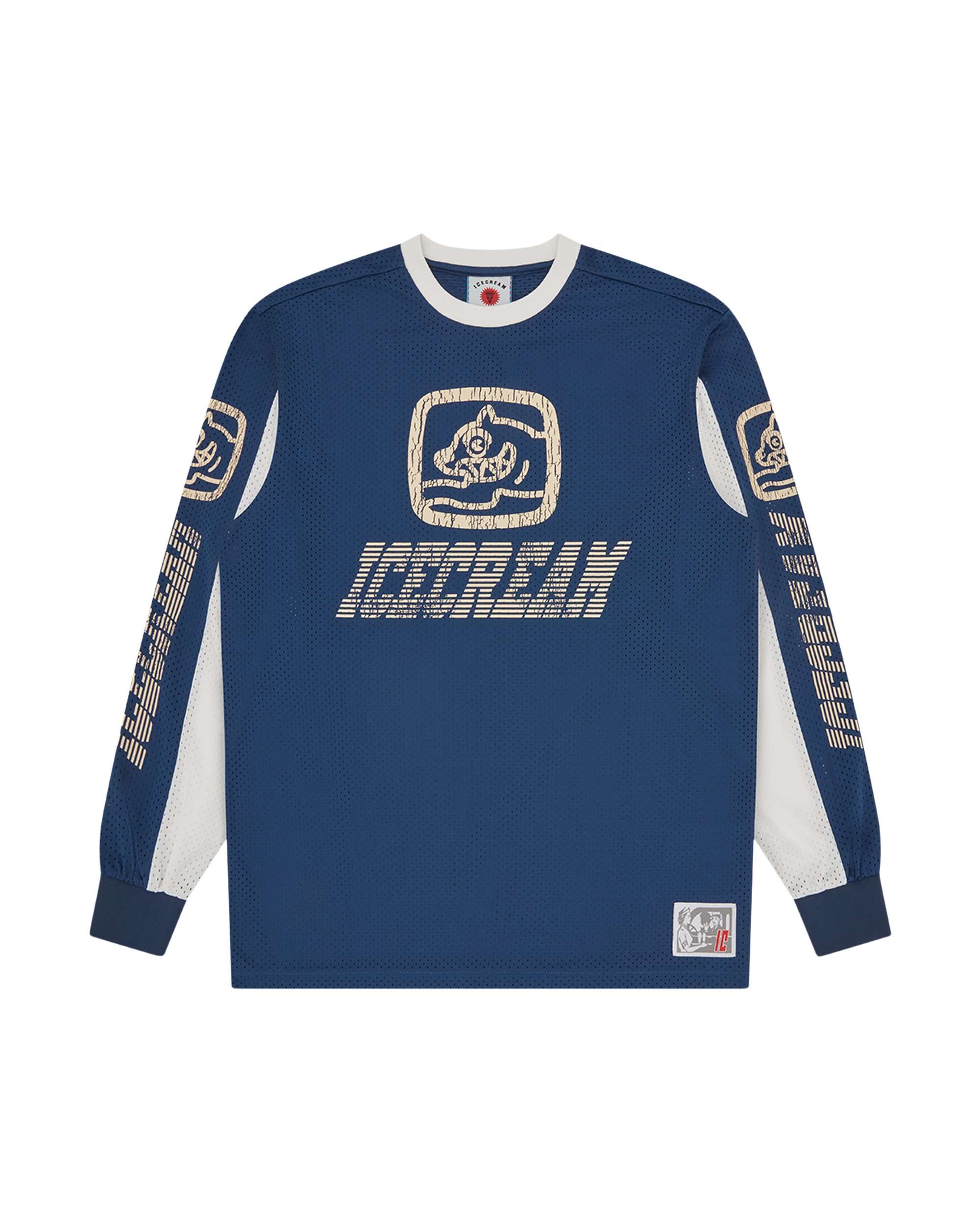 This ICECREAM Racing Moto Jersey features cracked-print ICECREAM graphics on both sleeves and across the chest. It is finished with a branded woven label at the lower waist.