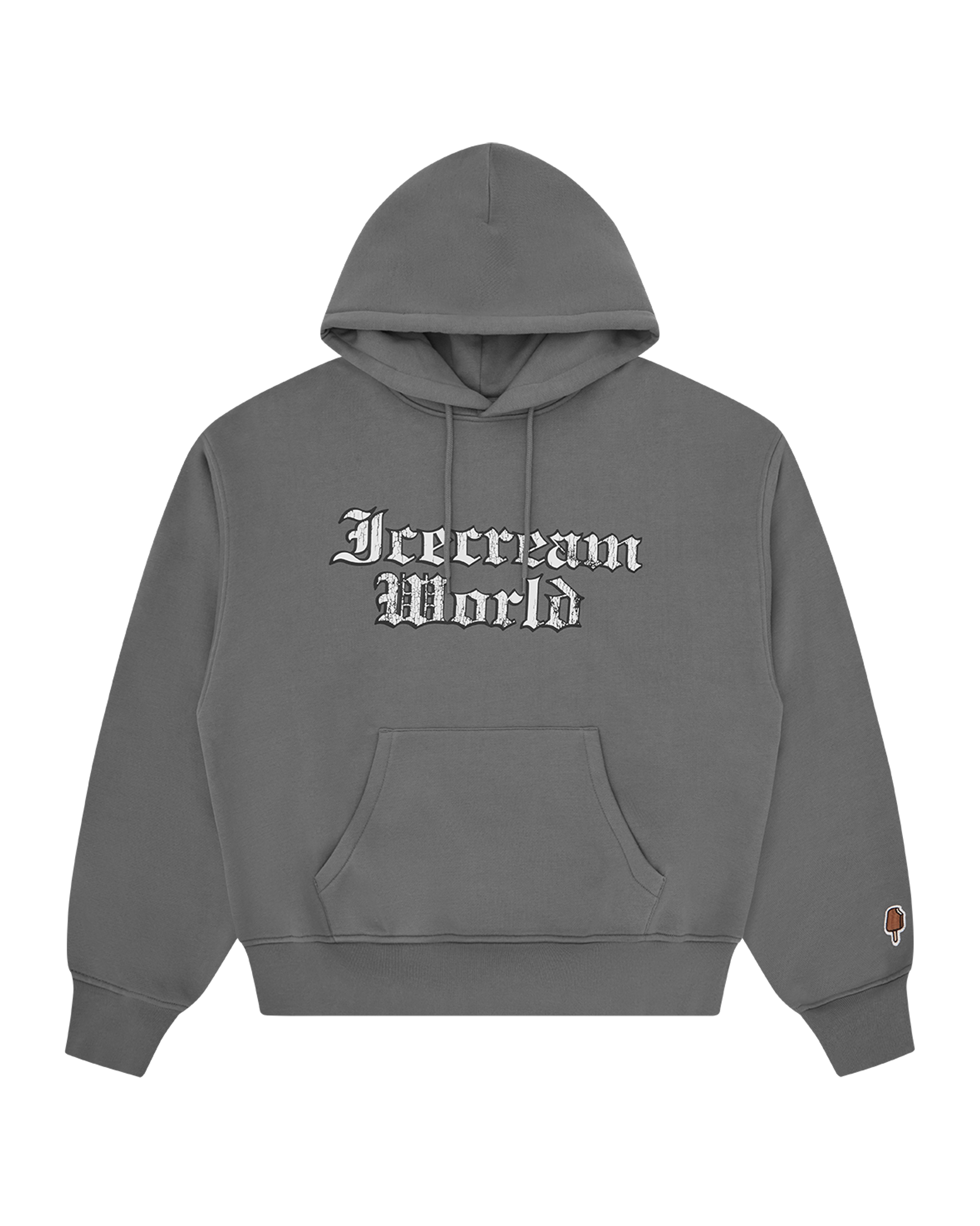 The Icecream World Oversized Hoodie features a drawstring hood. a kangaroo pocket. and Icecream World printed on the front and the IC Signet on the back.