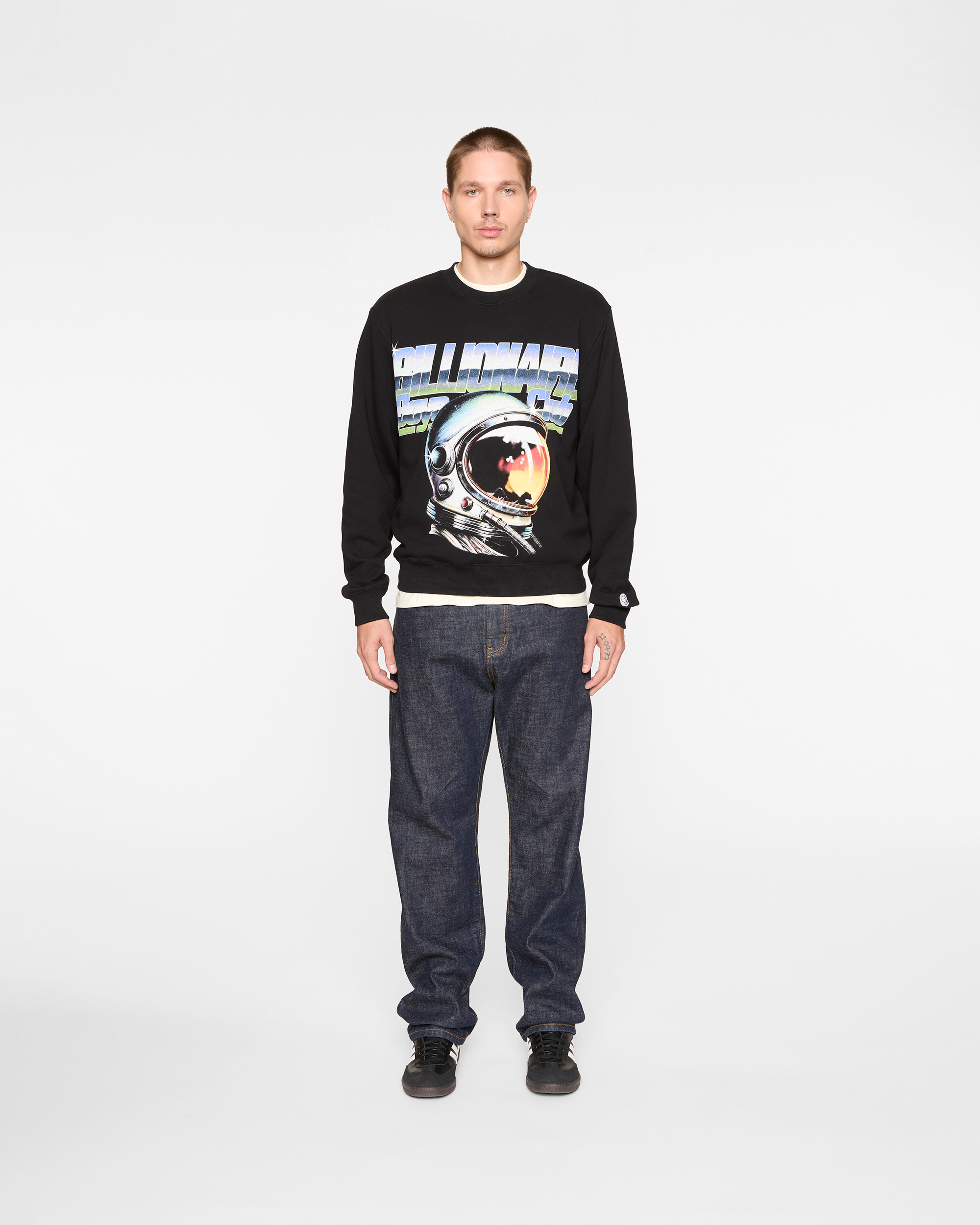 The Jet Pack Sweatshirt features an astronaut graphic and a gradient Billionaire Boys Club logo printed on the front. and the Standing Astronaut logo on the back neck.