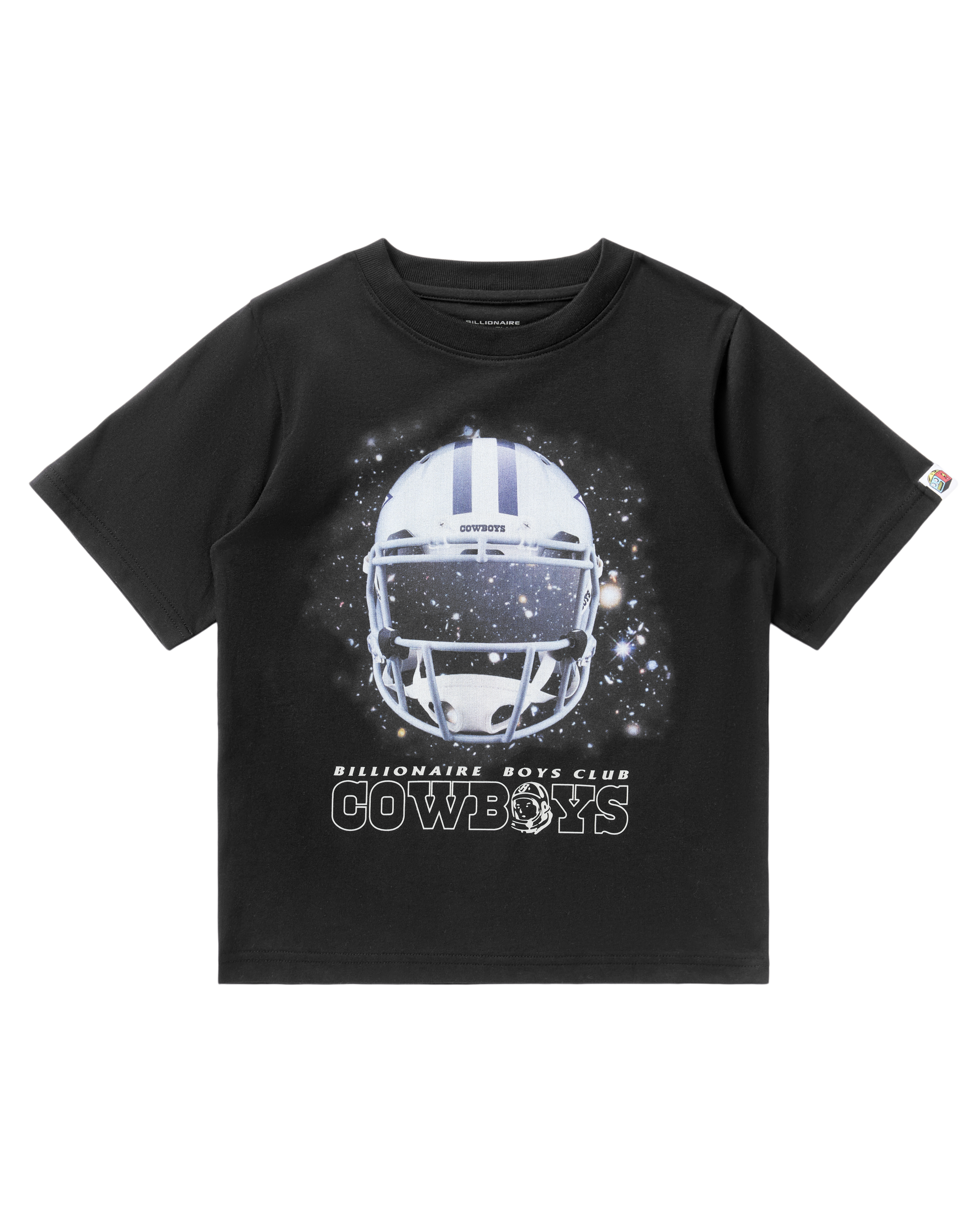 Dallas Cowboys Kids Helmet SS Tee with a Dallas Cowboys helmet graphic and Cowboys x Billionaire Boys Club design on the front.