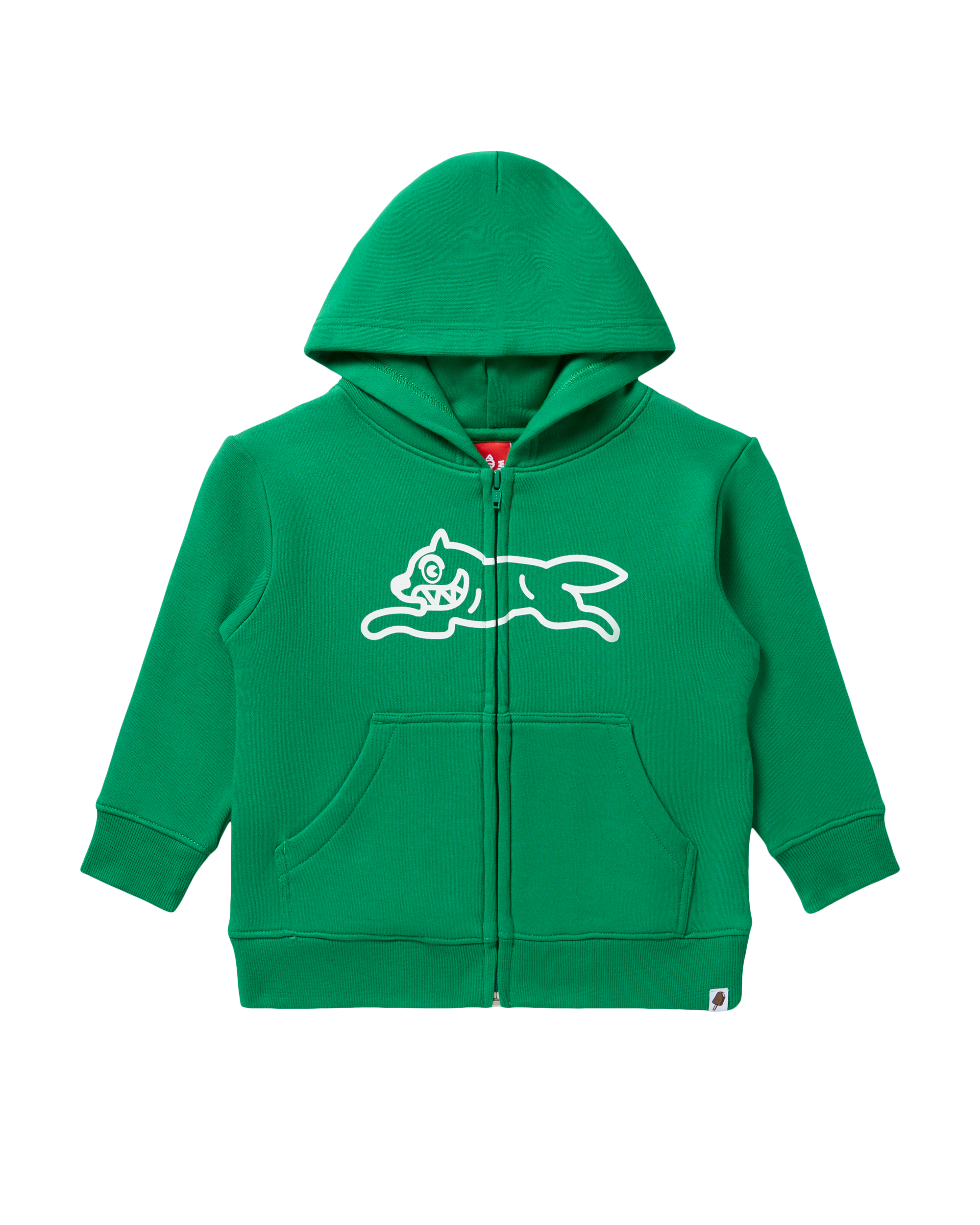The Marshmallow Sweatshirt features a zip front and the Running Dog logo printed on the front chest.