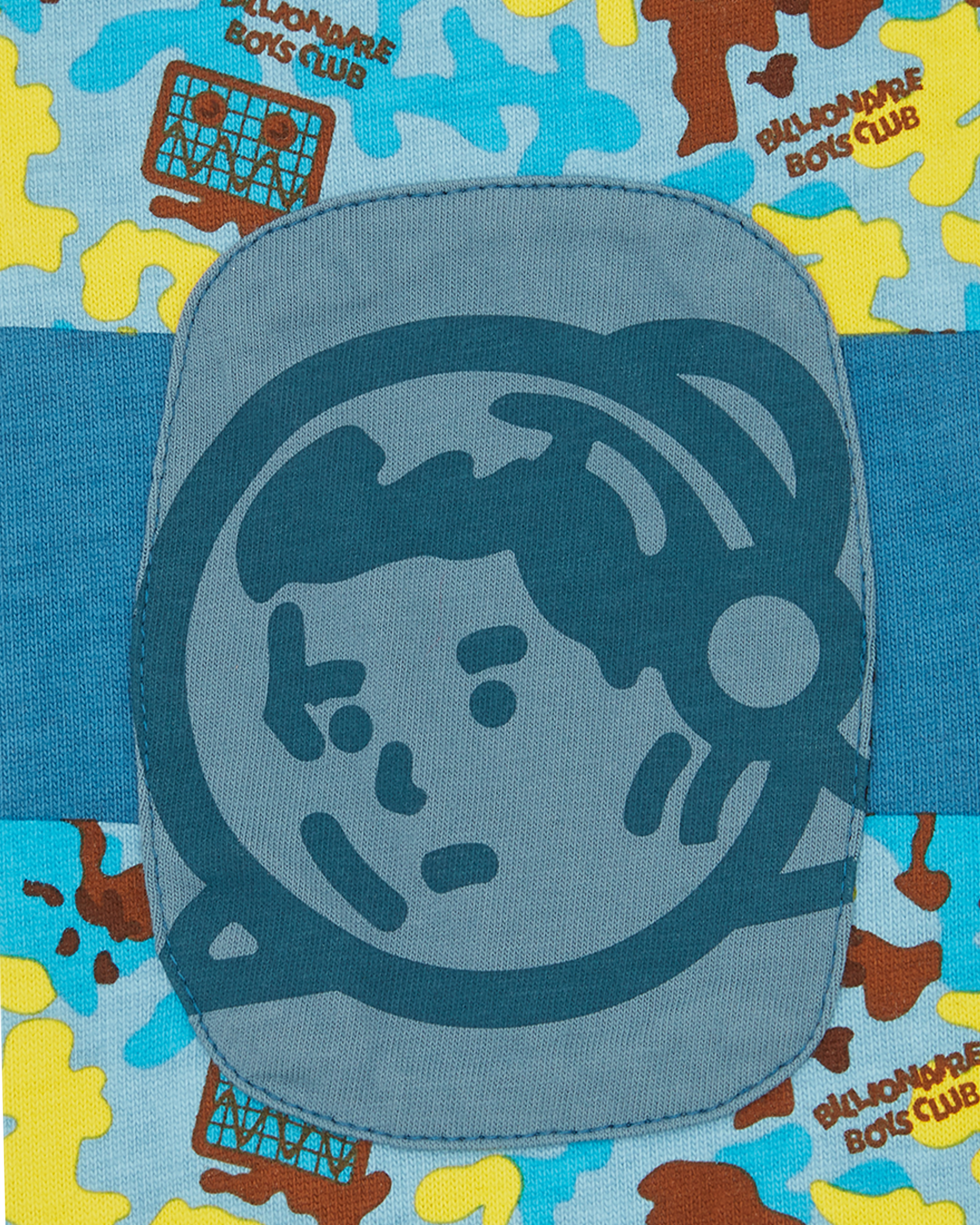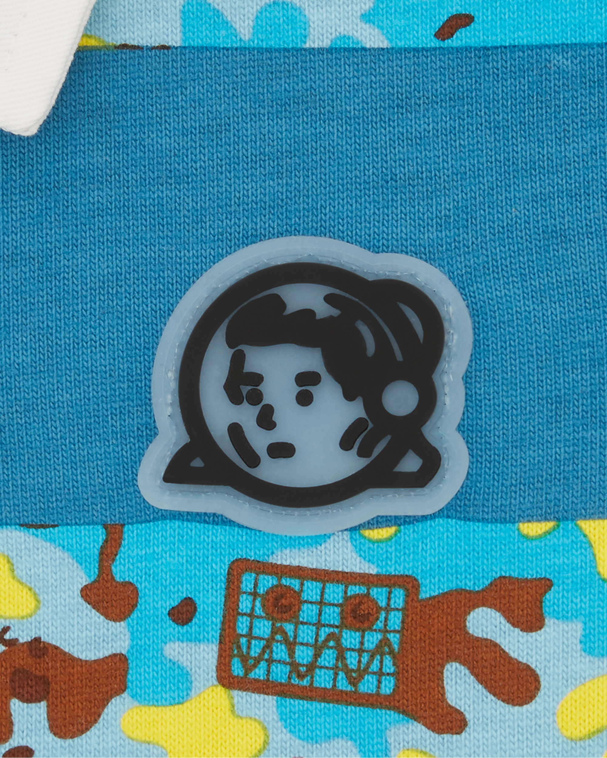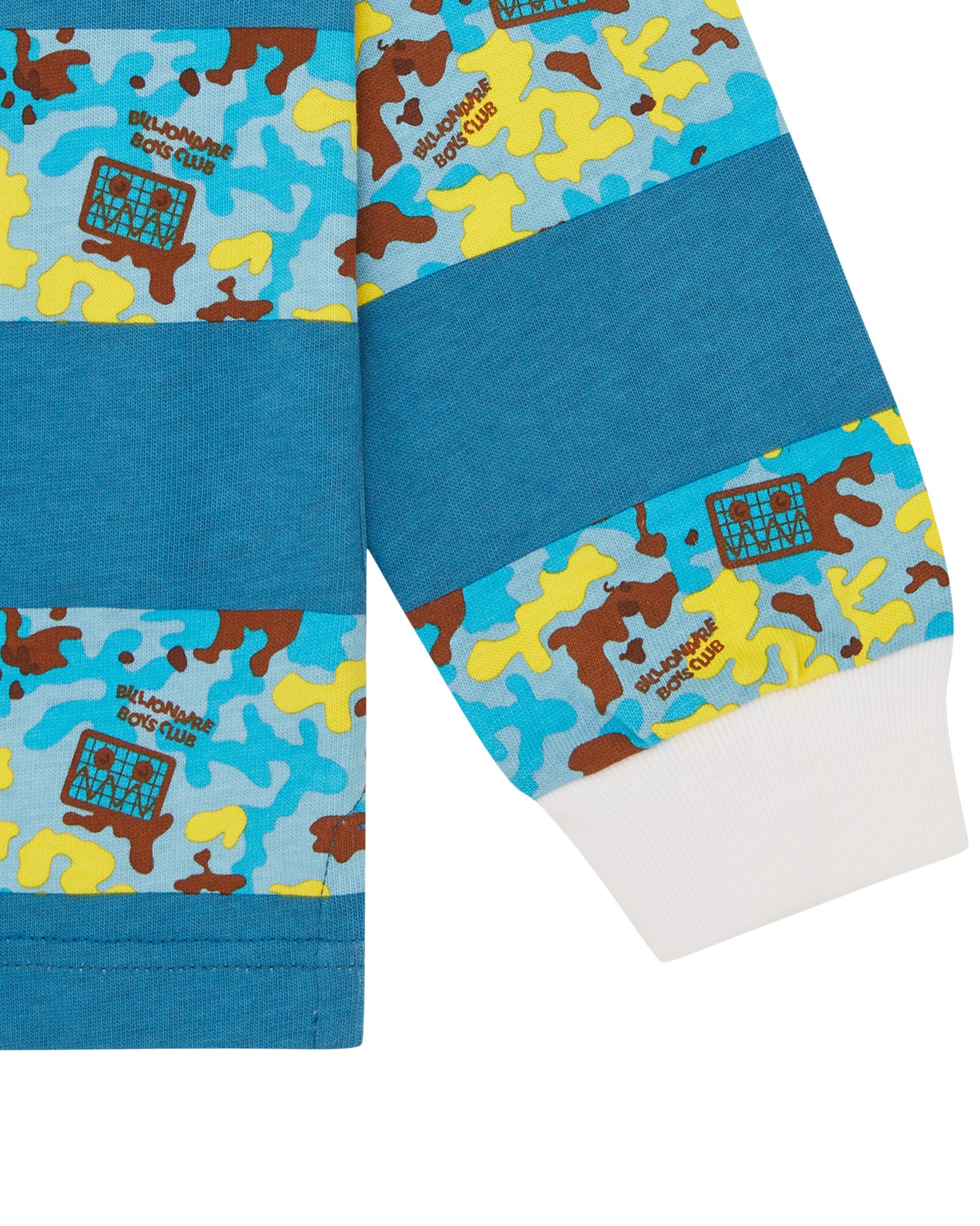 Kids Rugby Top featuring an all-over printed stripe pattern and astro patch on front.