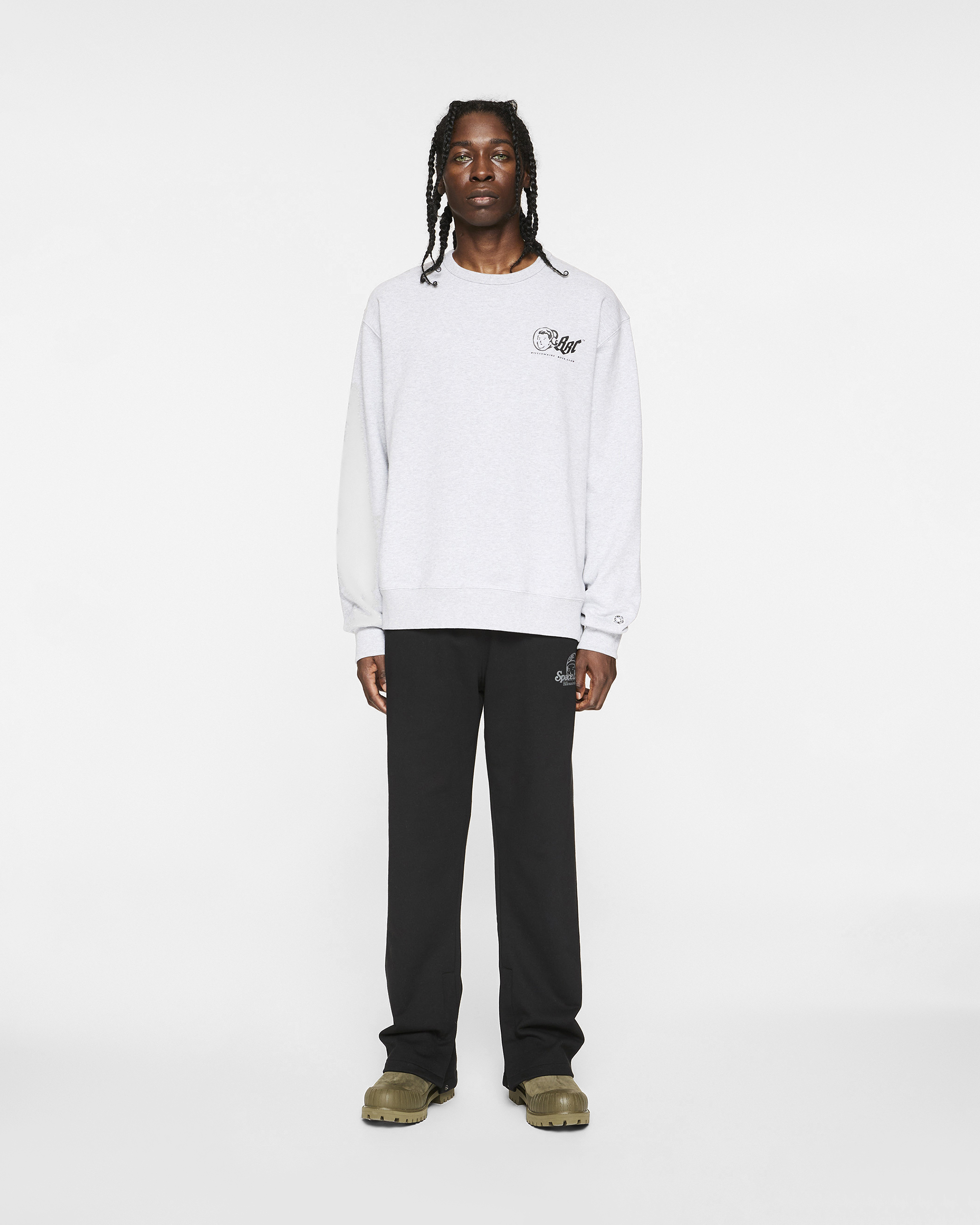 Crewneck sweatshirt with a screenprinted OG logo on the front left chest.
