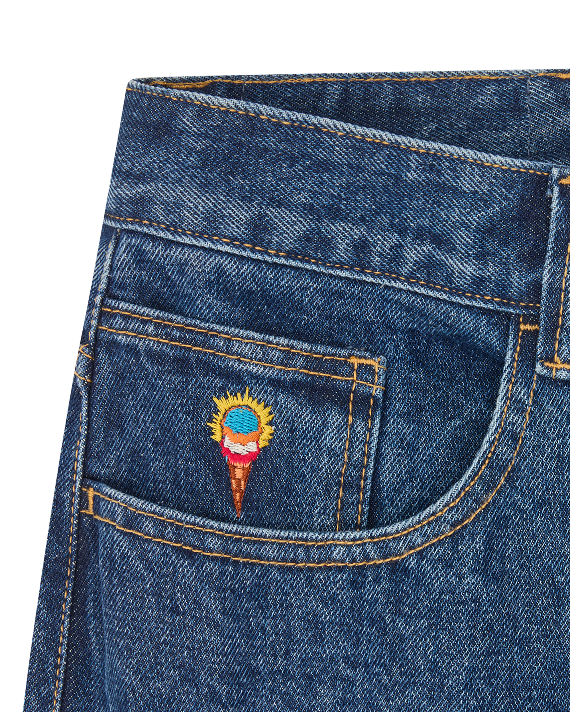 - Embroidered ‘IC’ lettering on back pockets