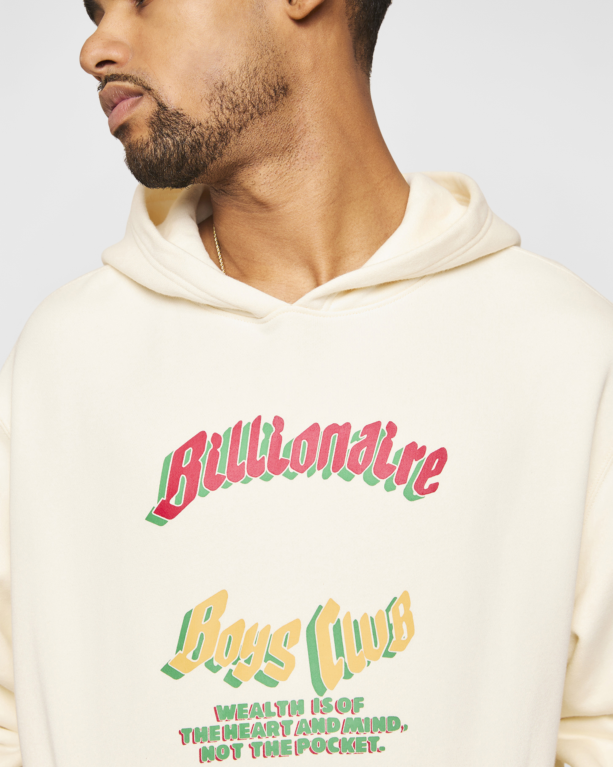 The Motion Hoodie displays a Billionaire Boys Club logo on both the front and sleeve. with a Robot design printed on the back.