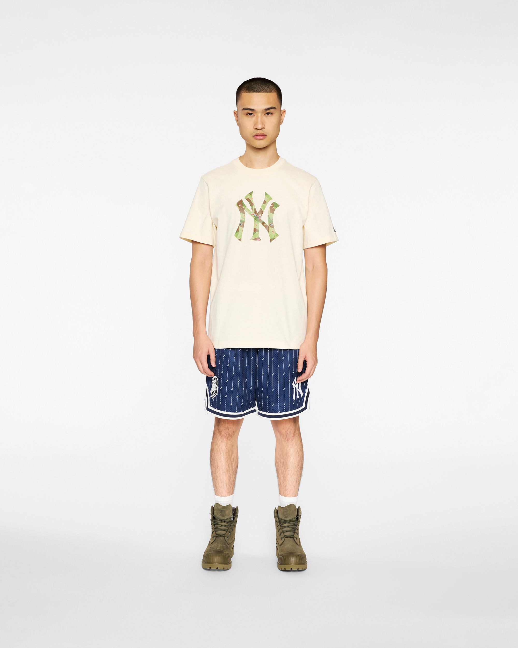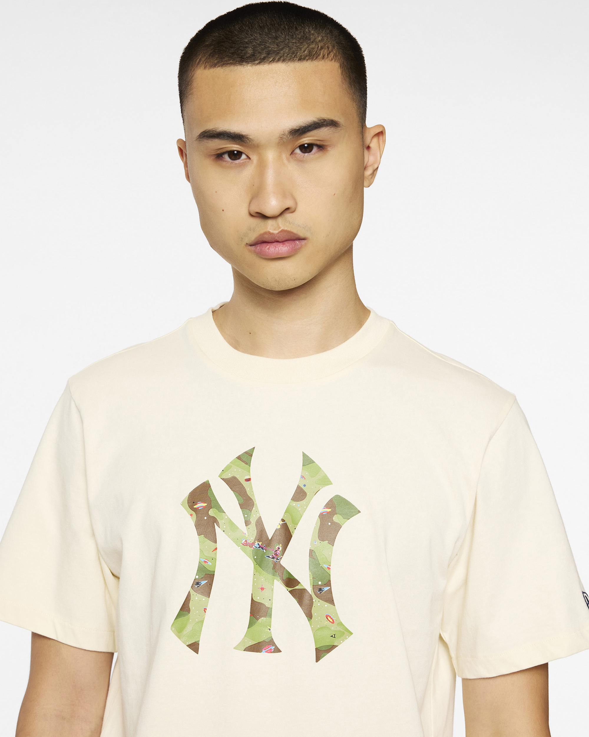 Tee featuring a graphic of the New York Yankees logo with space camo graphic fill.