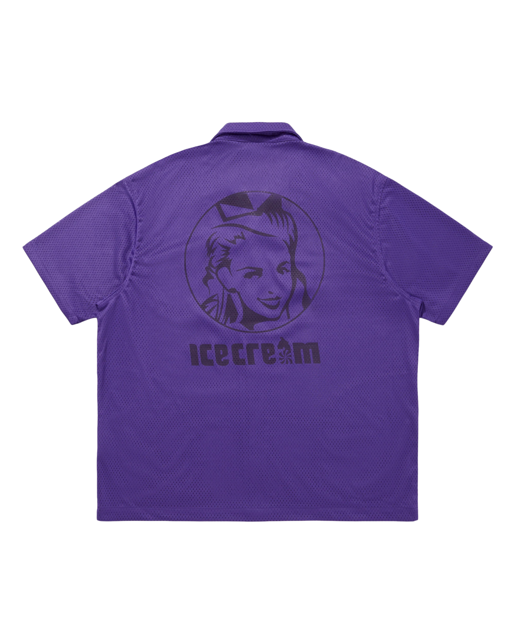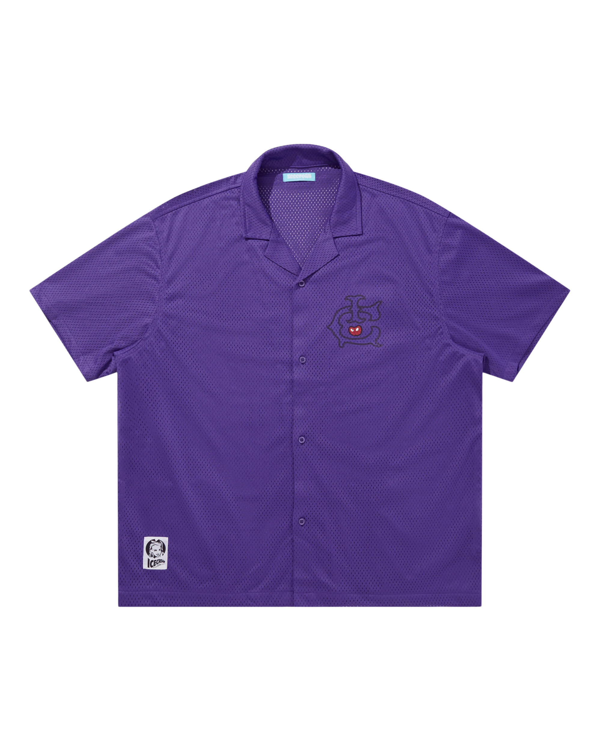 This Open Collar Mesh Shirt displays the Icecream logo on both the front left chest and the back.
