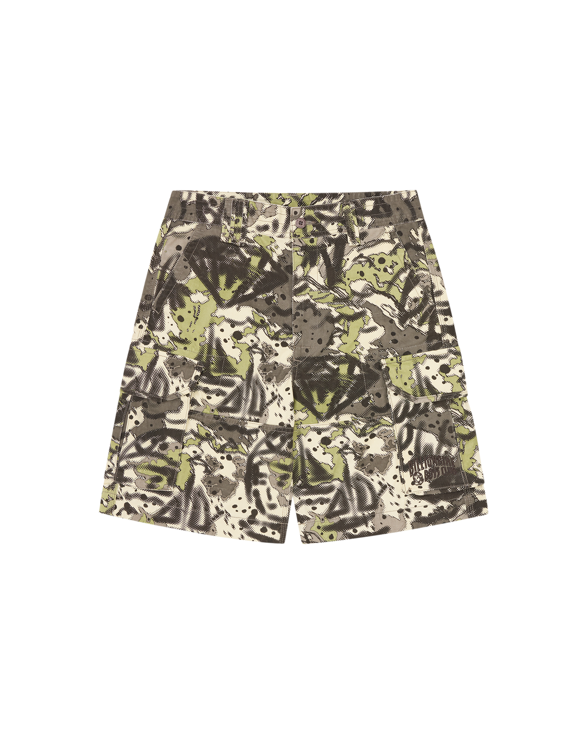 The Overlay Camo Cotton Cargo Shorts feature an all-over camo print and the embroidered Billionaire Boys Club Arch logo on the pocket flap.