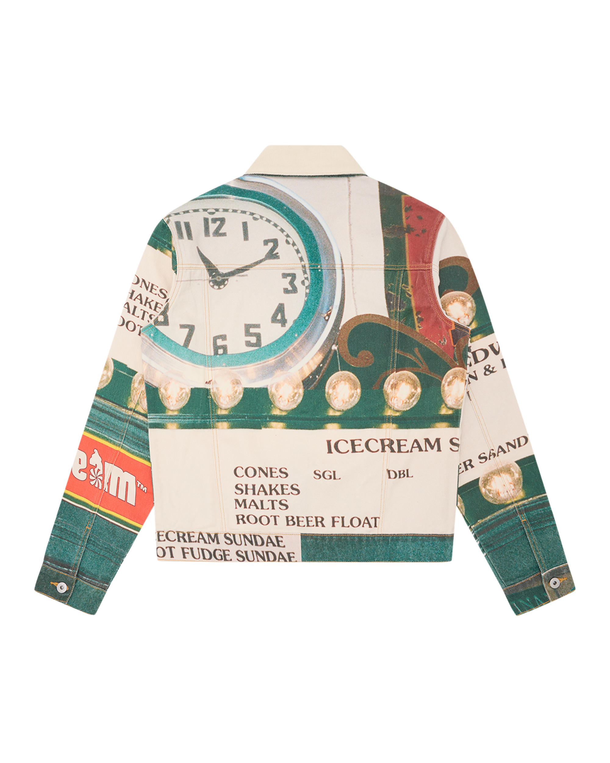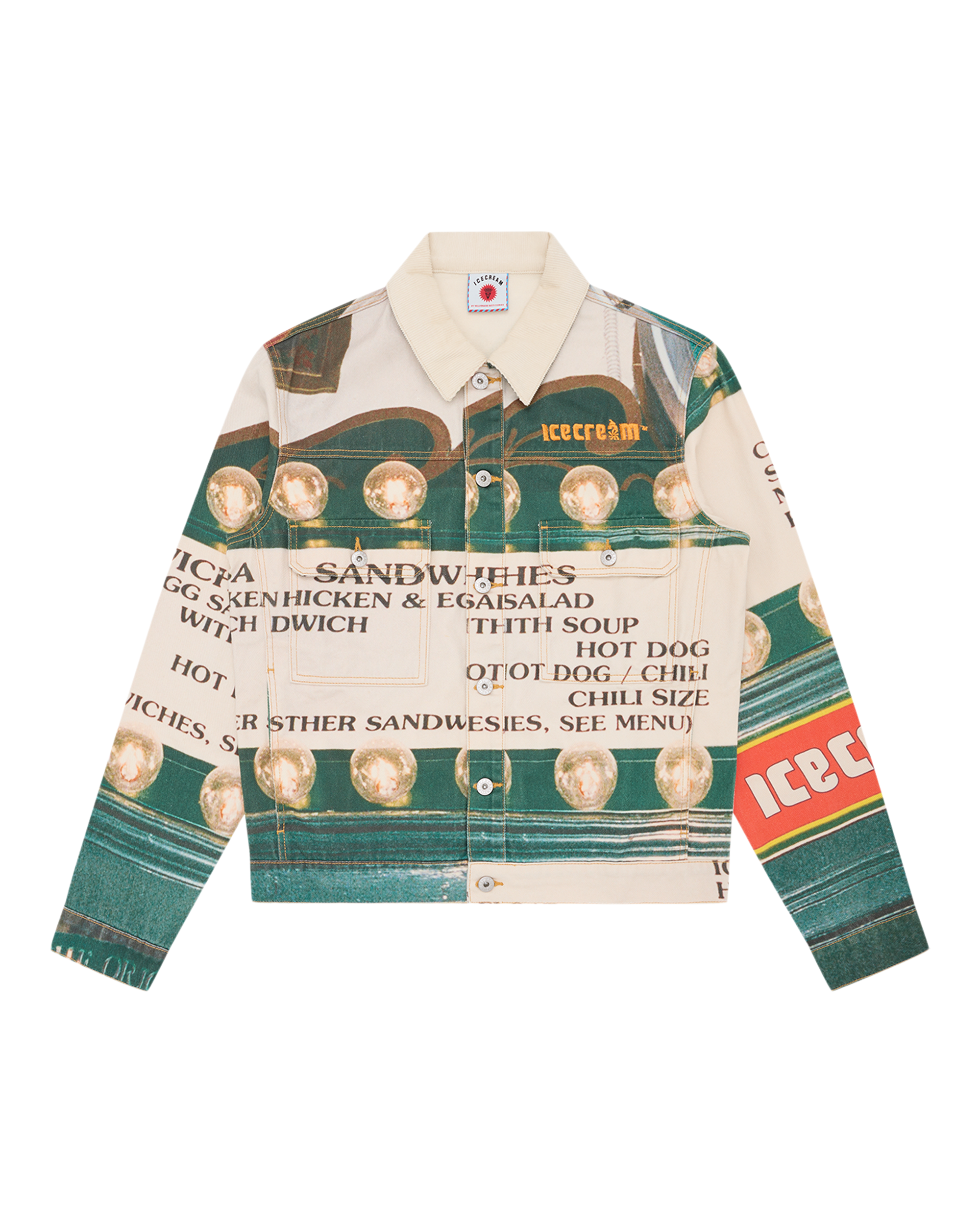 This Parlor Denim Trucker Jacket presents an all-over seasonal ICECREAM graphic. Coordinated pants available.