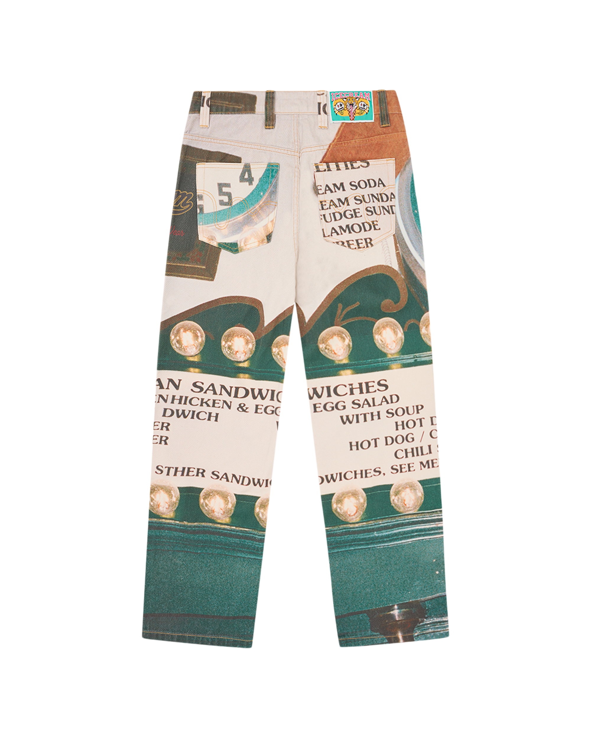 Parlor Double Scoop Denim Pants. feature an all-over seasonal graphic. Zip-fastened fly. Loose fit.