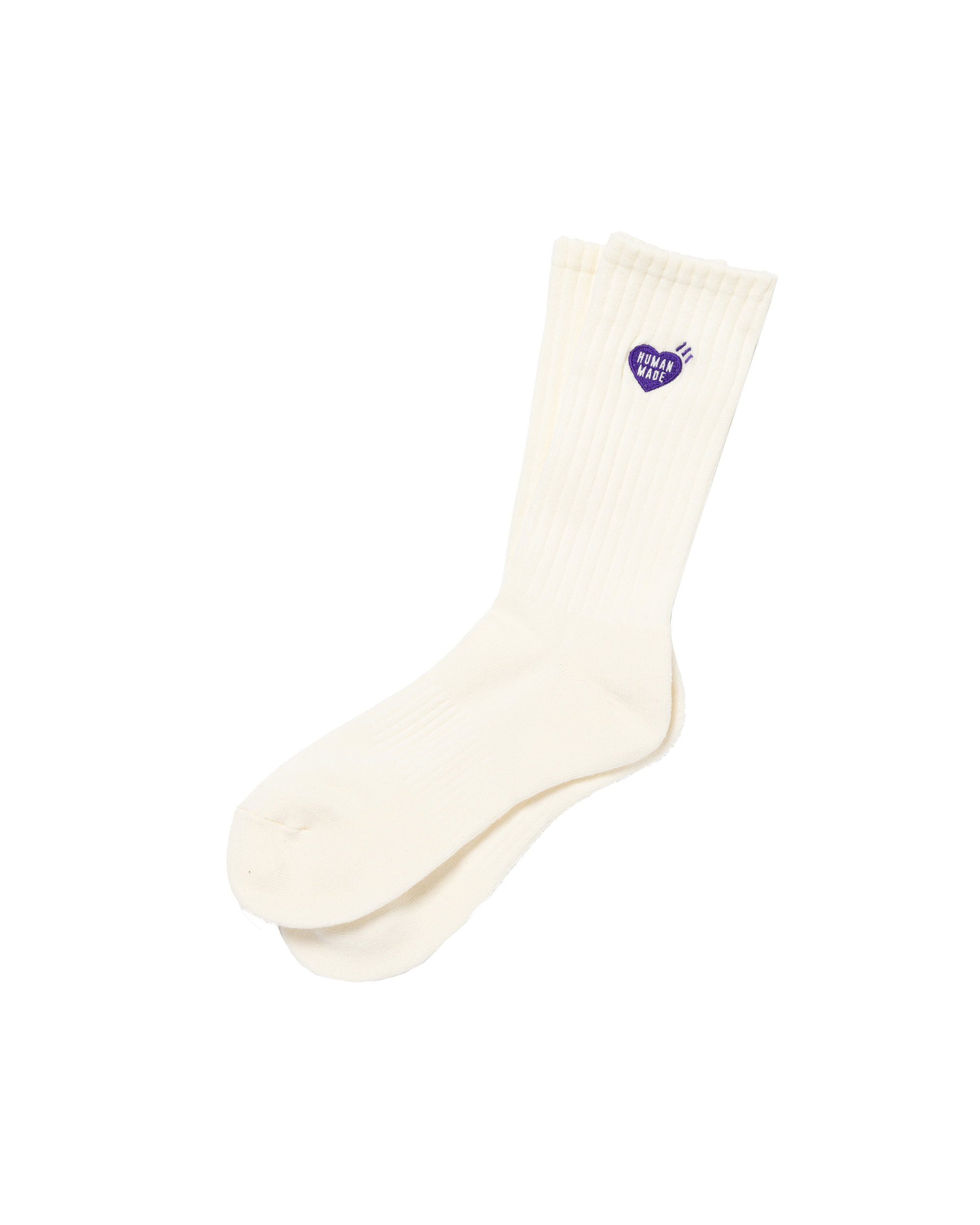 Simple pile knit socks features a single embroidered heart logo.