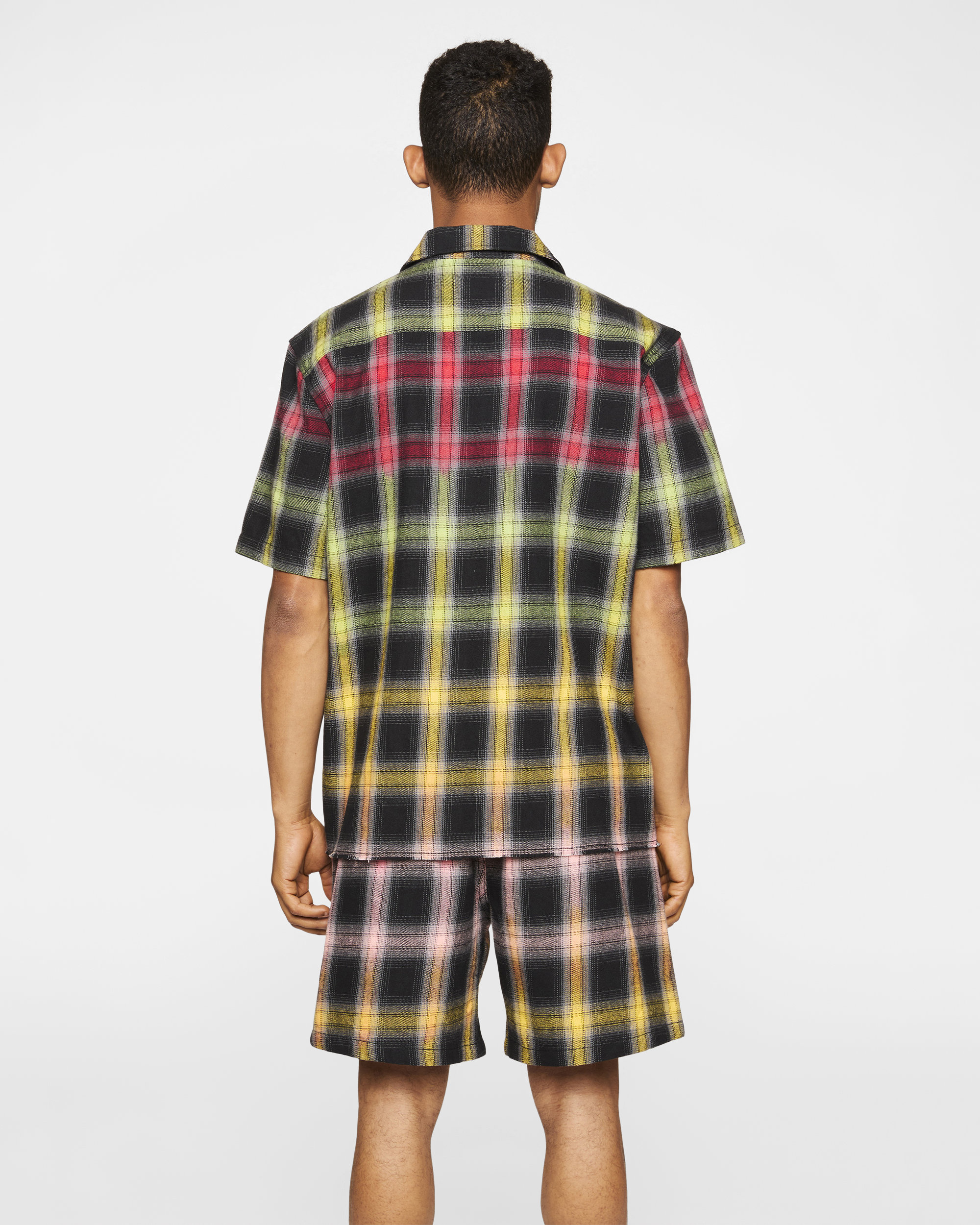 - Plaid design throughout