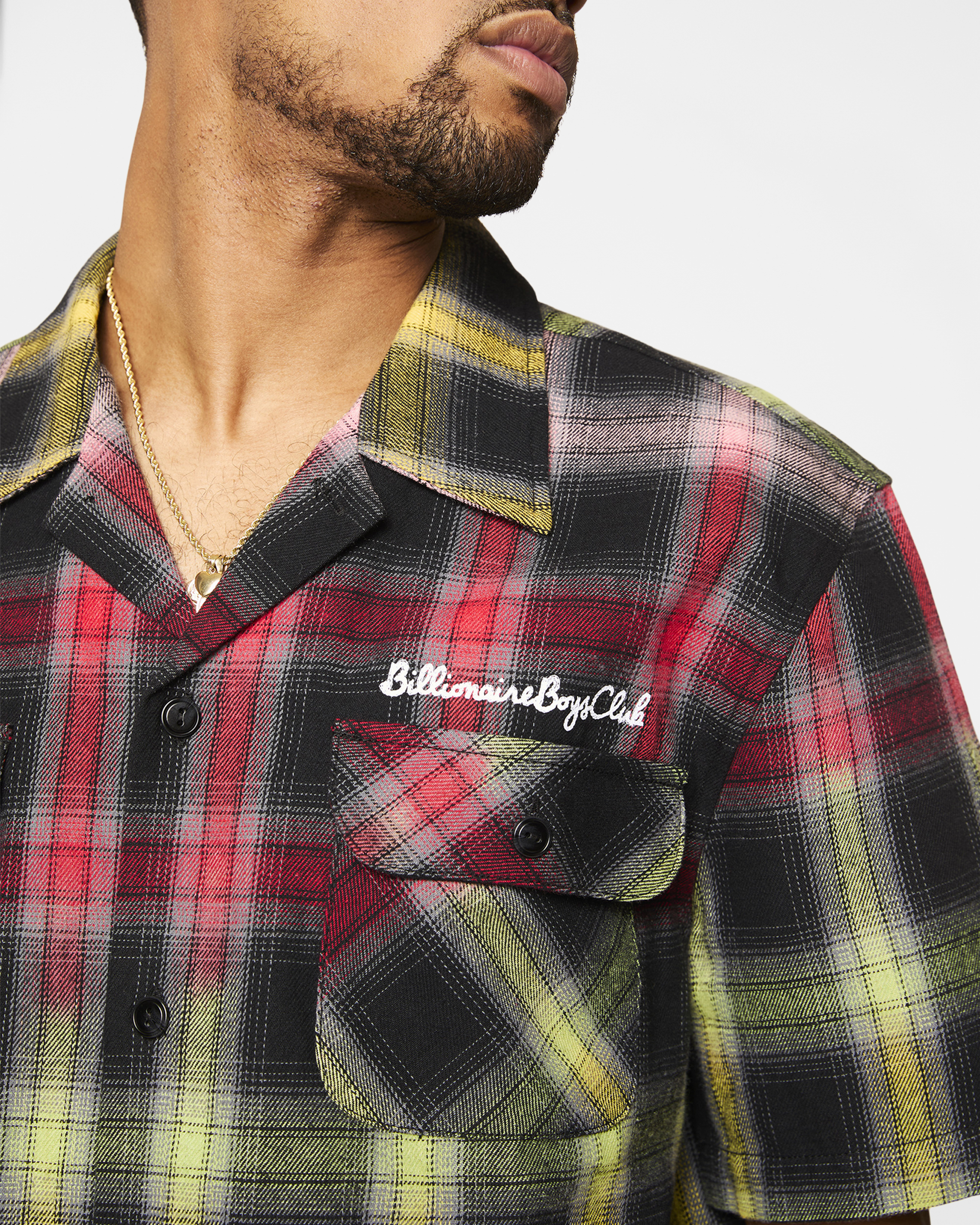 The Rave Shirt features a plaid design and Billionaire Boys Club embroidery above the front pocket.