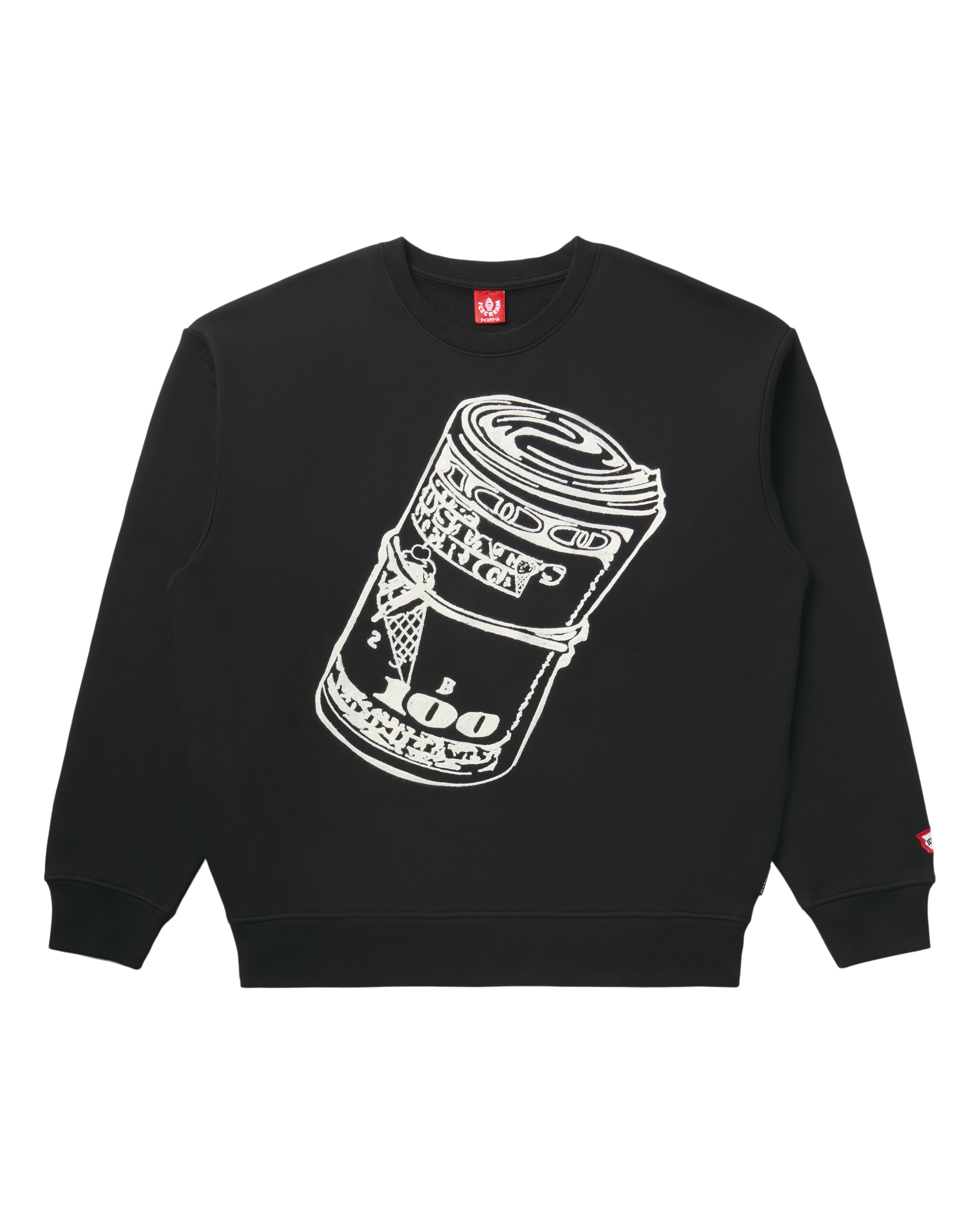 The Roll Sweatshirt features a graphic of a money roll printed on the front.