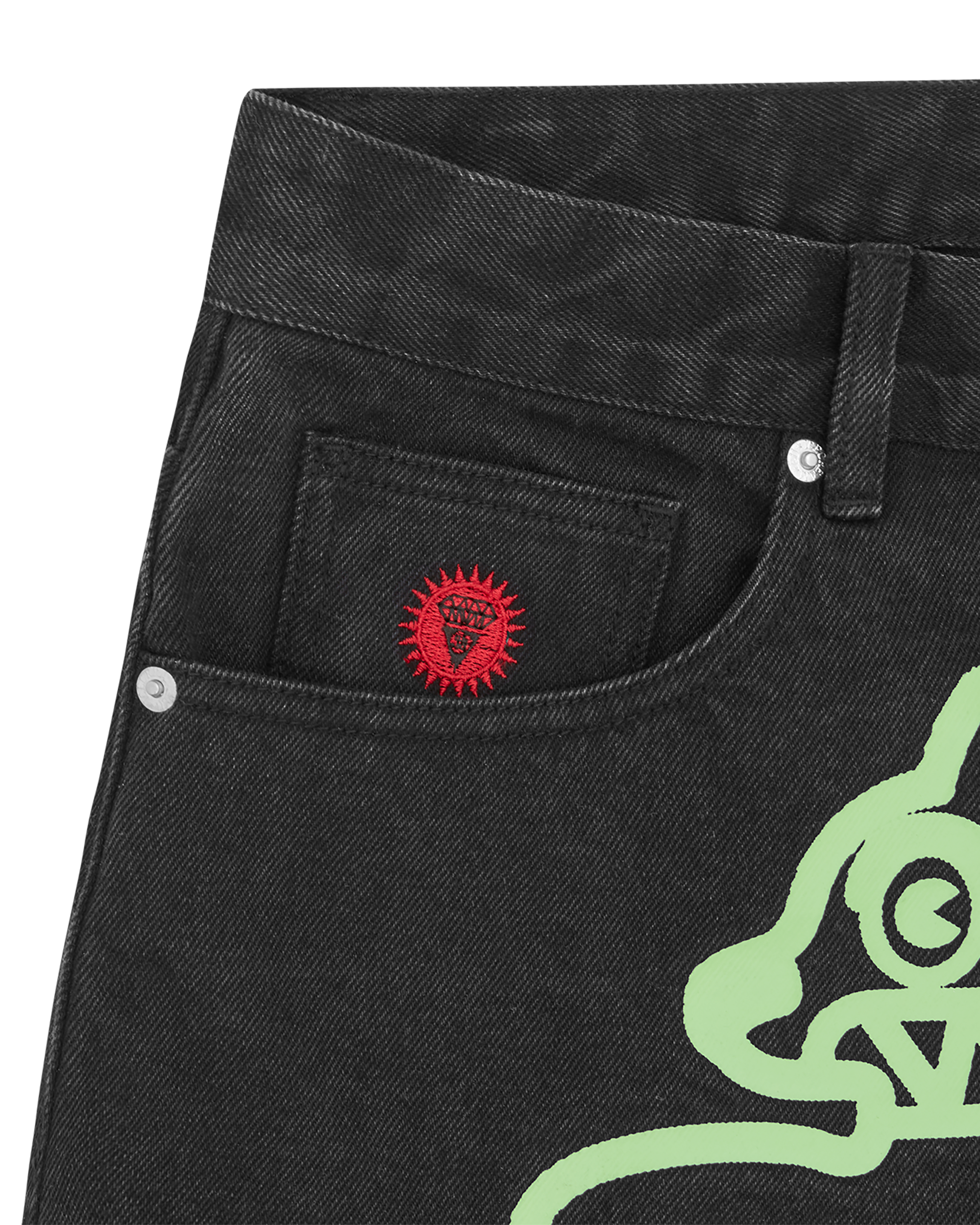 These Running Dog Denim Shorts feature the iconic screen-printed Running Dog graphic on the front.