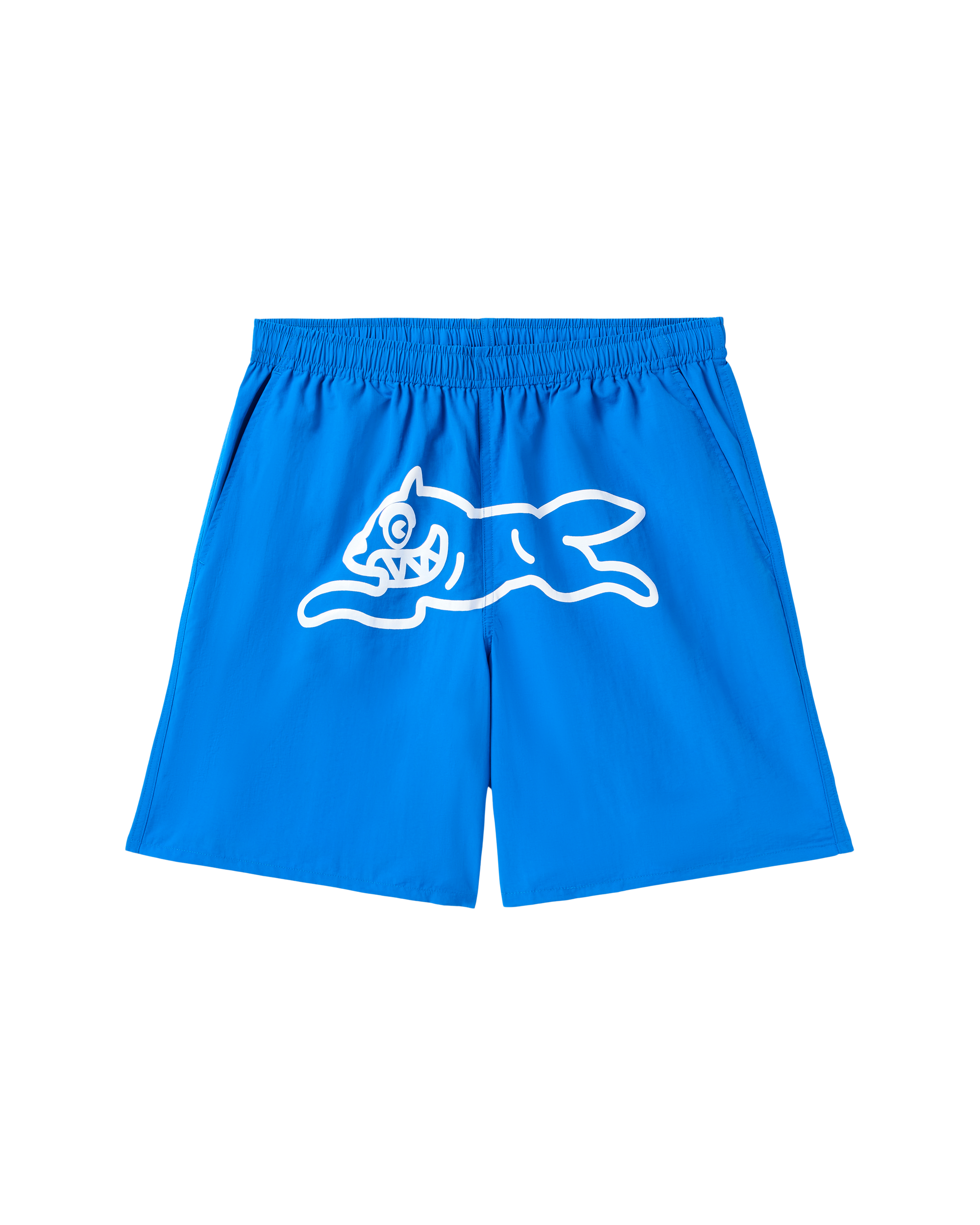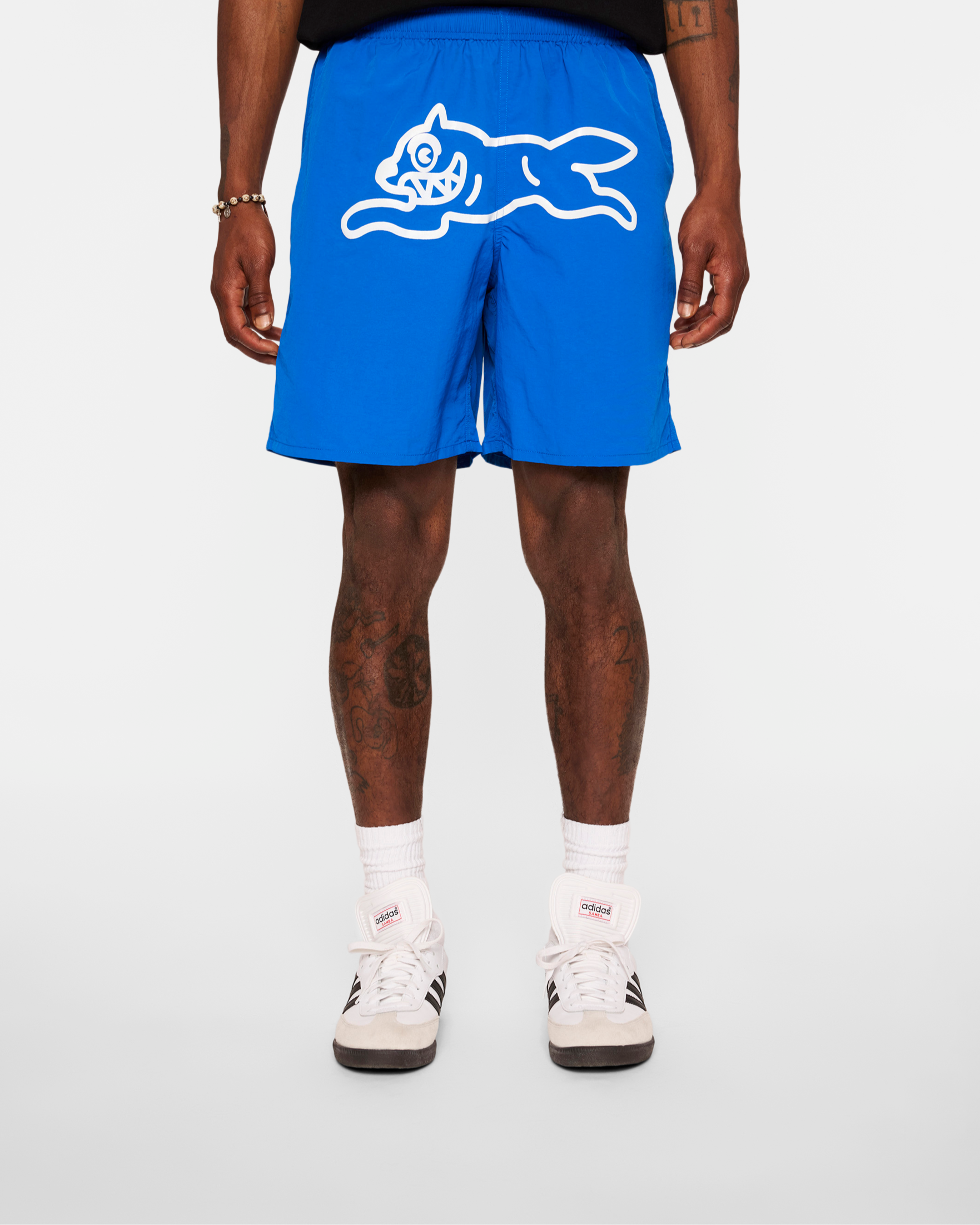 Nylon shorts featuring a Running Dog graphic at front.