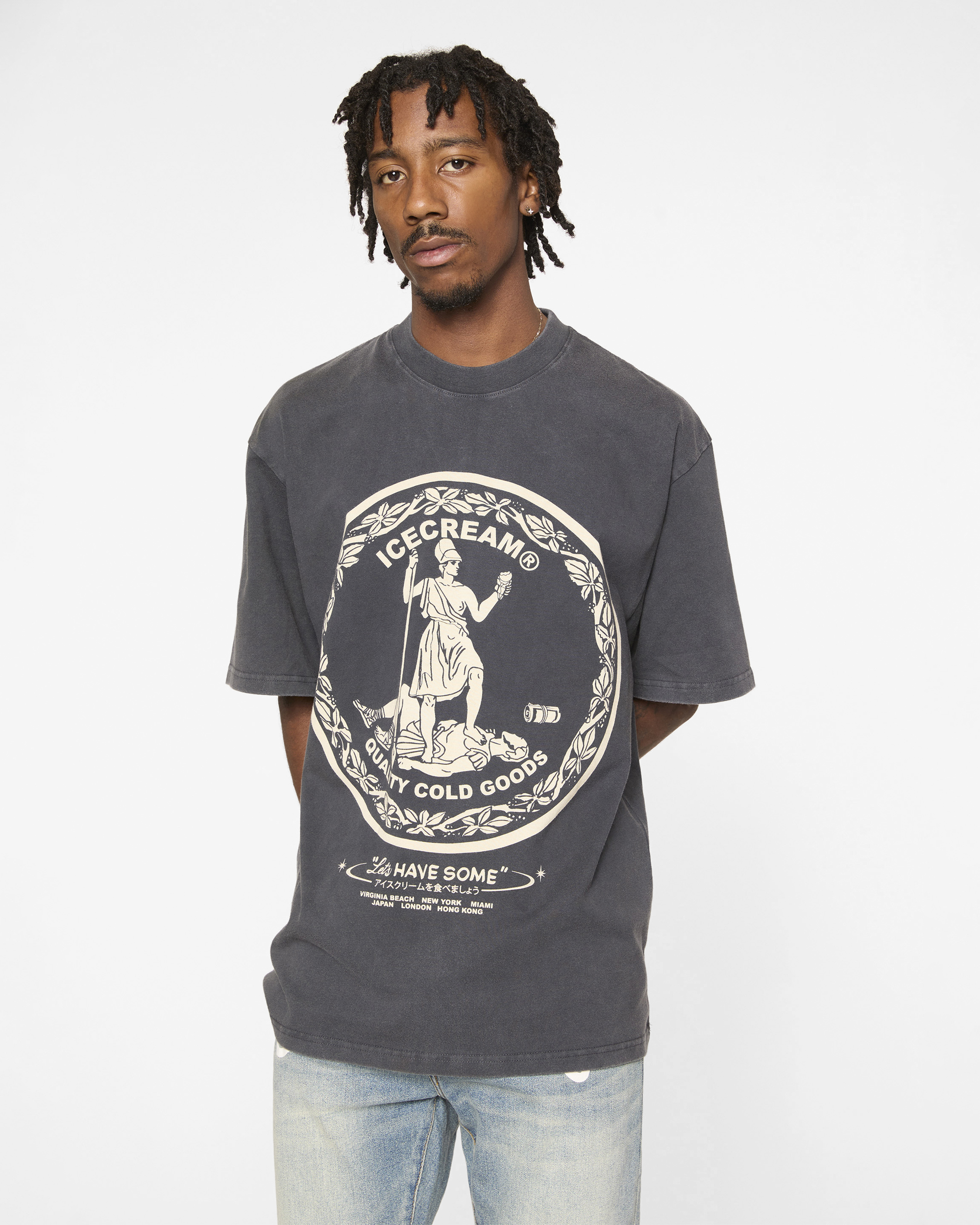 The Seal SS Knit features oversized front and back prints inspired by vintage emblems and classic Icecream iconography.