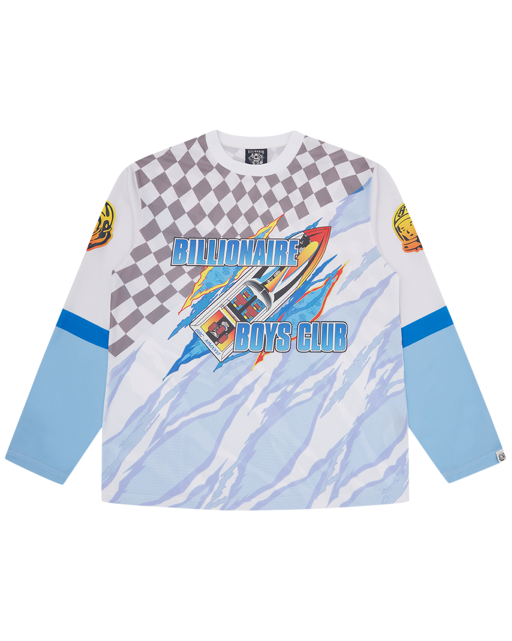 This Speed Ripper LS Sport Top features an all-over Billionaire Boys Club speed digital print. The top is finished with a branded graphic on the front and gradient-effect Astro helmets printed on both the sleeves.