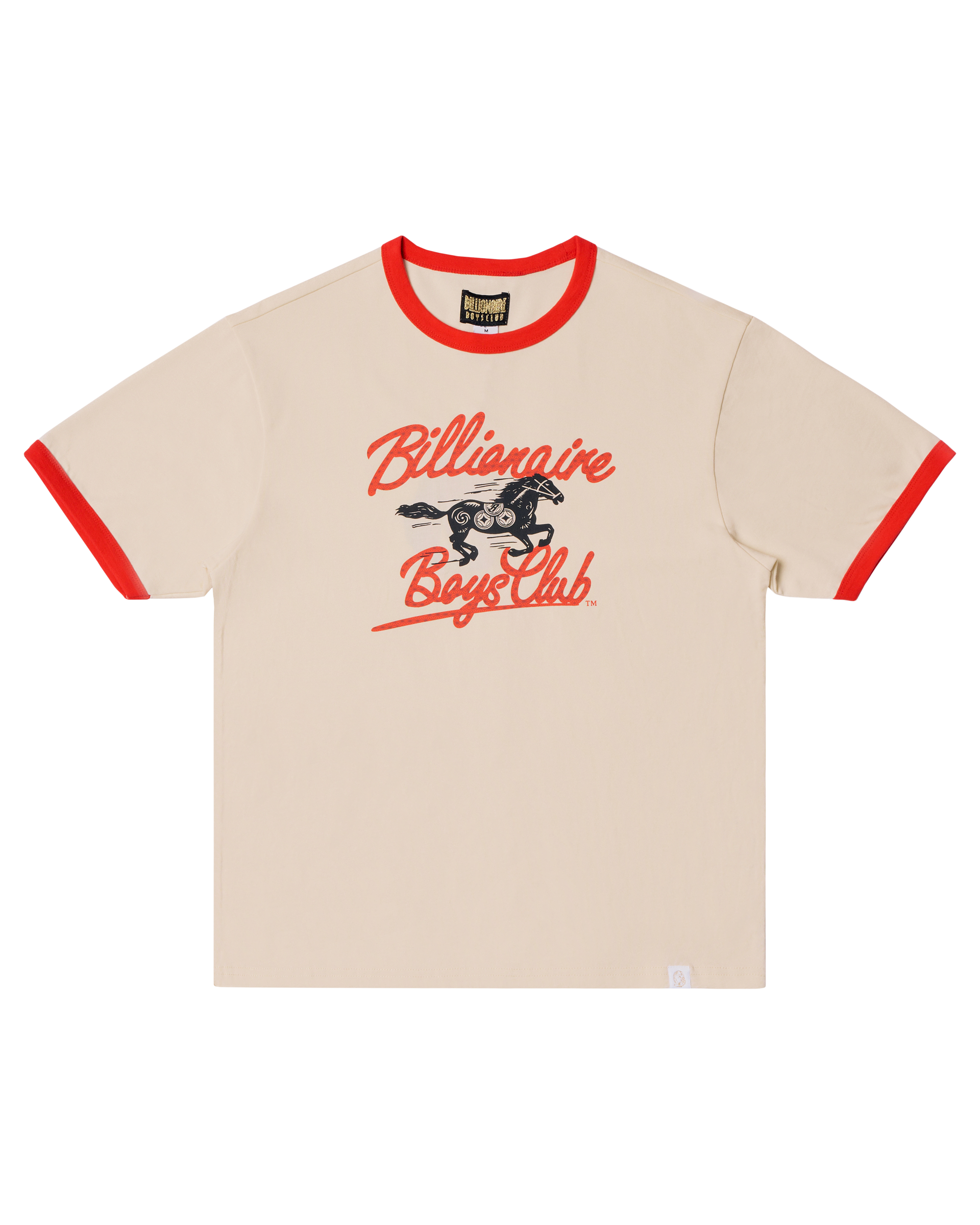 The Contrast Pony T-Shirt is a graphic-driven piece featuring red details on the collar and sleeves. This top has a graphic print of a horse on the chest to commemorate the Year of the Horse.