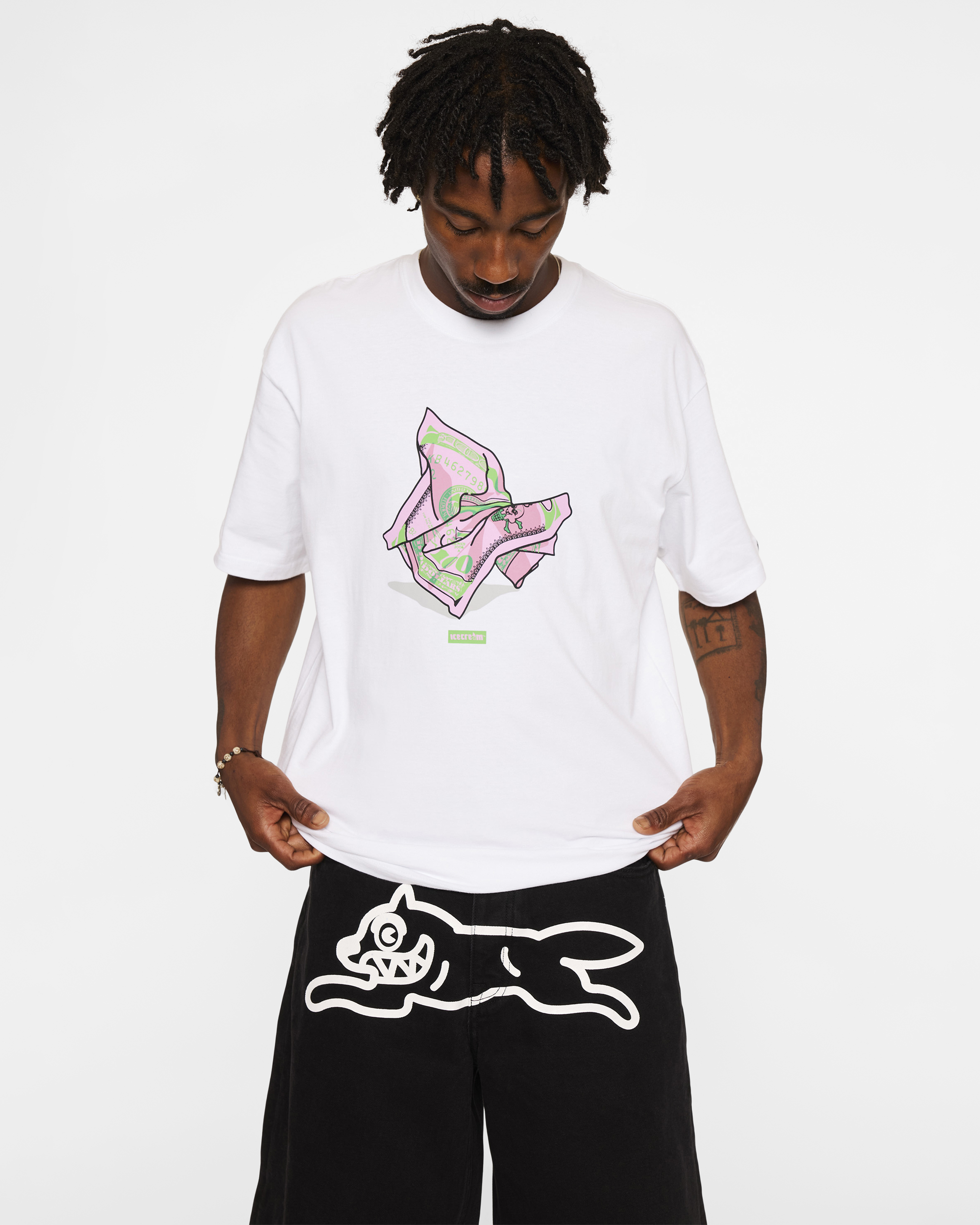 This Tee presents a seasonal design centered around a dollar bill graphic.
