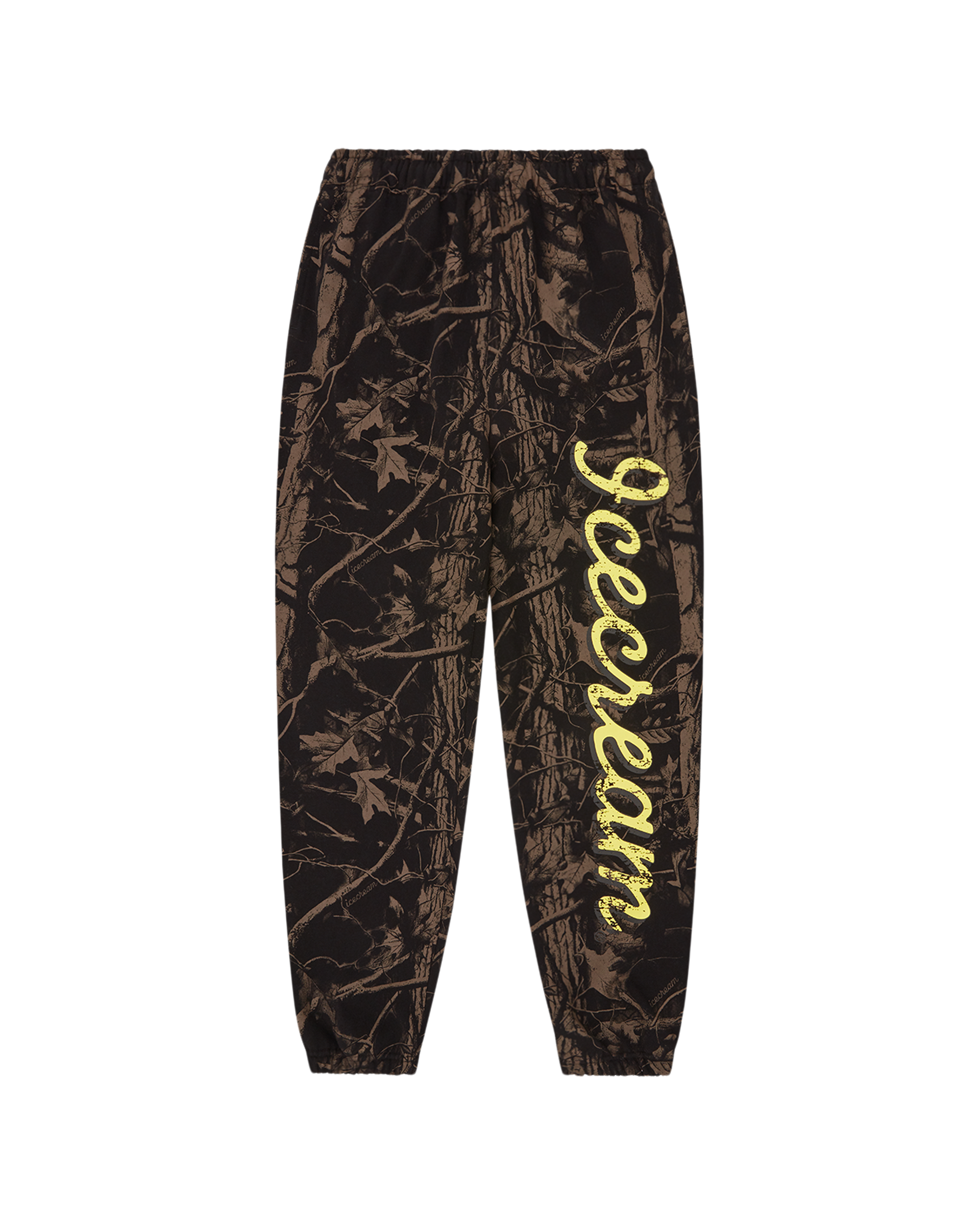 The Tree Camo Sweatpants feature an all-over seasonal camo print with a soft hand feel. finished with ICECREAM seasonal logo along the leg.