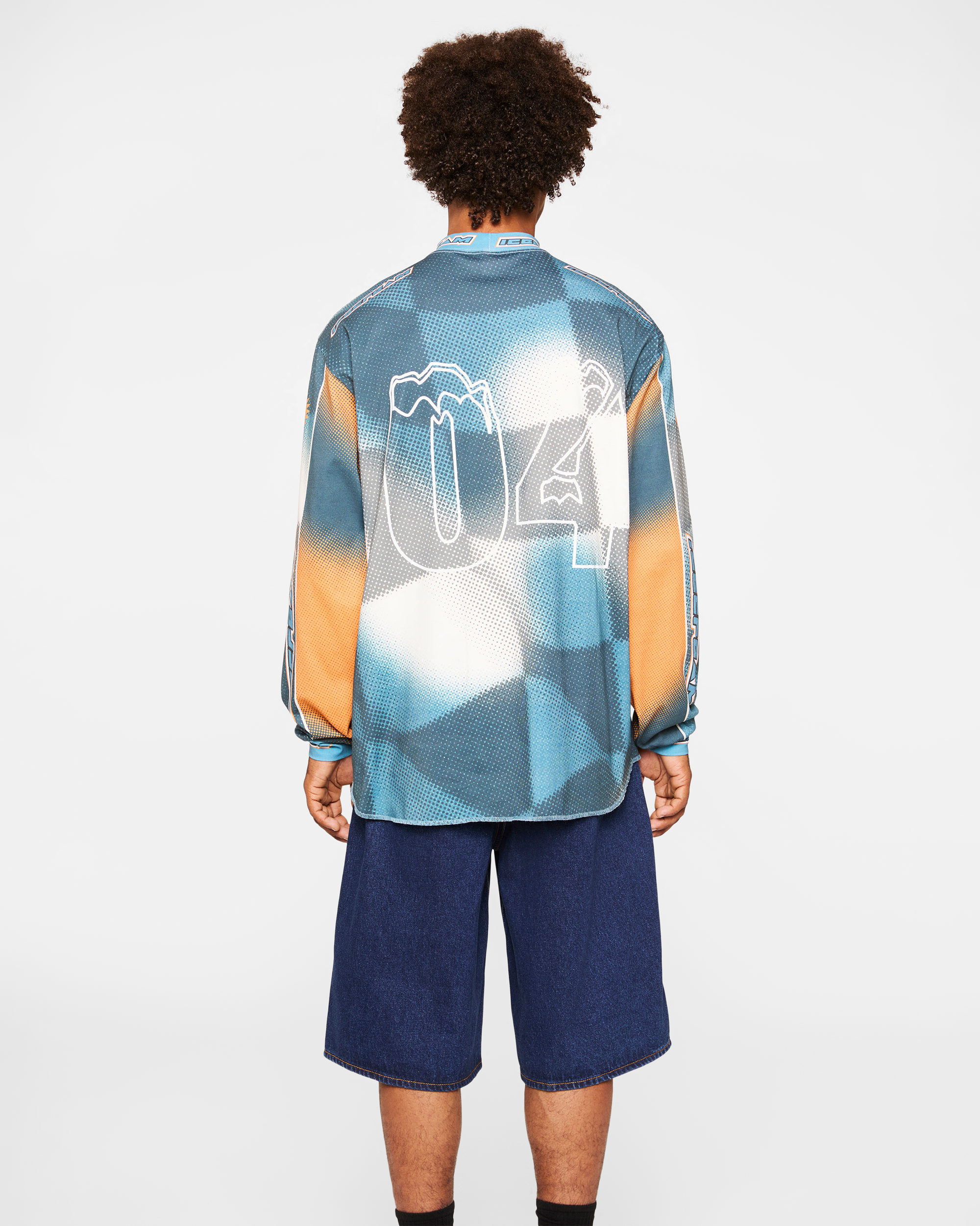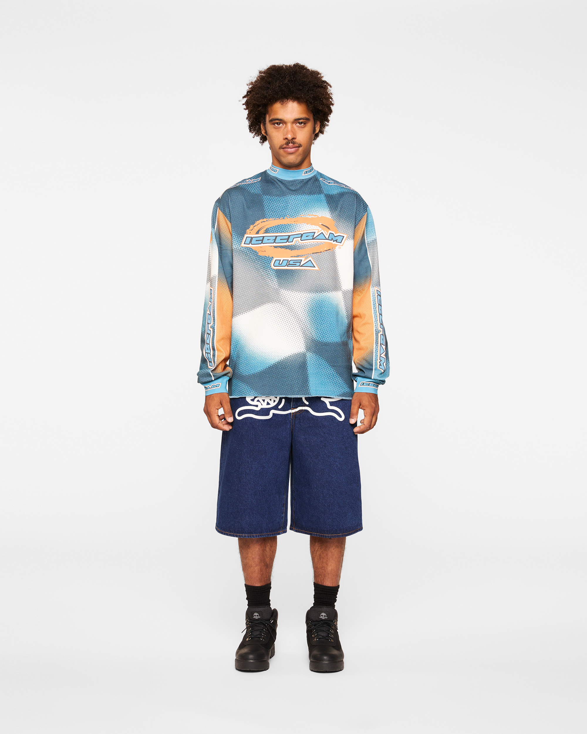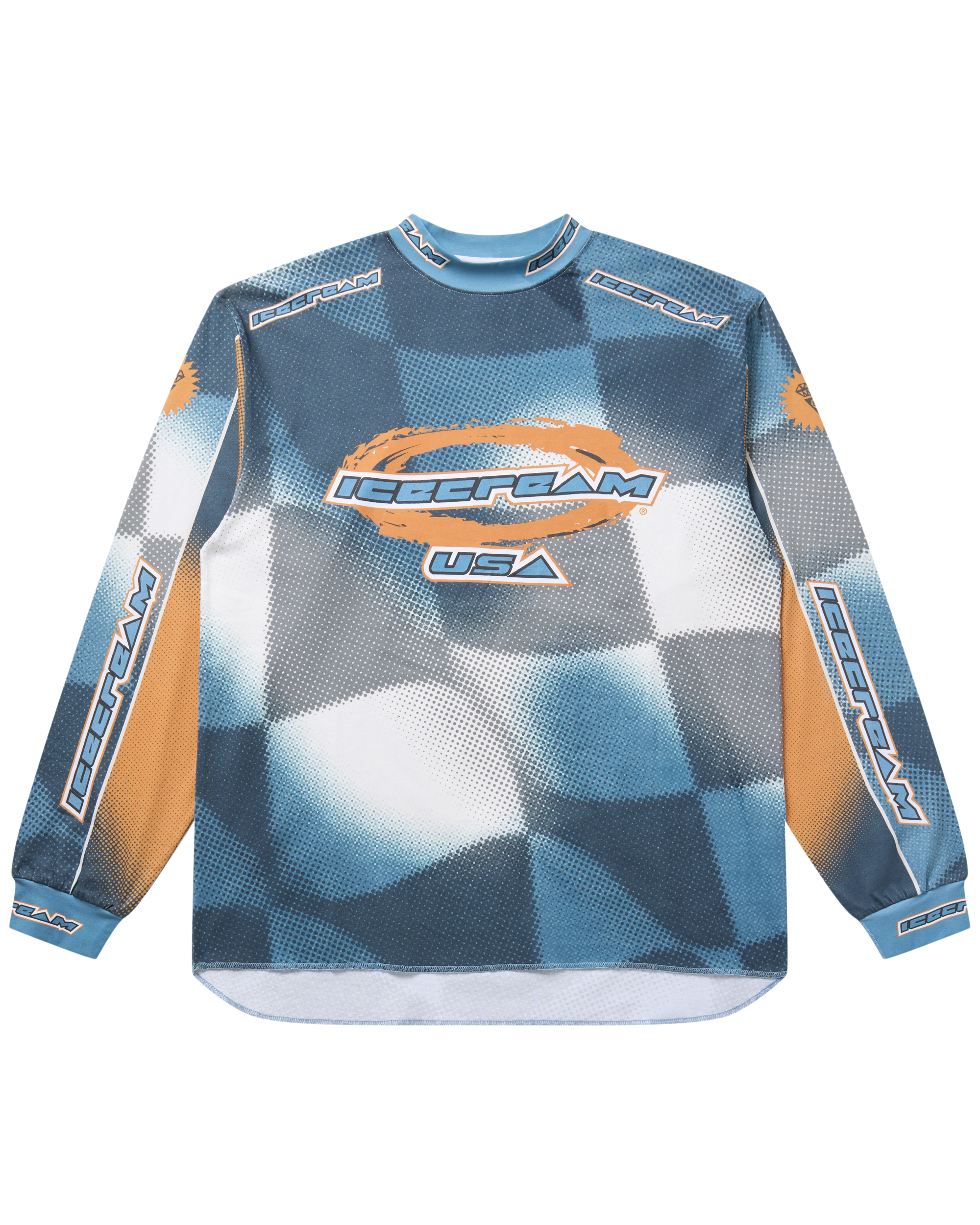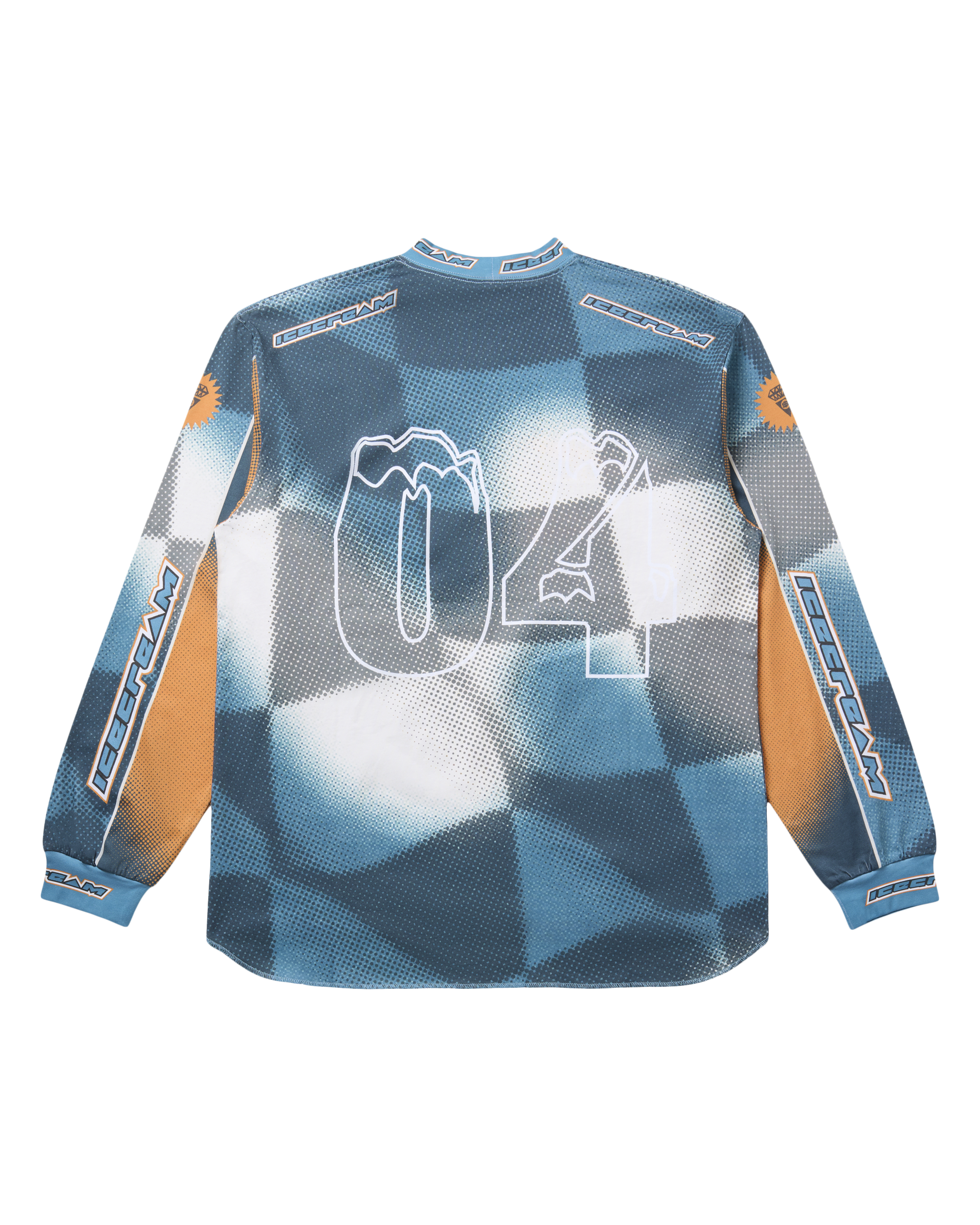 The USA Jersey Long-sleeve Tee has the ICECREAM logo displayed on the front and sleeves. with the number 04 printed on the back.