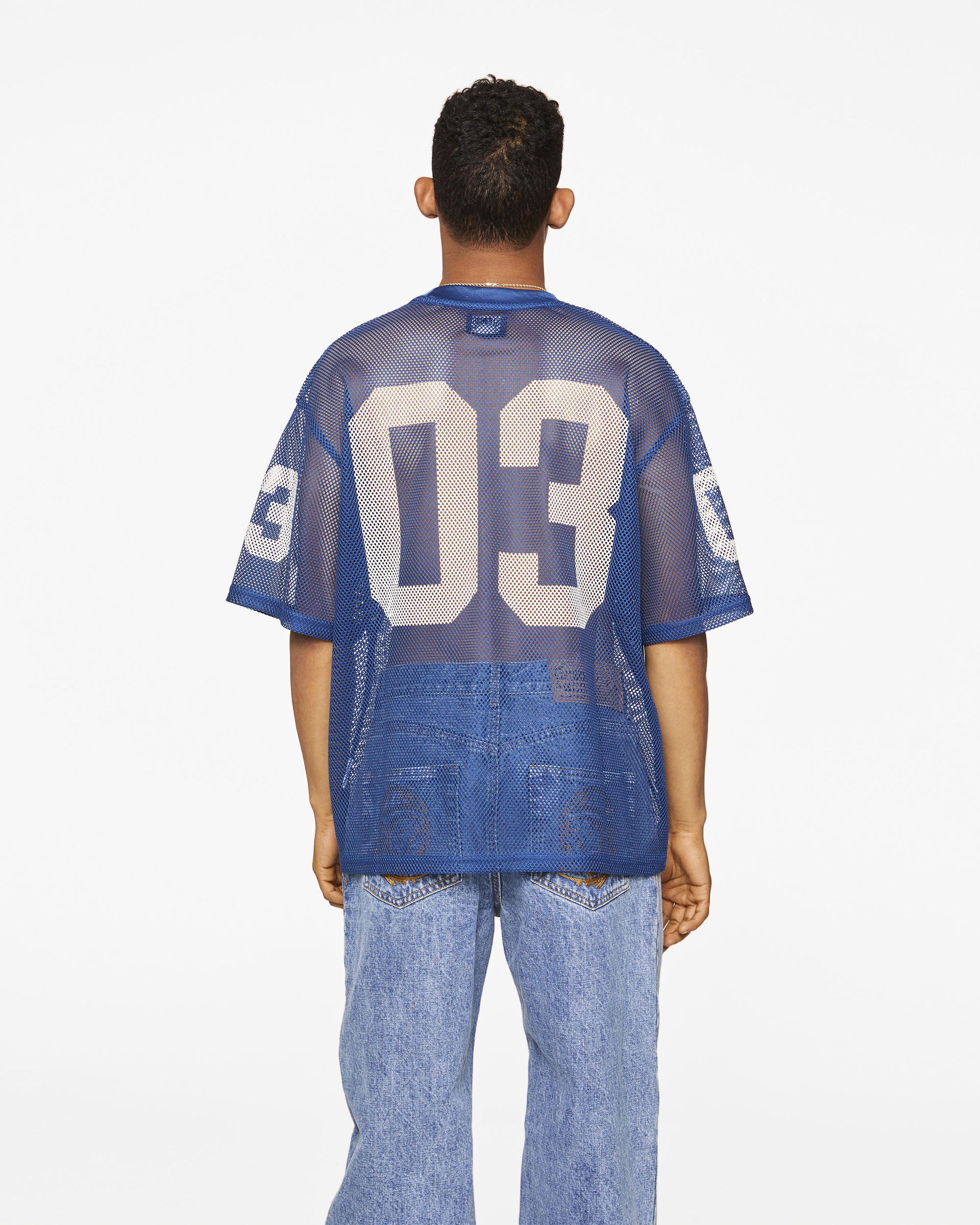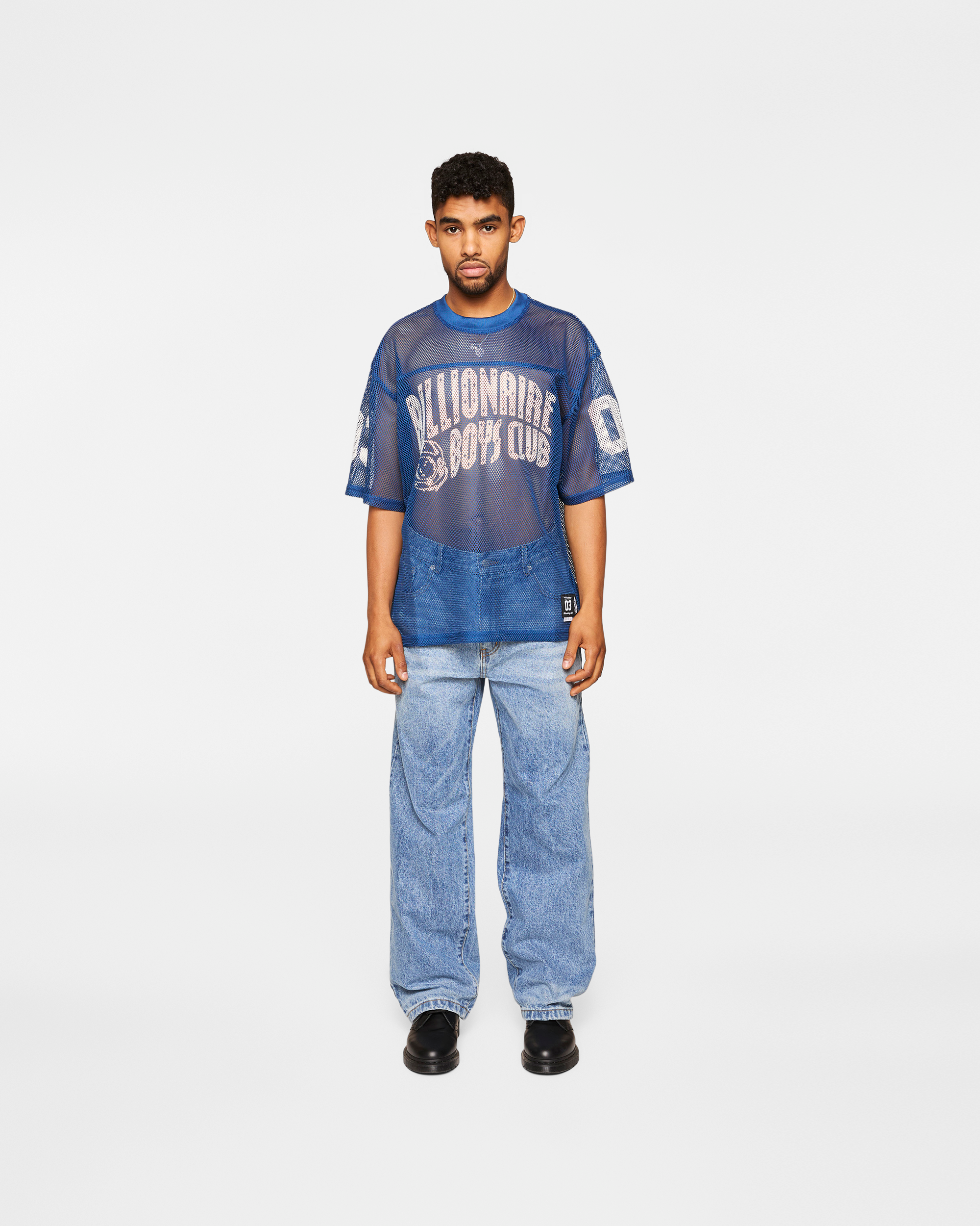 The Varsity Tee is a mesh tee that features the Curve logo on the front chest. with the number 03 printed on both the sleeves and back.