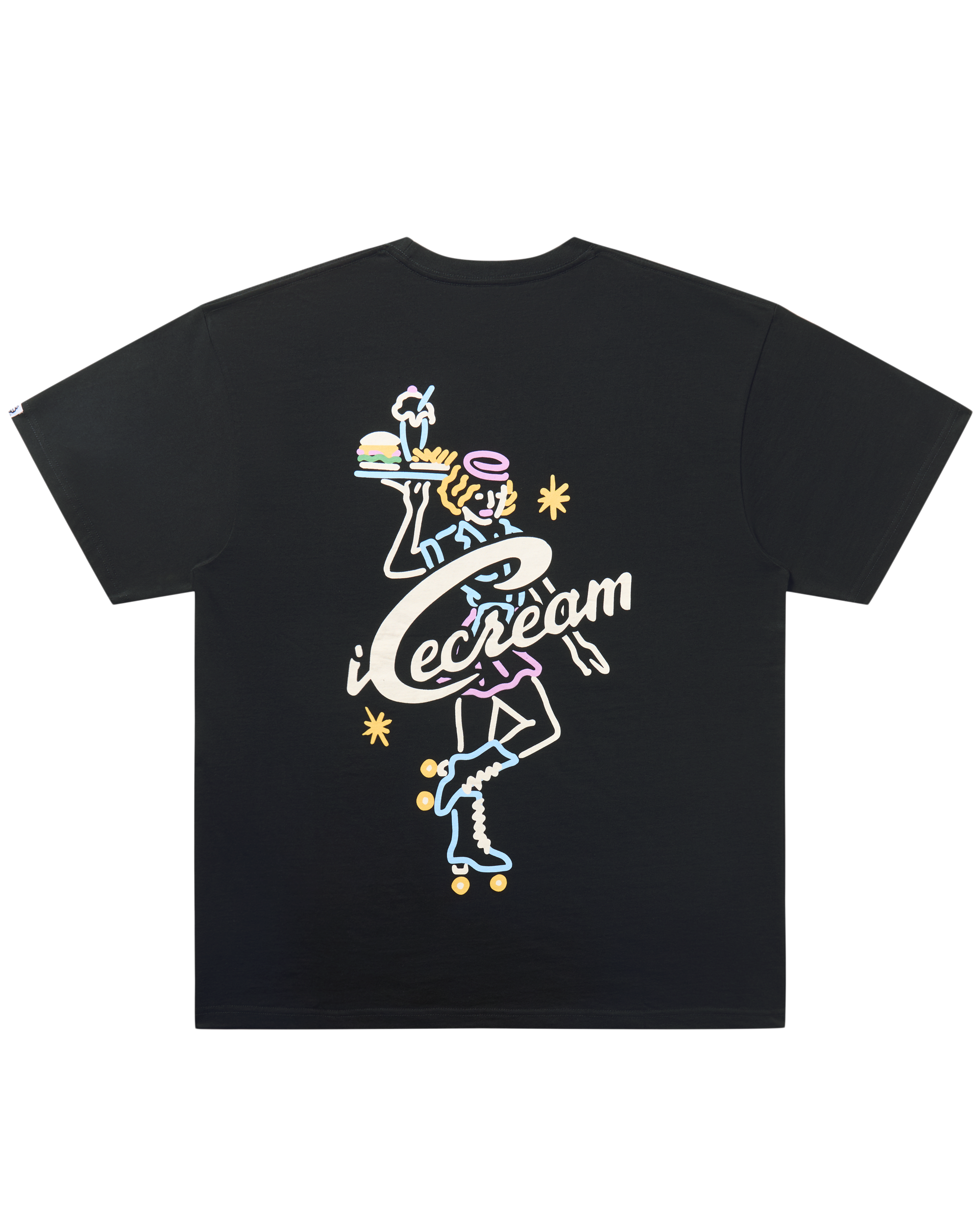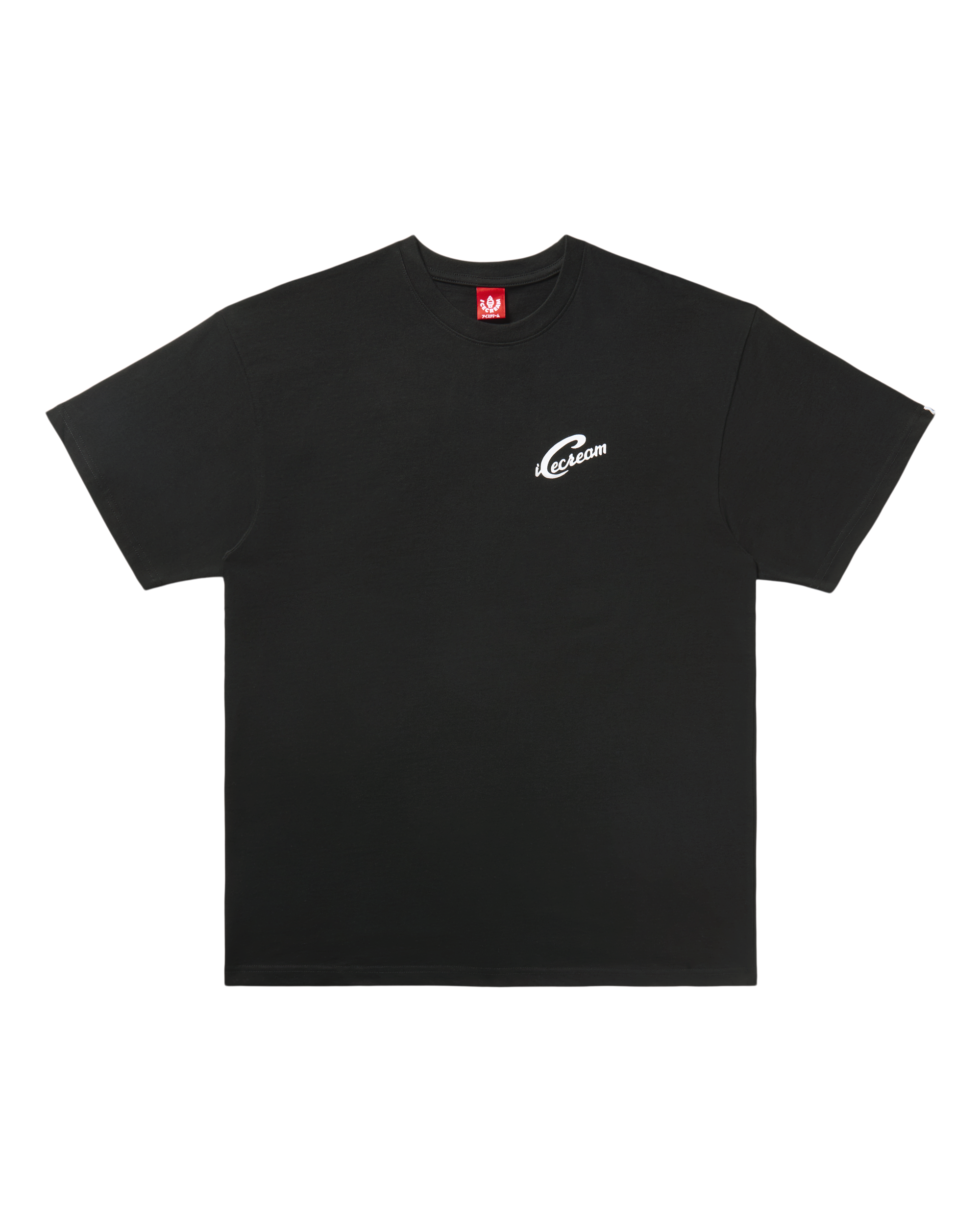 This tee showcases ICECREAM script on the front left chest and a graphic on the back.