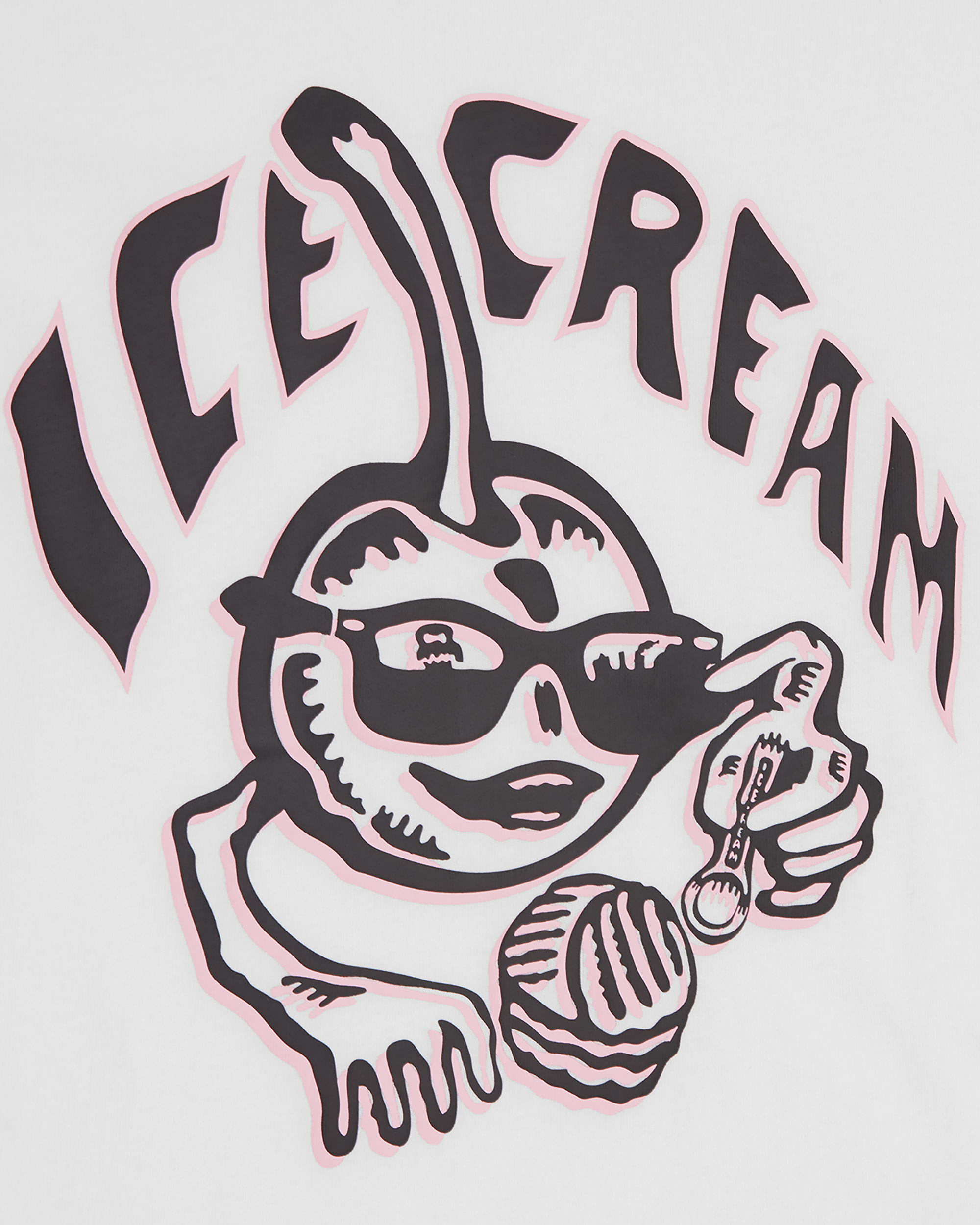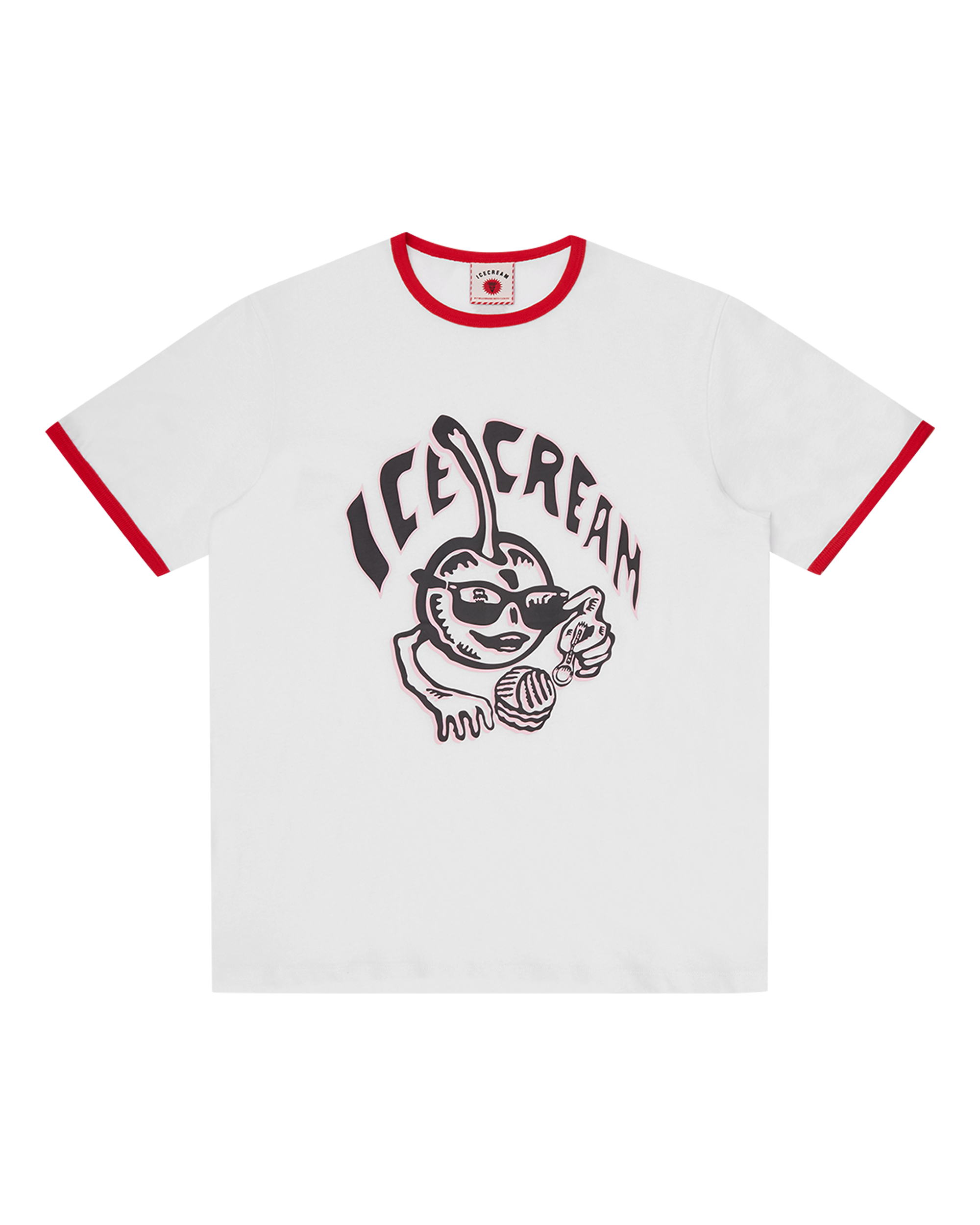 100% Cotton T-shirt featuring the ICECREAM cherry graphic on the front. finished with contrasting neck and sleeve lines for a subtle sporty edge.