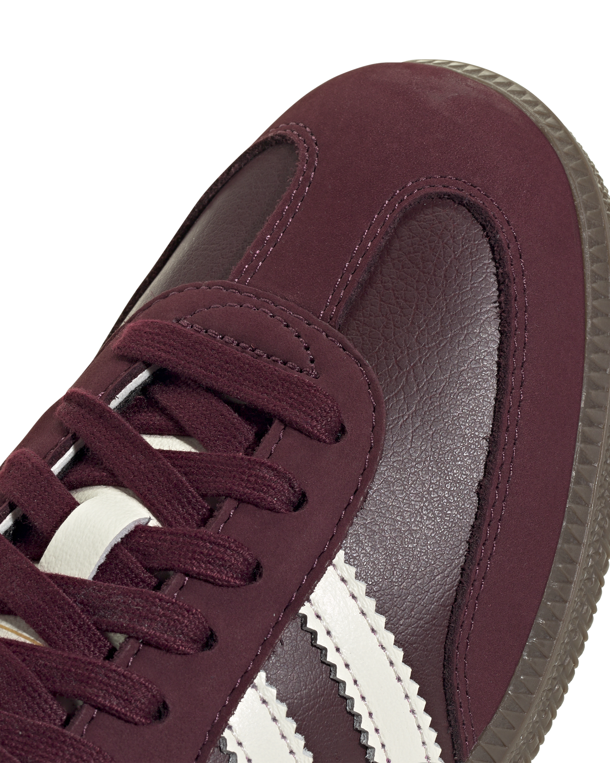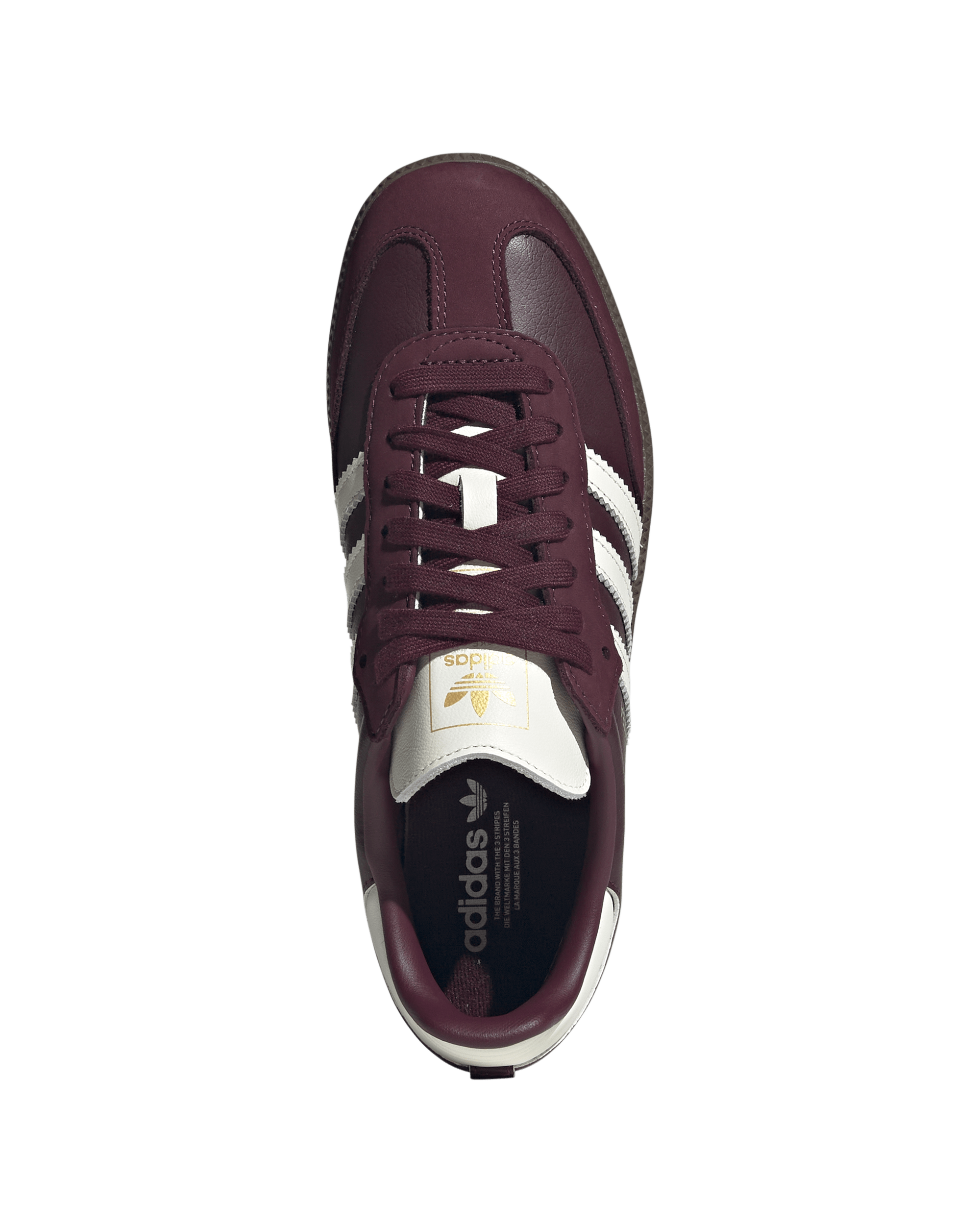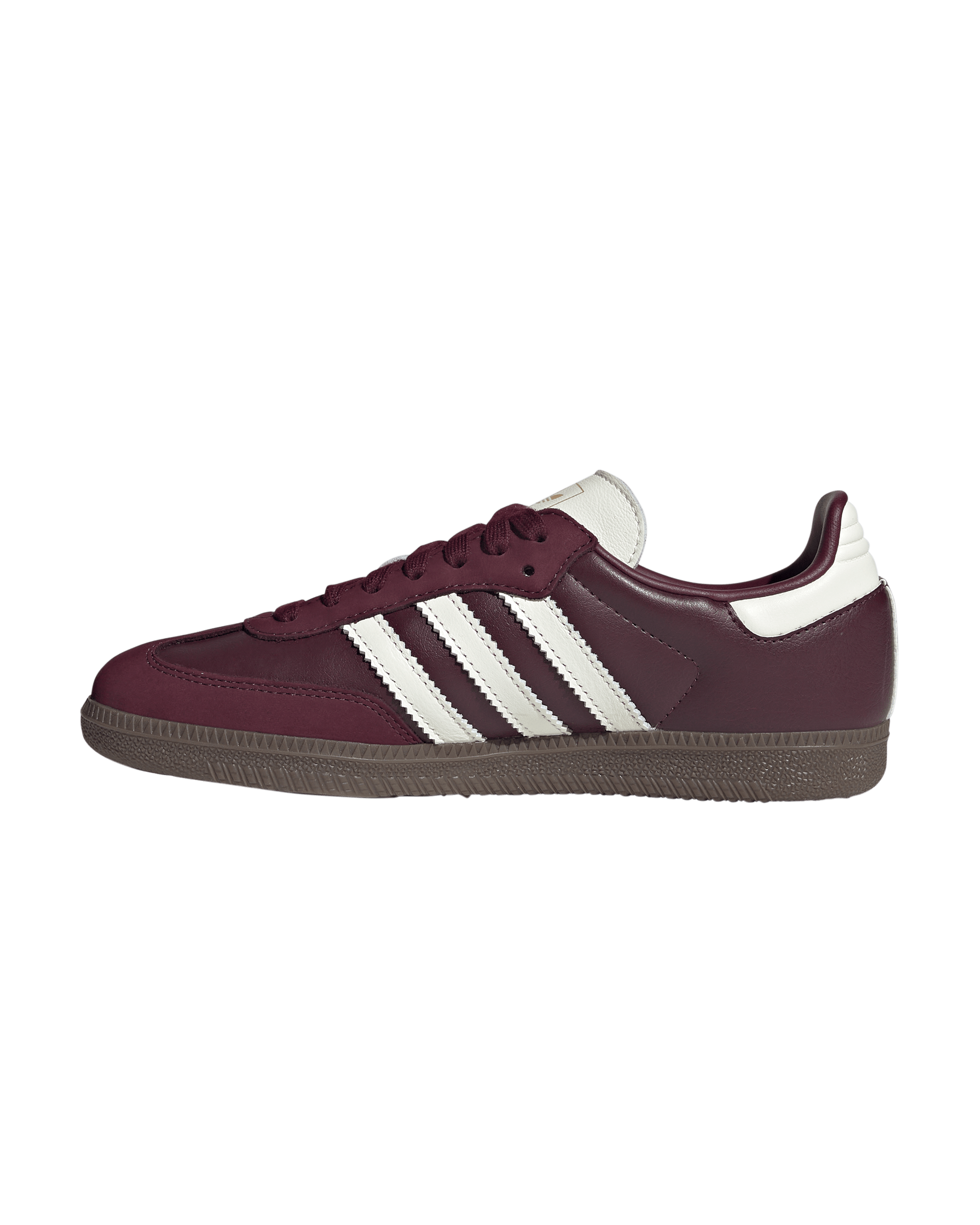 Classic adidas Samba OG shoes for women featuring a smooth leather upper with suede accents. The timeless design blends earthy and collegiate tones for effortless style. Rubber outsole delivers reliable grip. while the synthetic lining ensures all-day comfort.