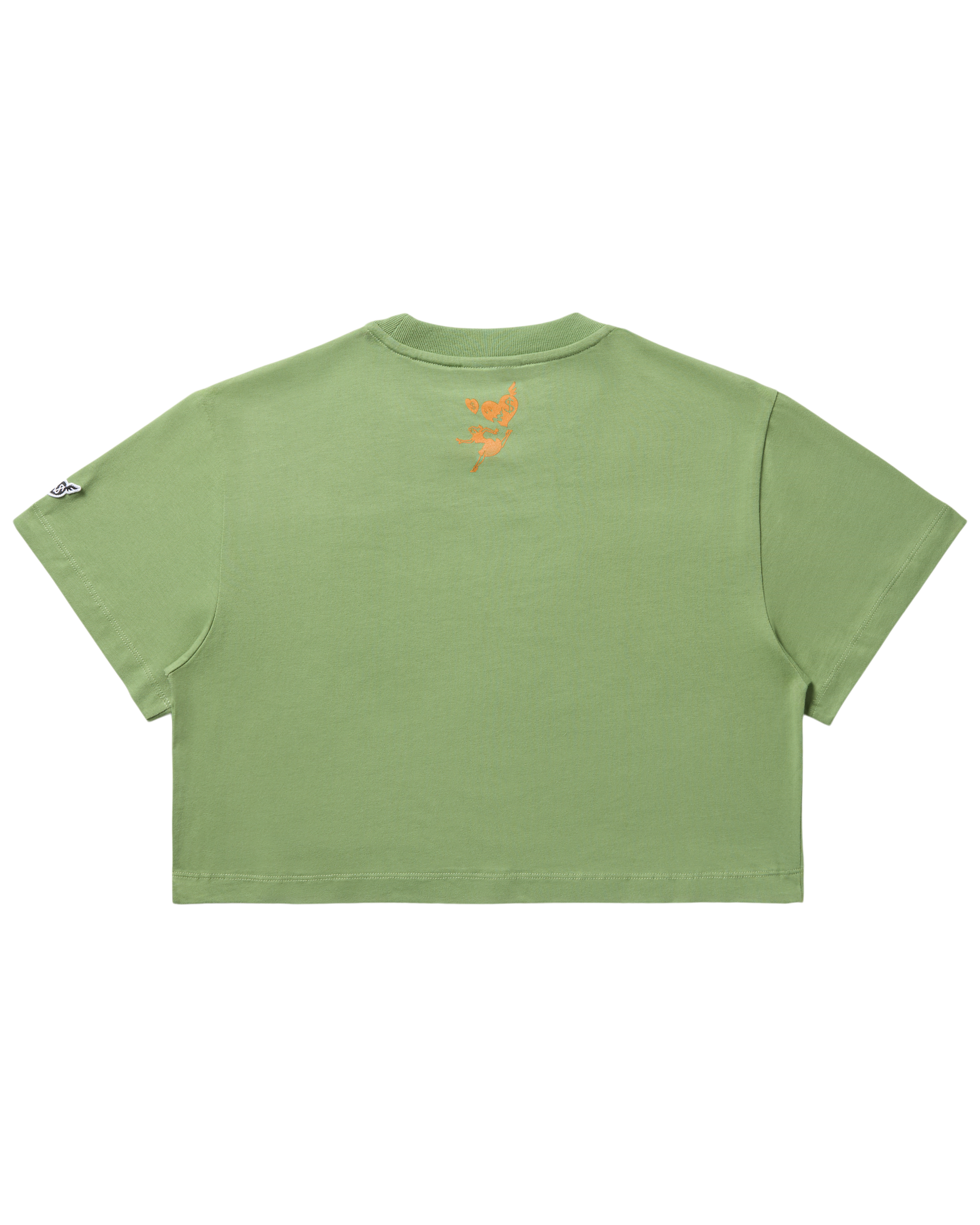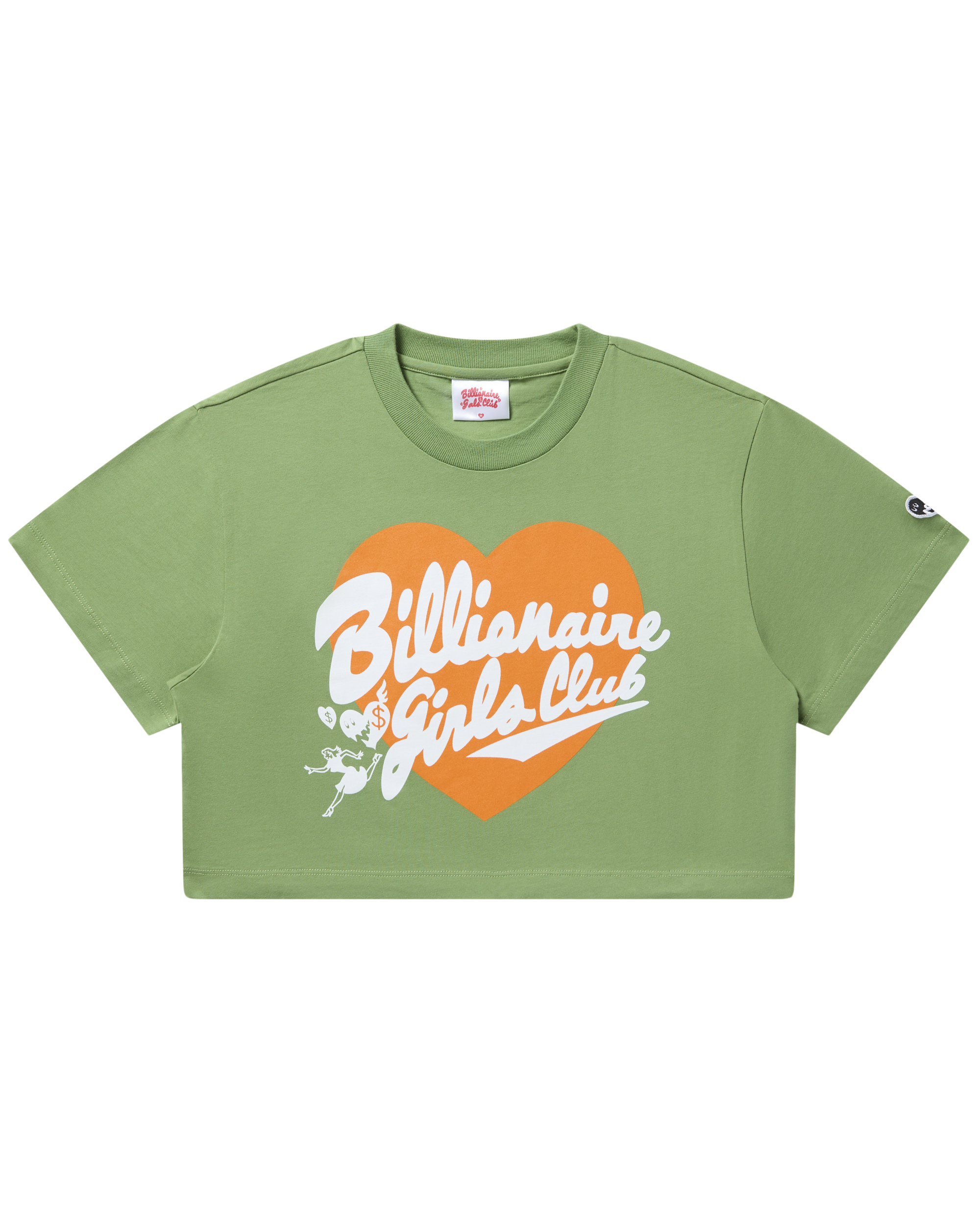 The Womens Script Heart Cropped Tee shows the Script logo with a heart on the front and the BGC logo at the back of the neck.