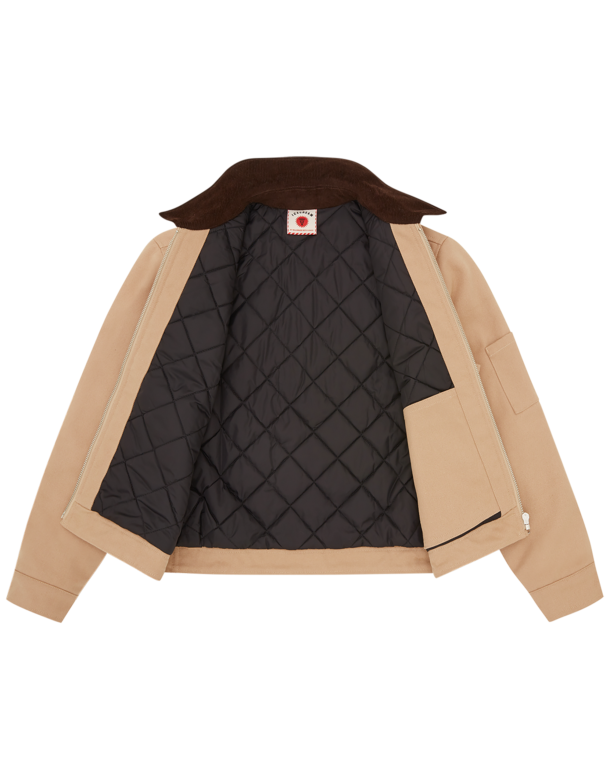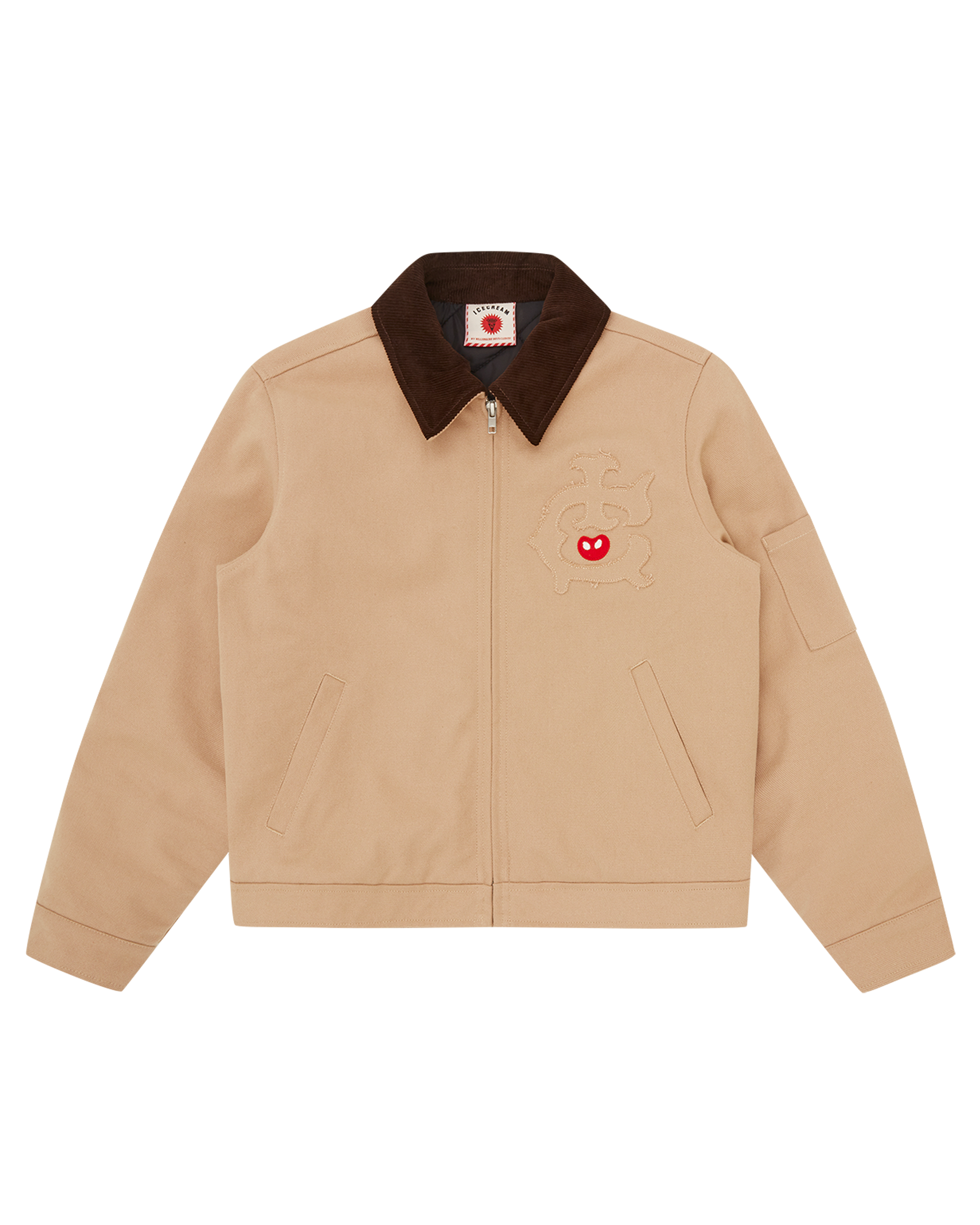 Team IC Cropped Work Jacket featuring an embroidered IC appliqué patch at the front and bold ICECREAM appliqué letters across the back for a statement-making finish. It comes with a cropped fit.